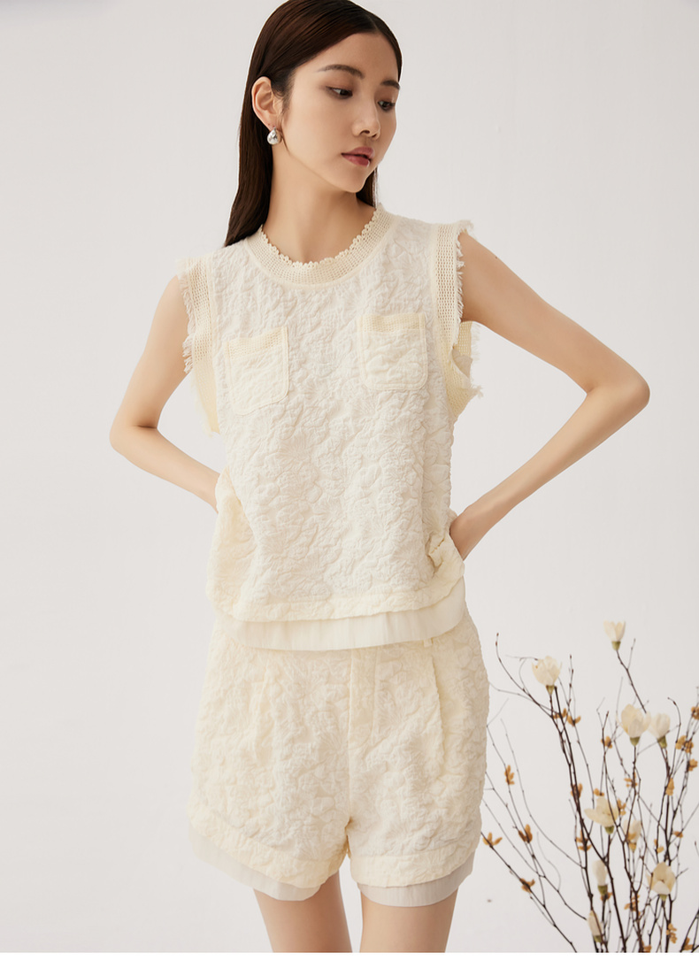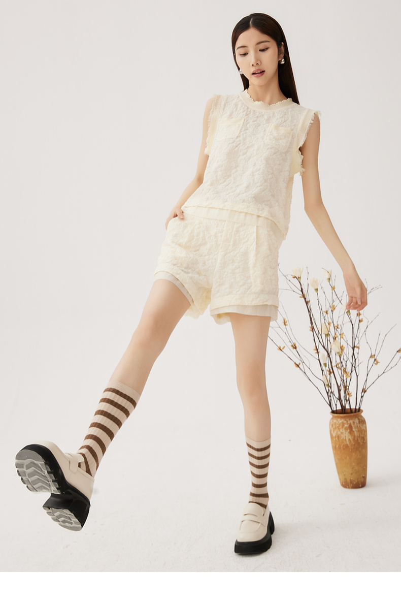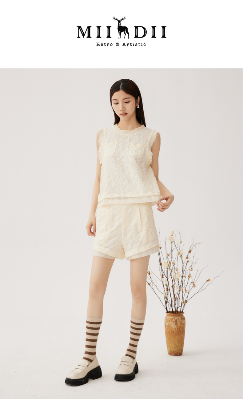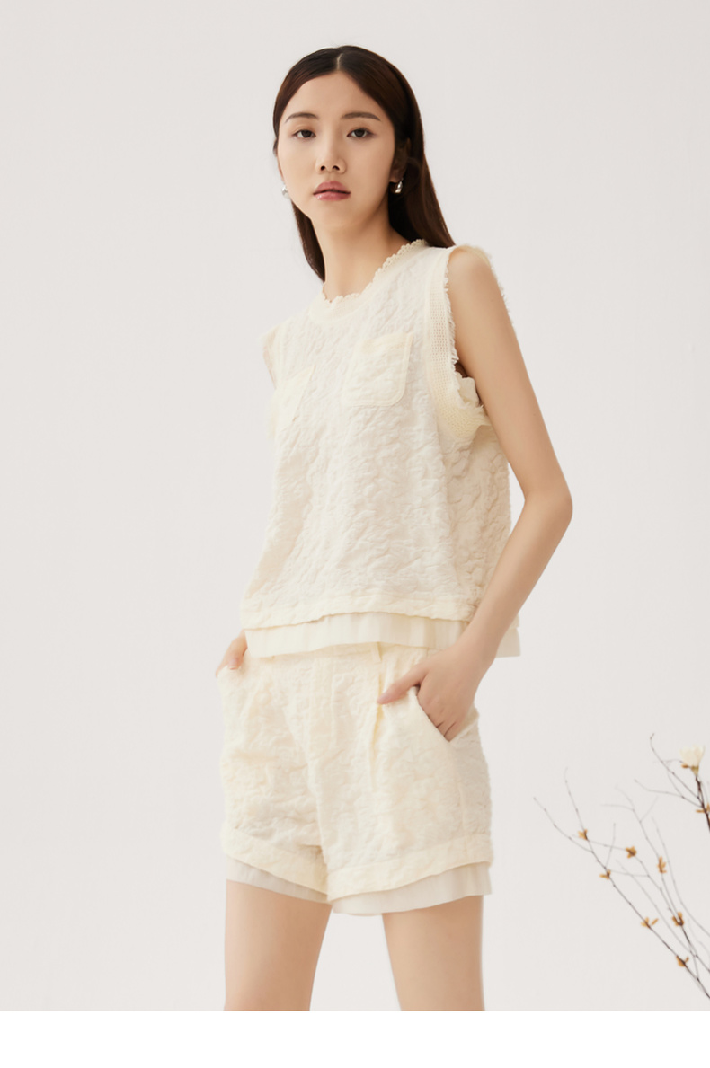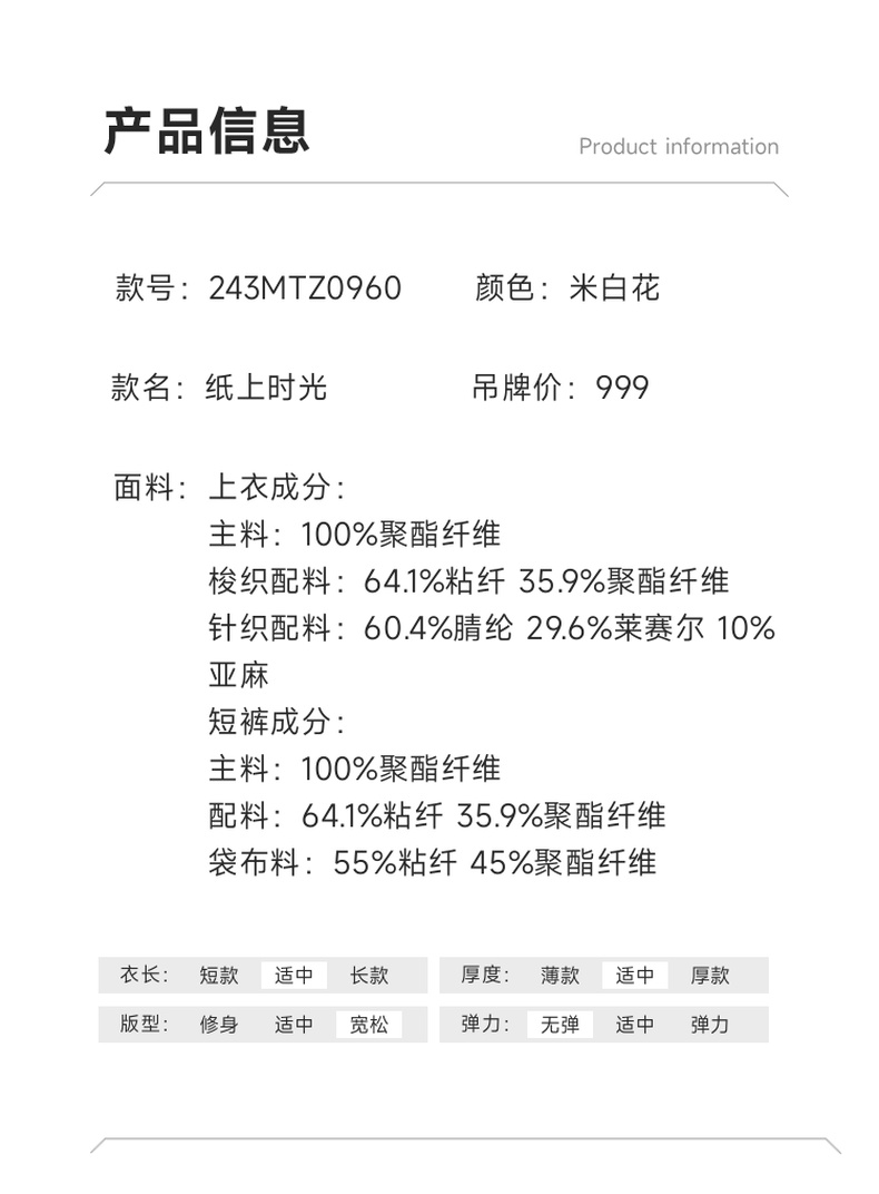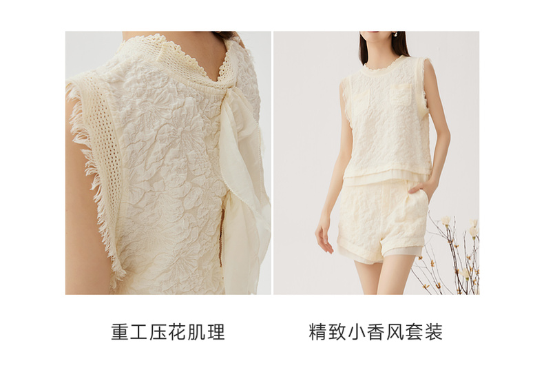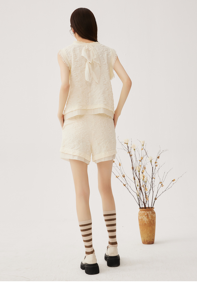 谜底套装女士2024秋季新品小香风后背蝴蝶结上衣+短裤243MTZ0960