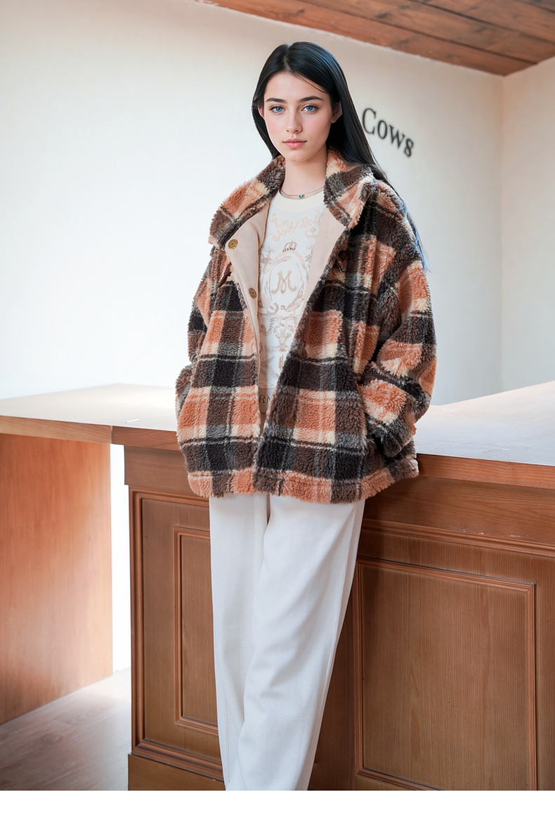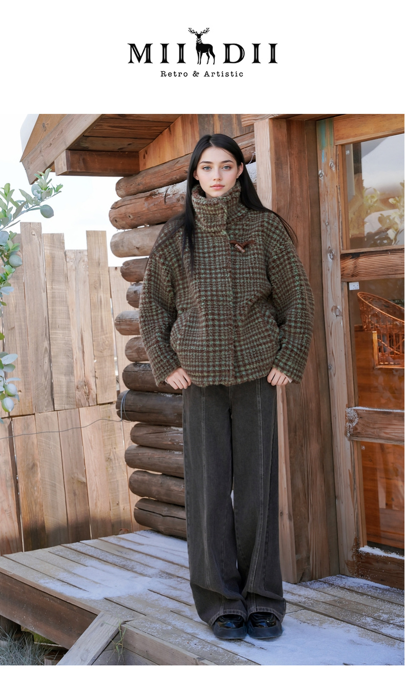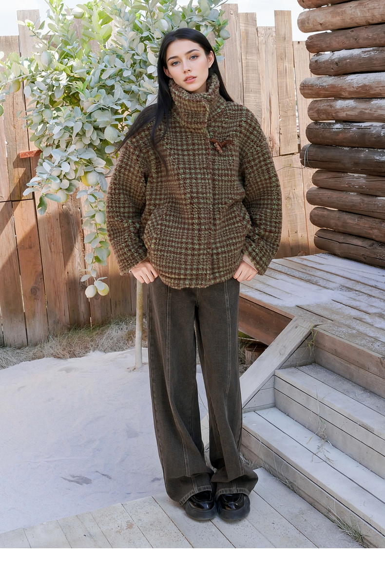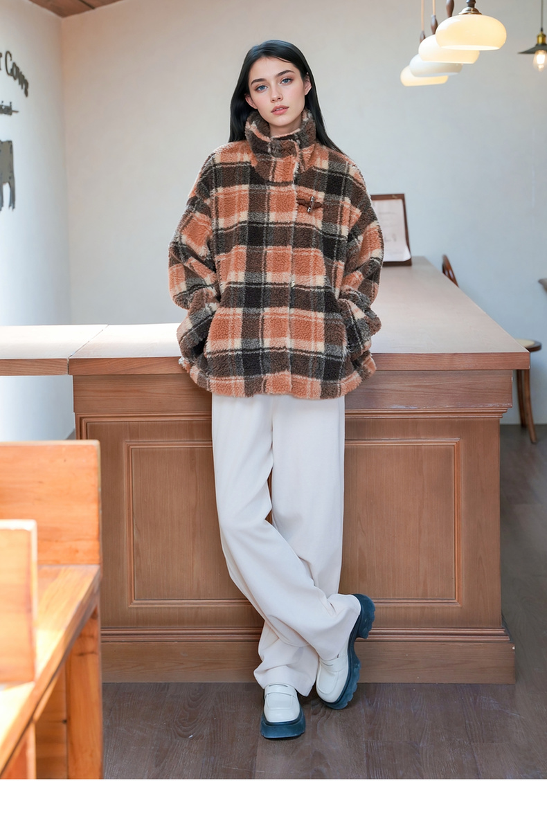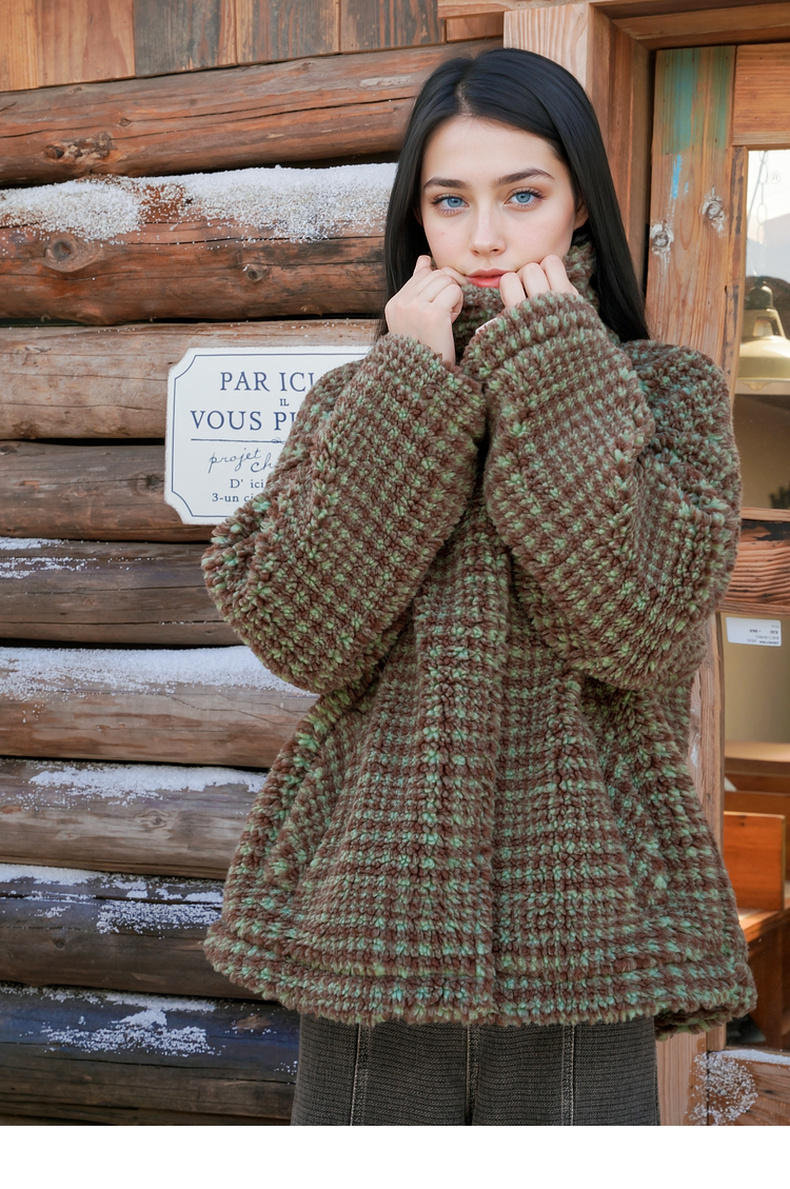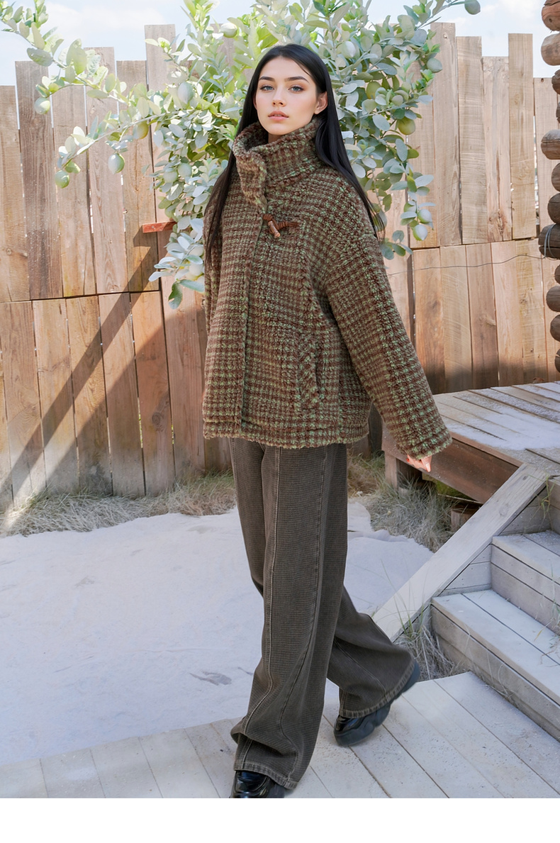谜底毛毛大衣女士2025秋季新款时髦百搭立领大廓形外套257MD7827