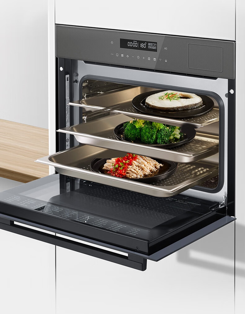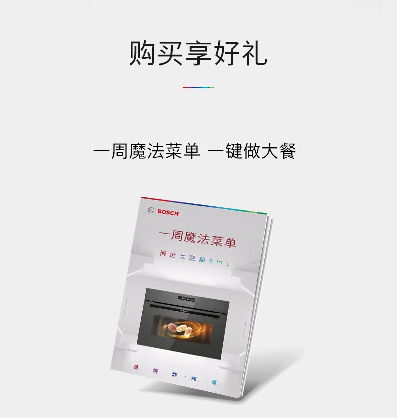 博世(BOSCH)58L嵌入式五合一体机 蒸烤炸炖煮 家用多功能蒸箱烤箱 高速空气炸 3D热风烤 低氧锁鲜蒸 晶御智能 CSR5E68G2W