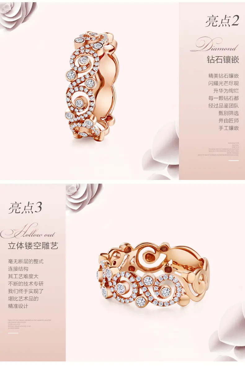 千叶珠宝 DREAM系列流年 18K金钻石戒指玫瑰金