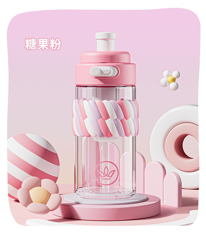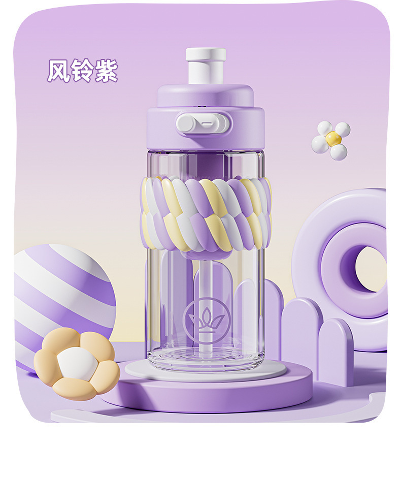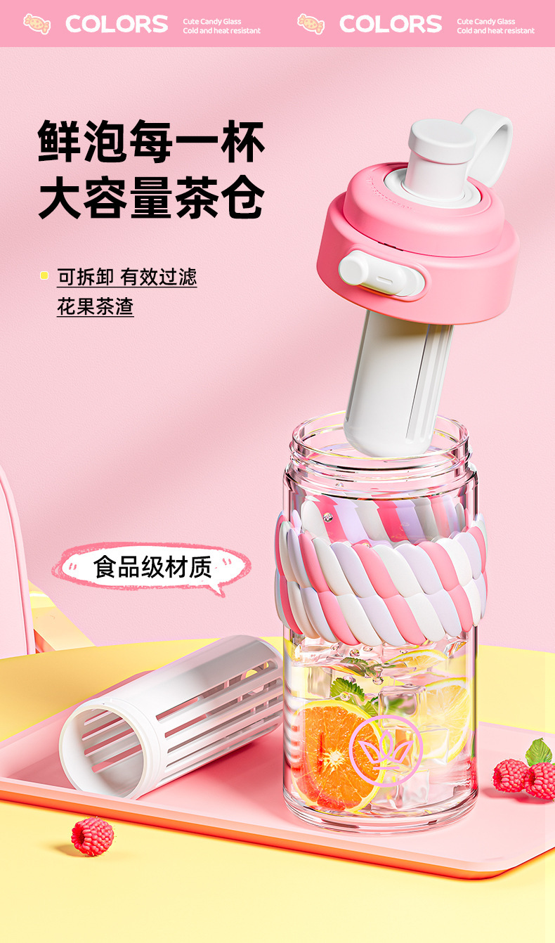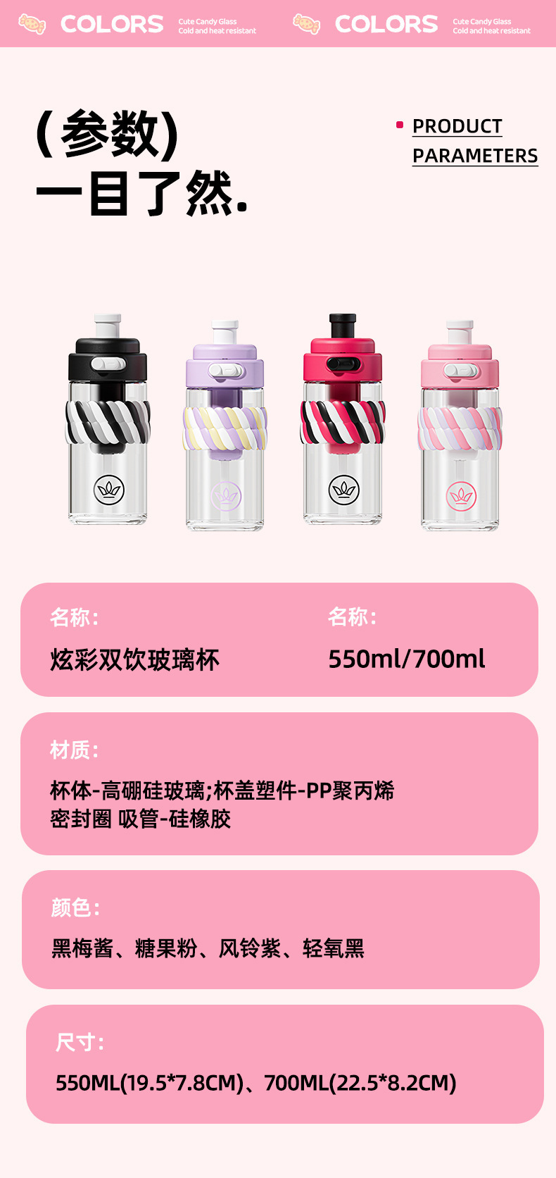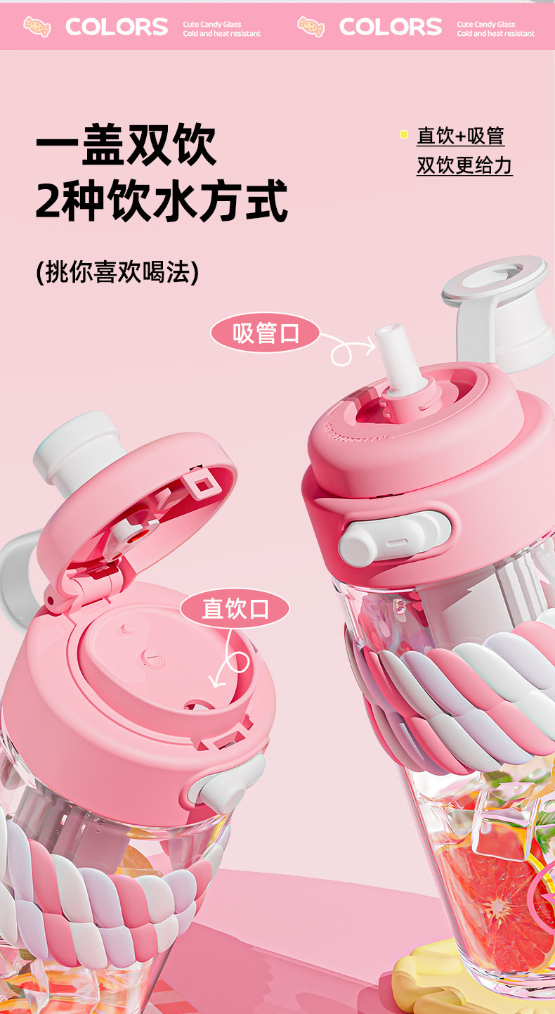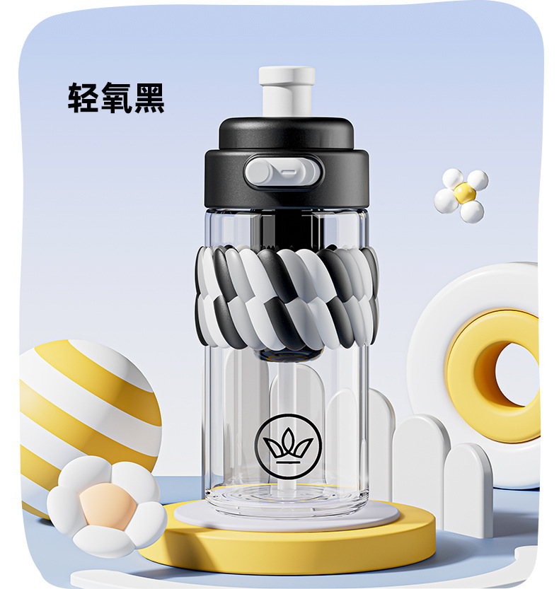 夏季大容量高硼硅玻璃杯子女生高颜值双饮茶水分离吸管杯男随手杯幼儿园开学季学生水杯