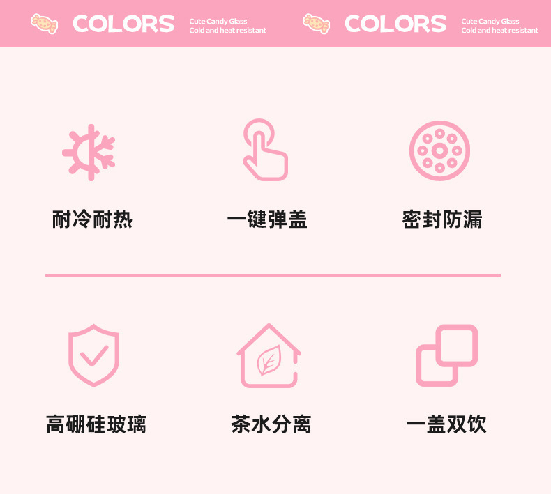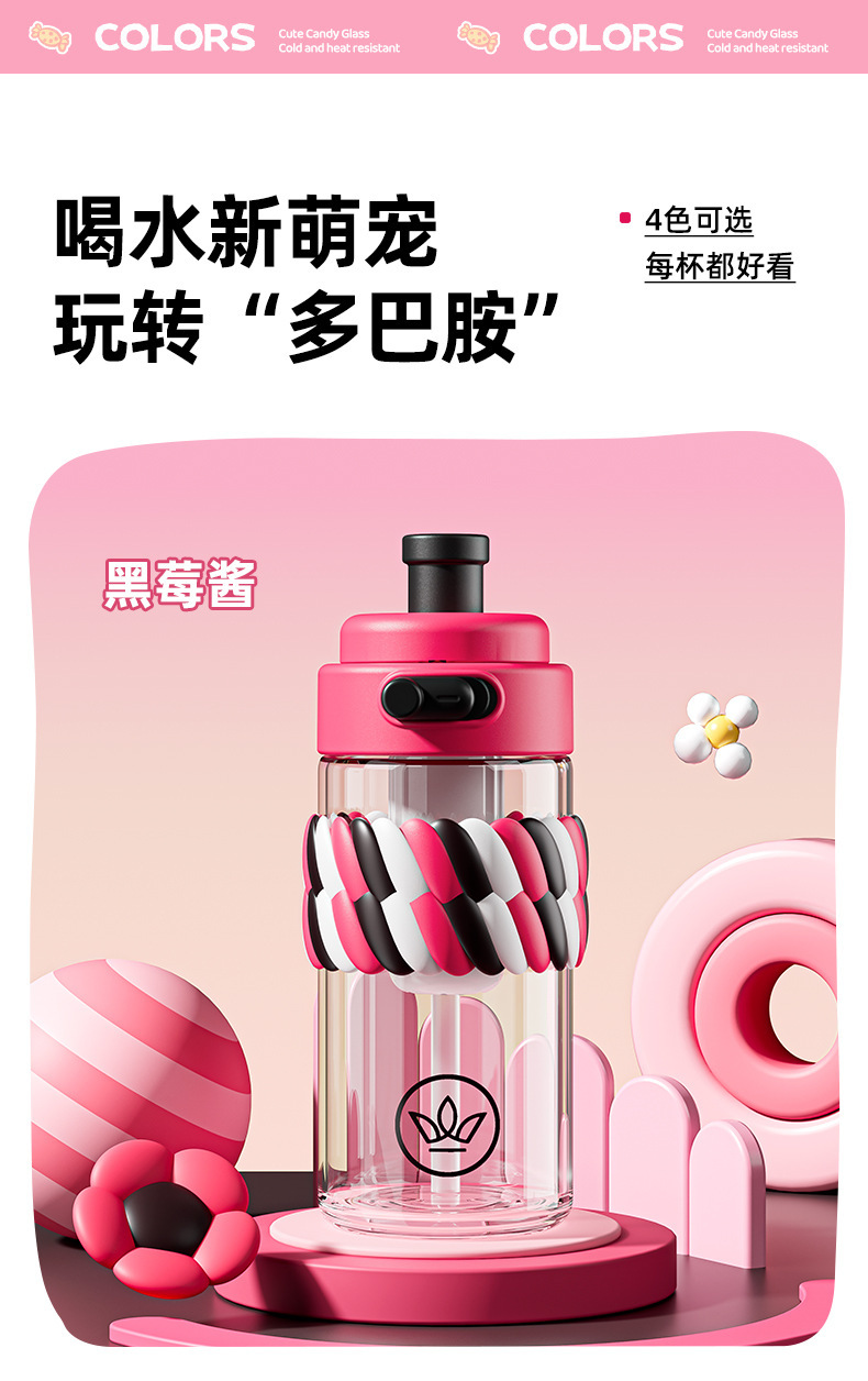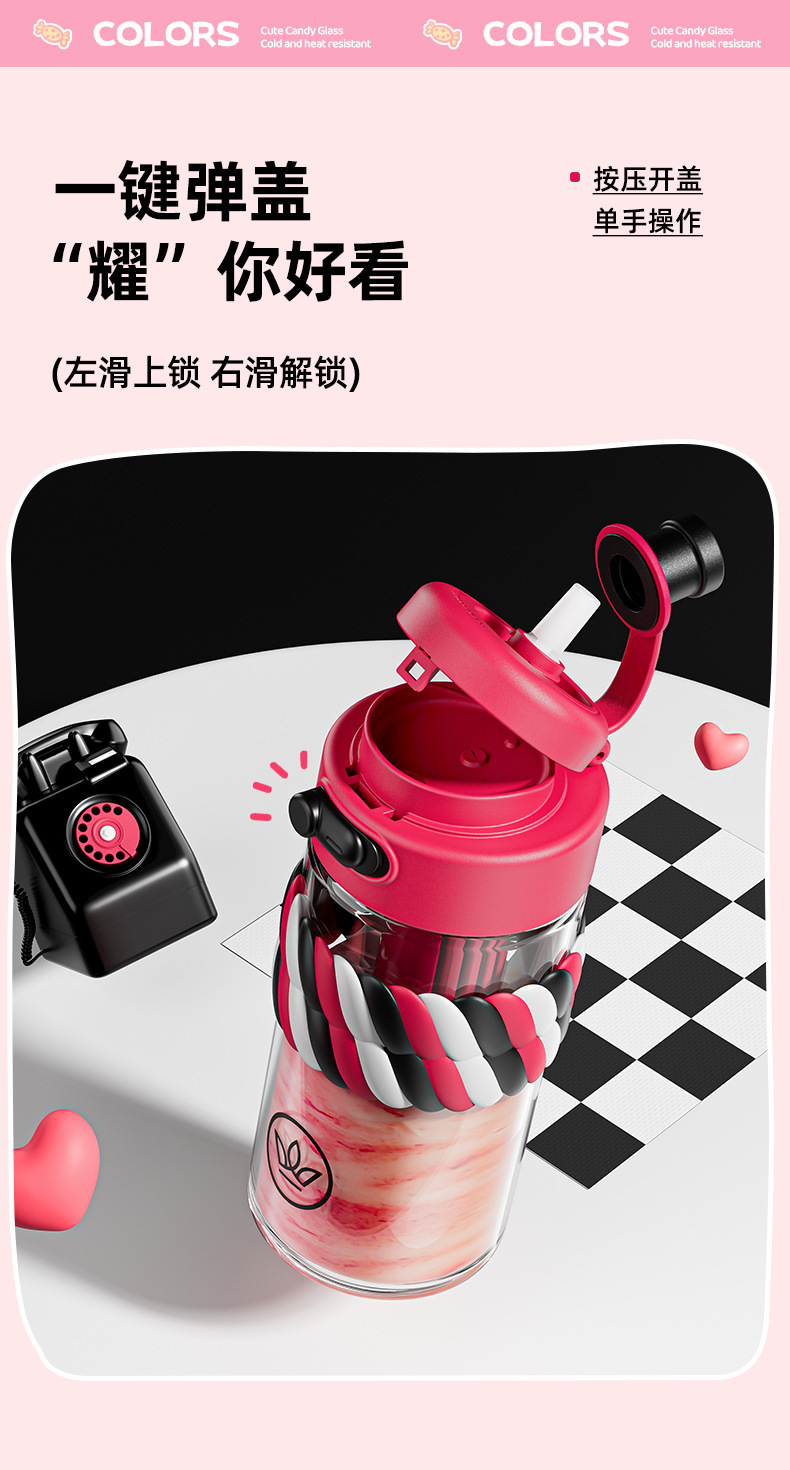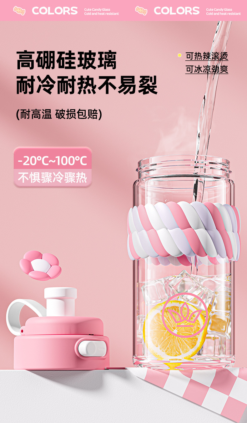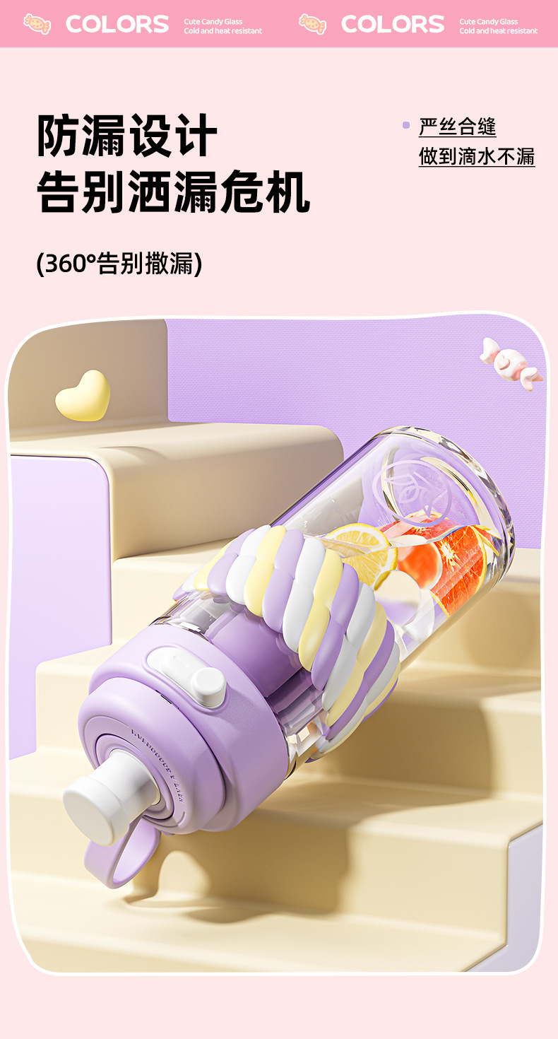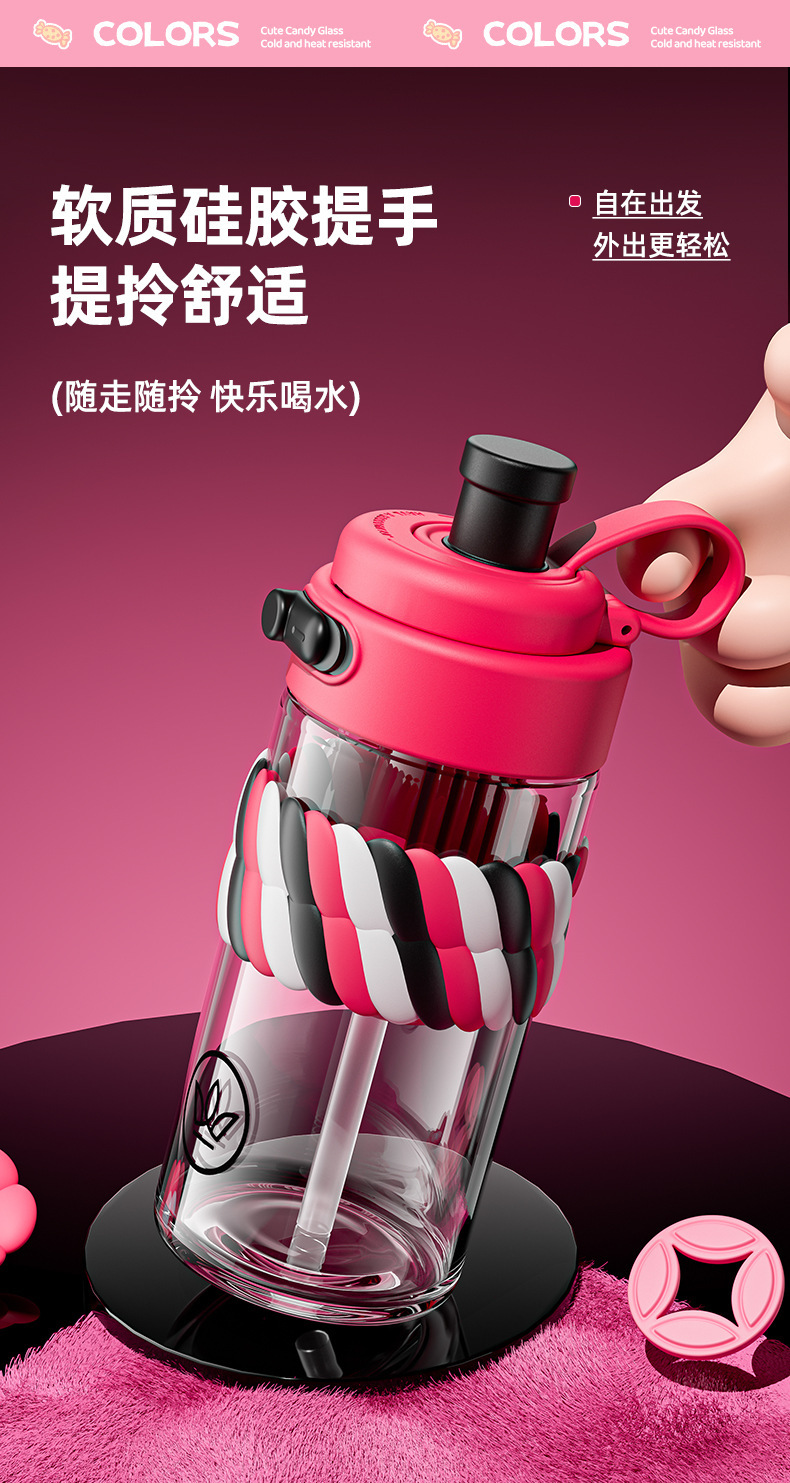 夏季大容量高硼硅玻璃杯子女生高颜值双饮茶水分离吸管杯男随手杯幼儿园开学季学生水杯