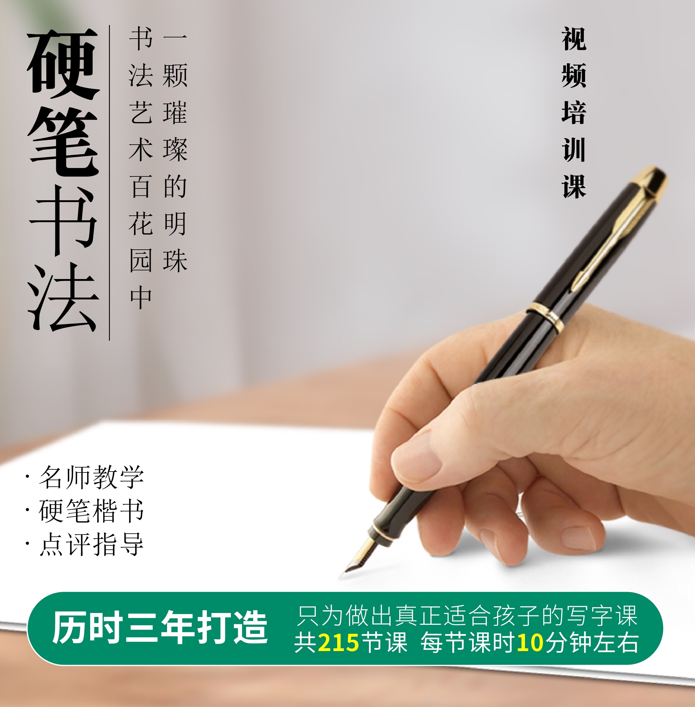 硬笔书法视频课楷书视频教程215节课时(每节课10分钟左右)+点评+解疑答惑