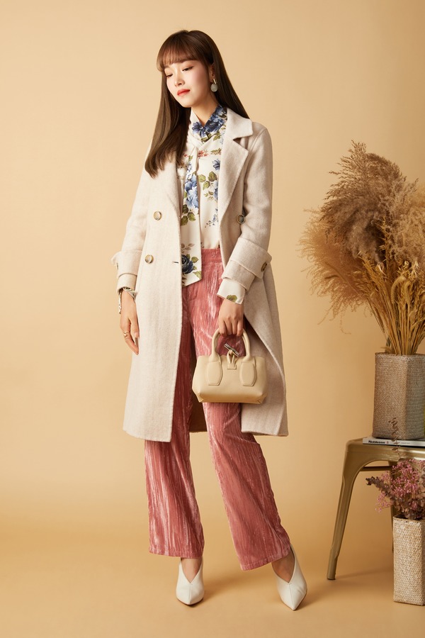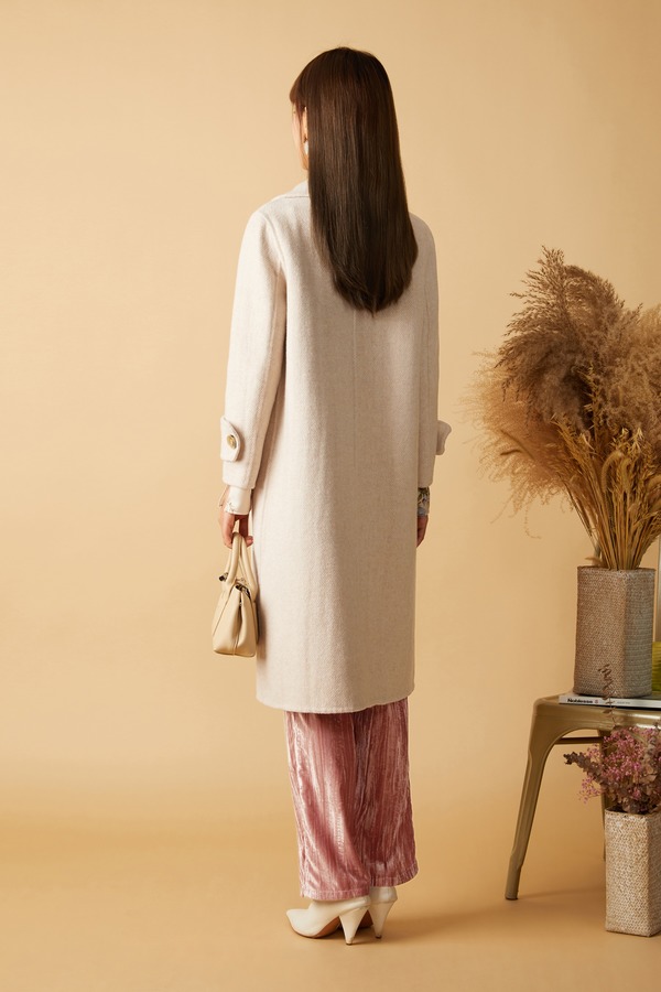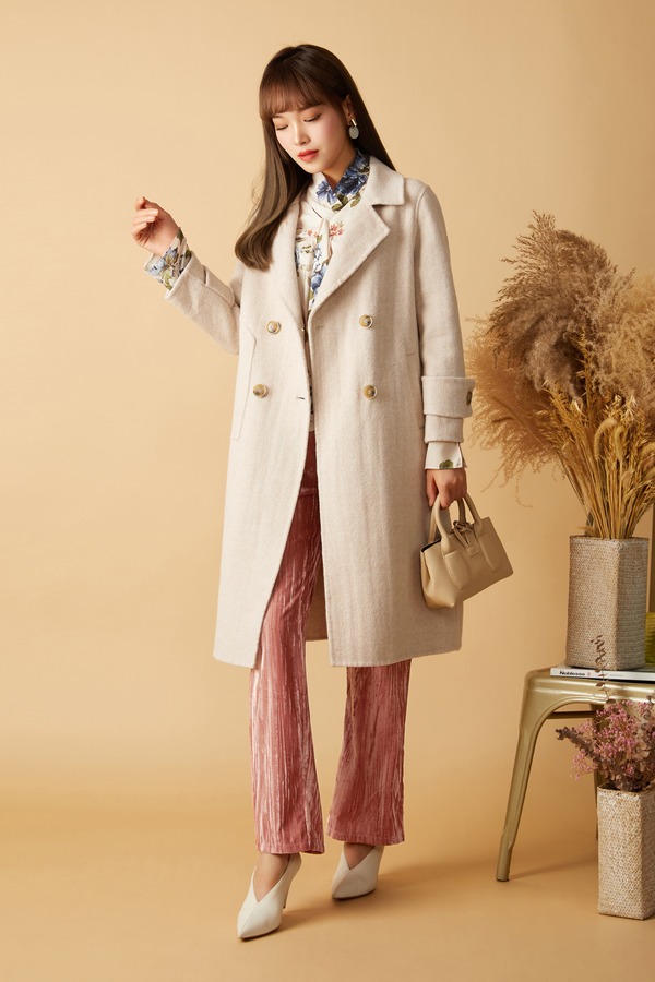 LNNNS 奶油色双排扣羊毛大衣 7990
