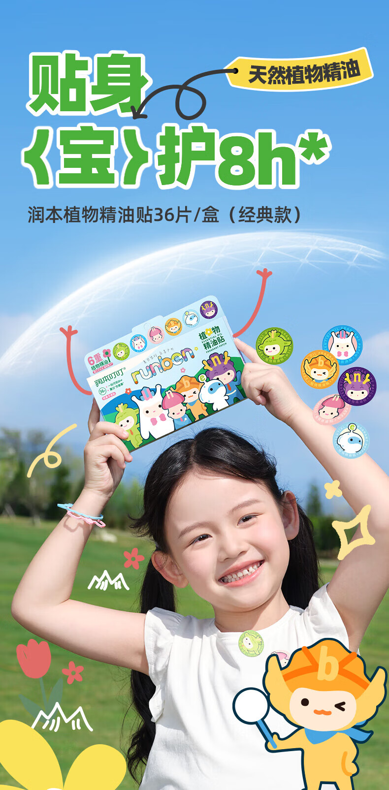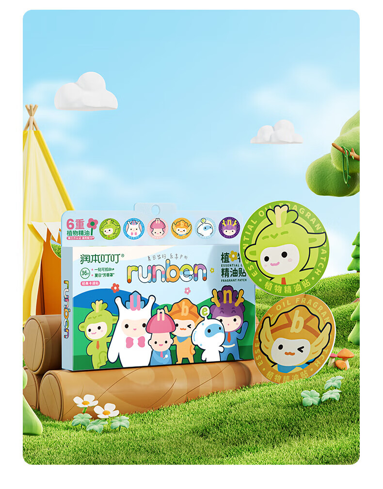 润本叮叮植物精油贴 经典卡通贴36片装(新款)/盒