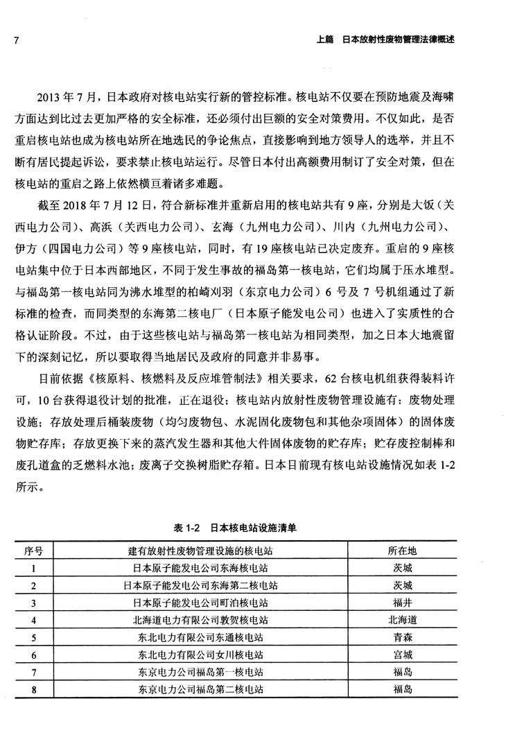 首章介绍了日本核能利用和放射性废物产生的基本情况,以及放射性废物管理机构和主要相关法律的概况。