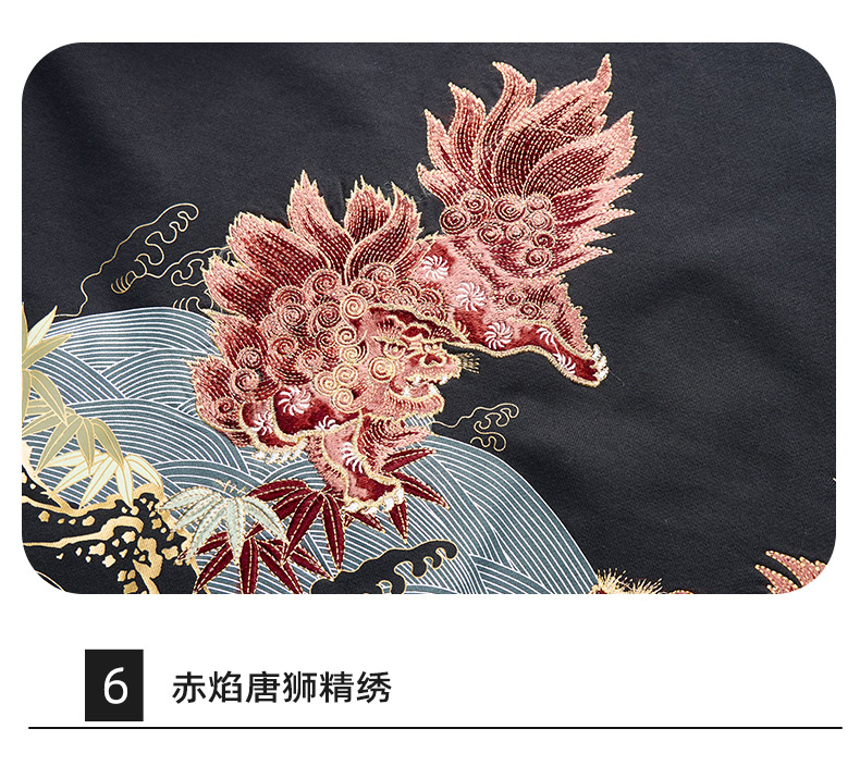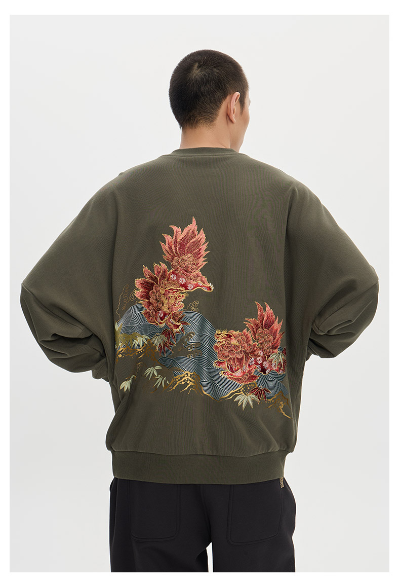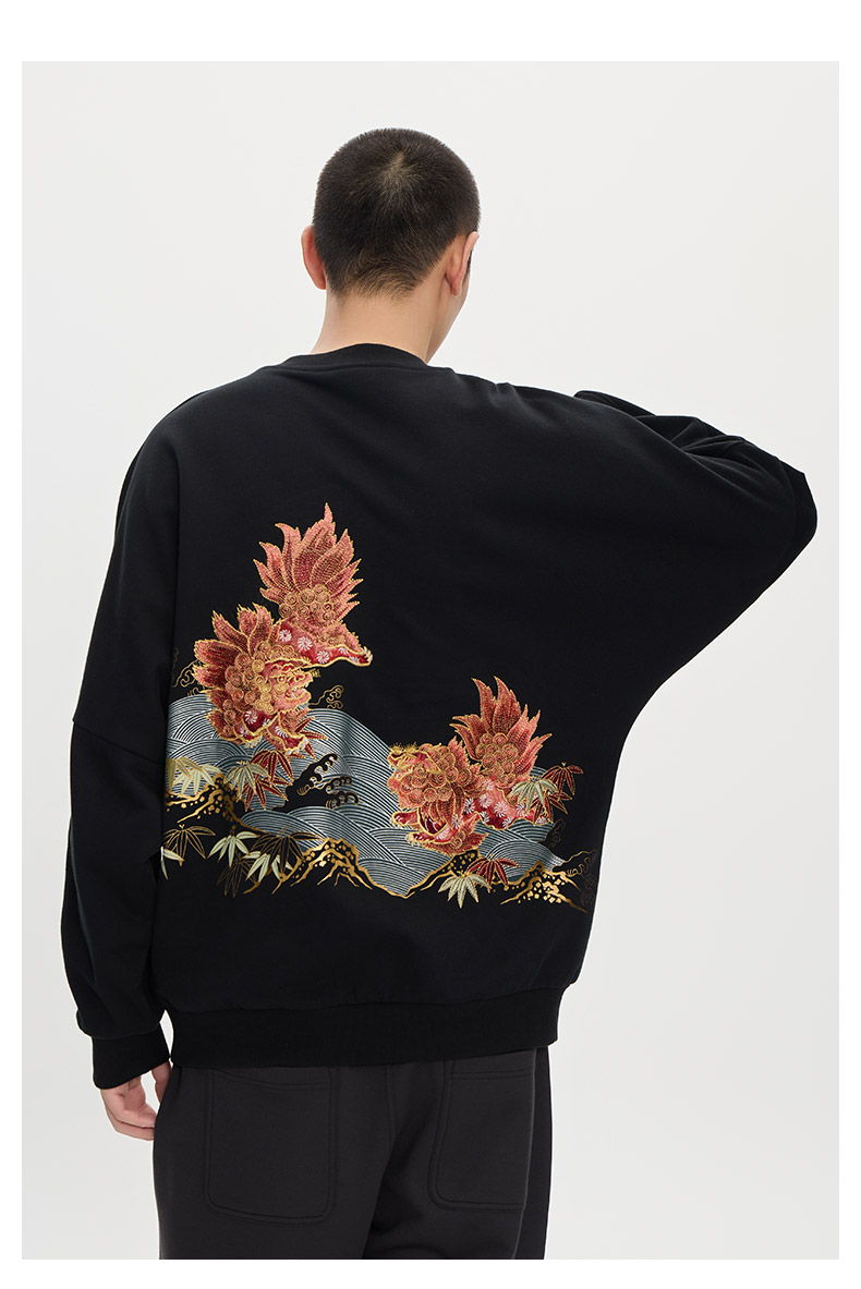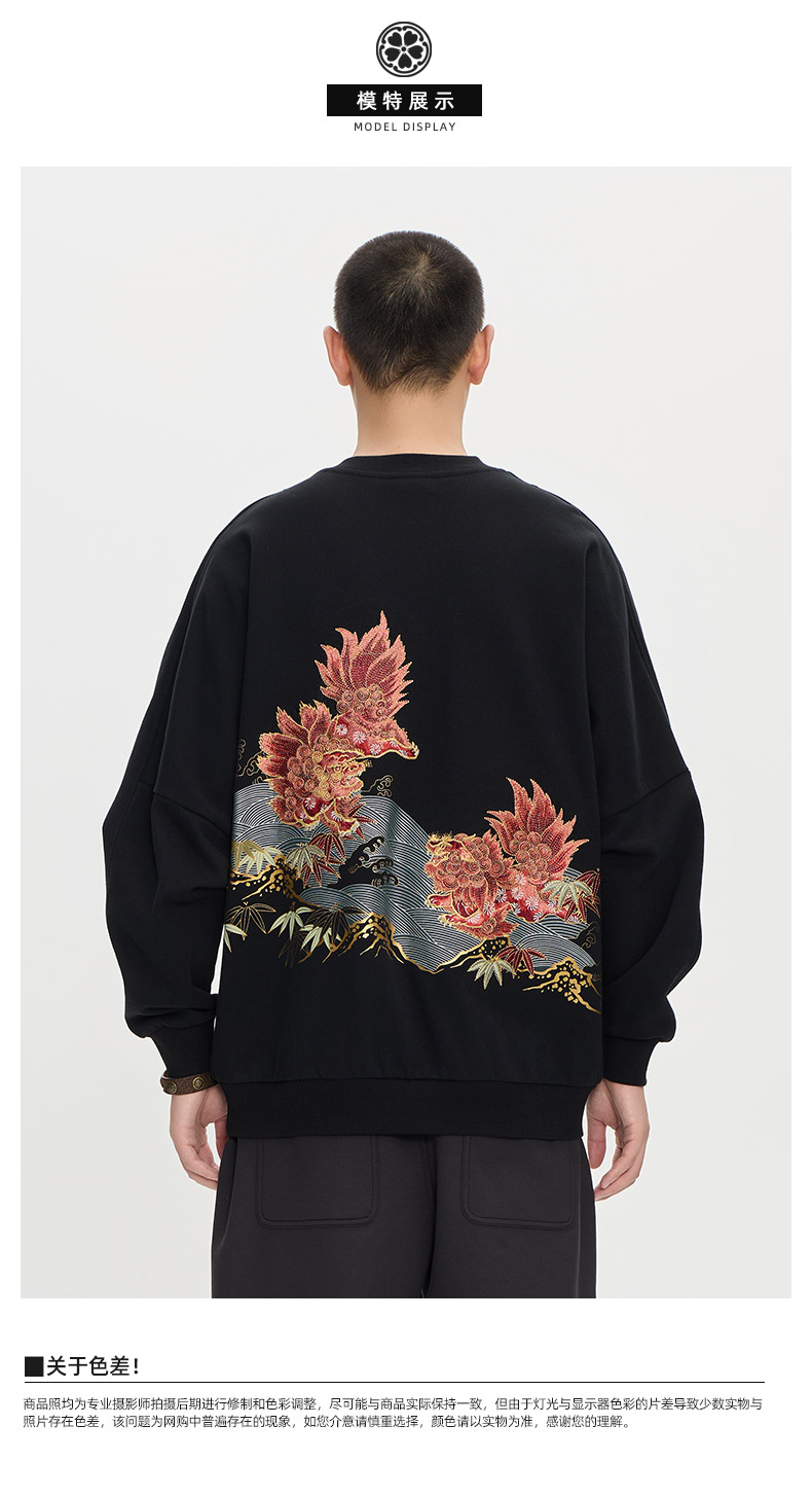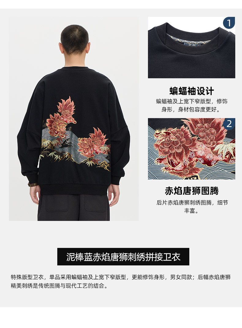 ONIARAI/鬼洗25秋冬泥棒蓝赤焰唐狮刺绣拼接卫衣男式新品 25NOB52