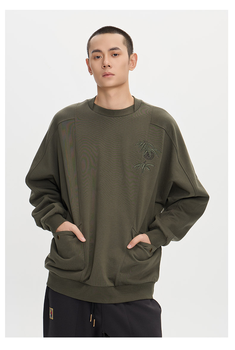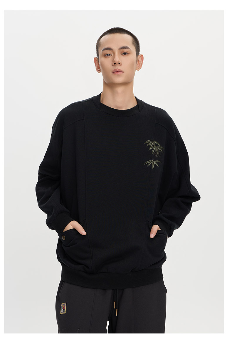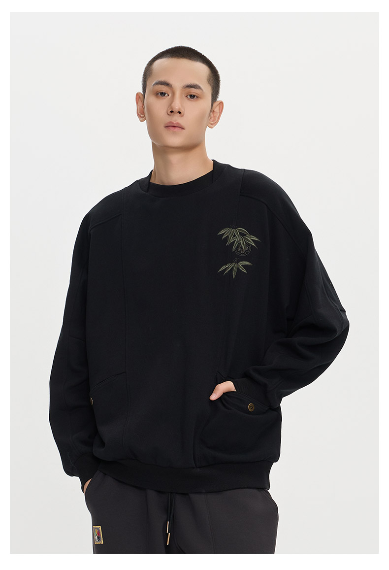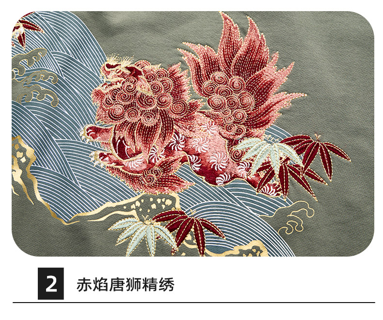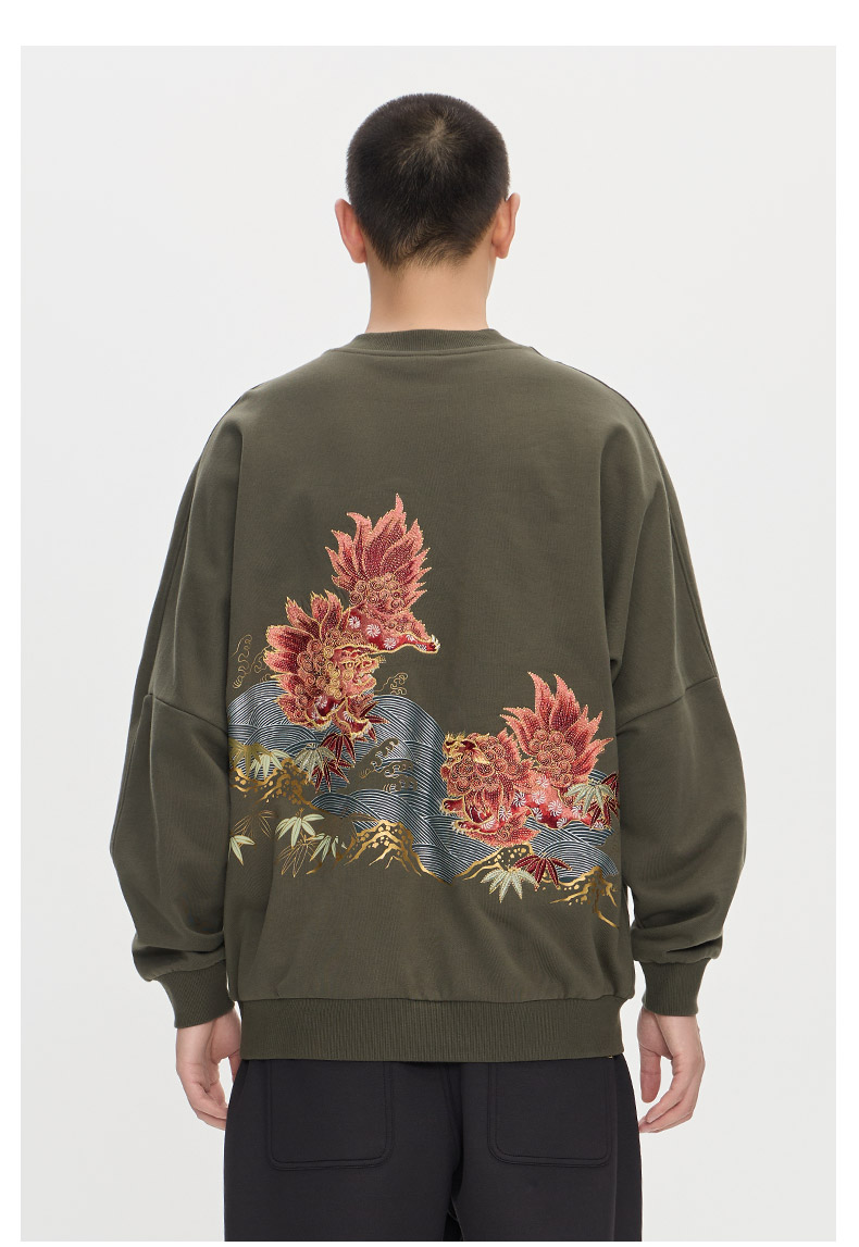 ONIARAI/鬼洗25秋冬泥棒蓝赤焰唐狮刺绣拼接卫衣男式新品 25NOB52