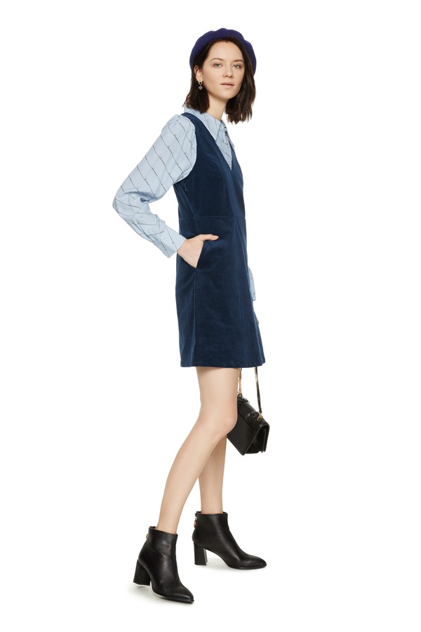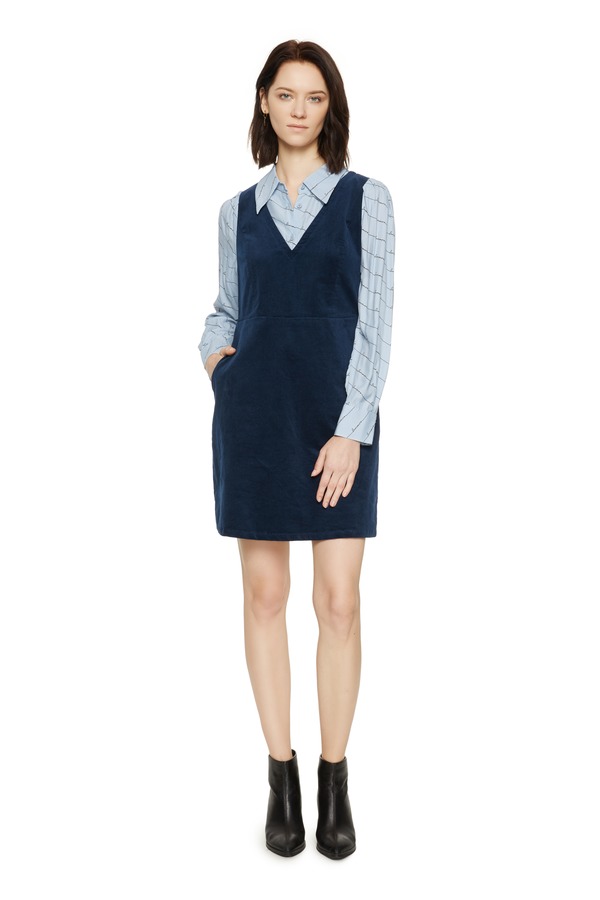 URBAN REVIVO 格纹系带连帽衬衫裙 4200