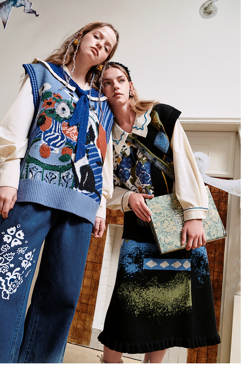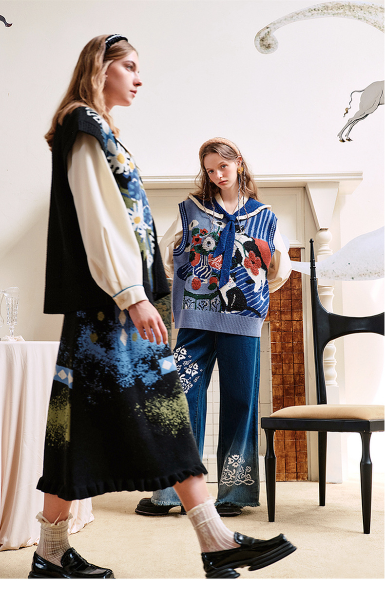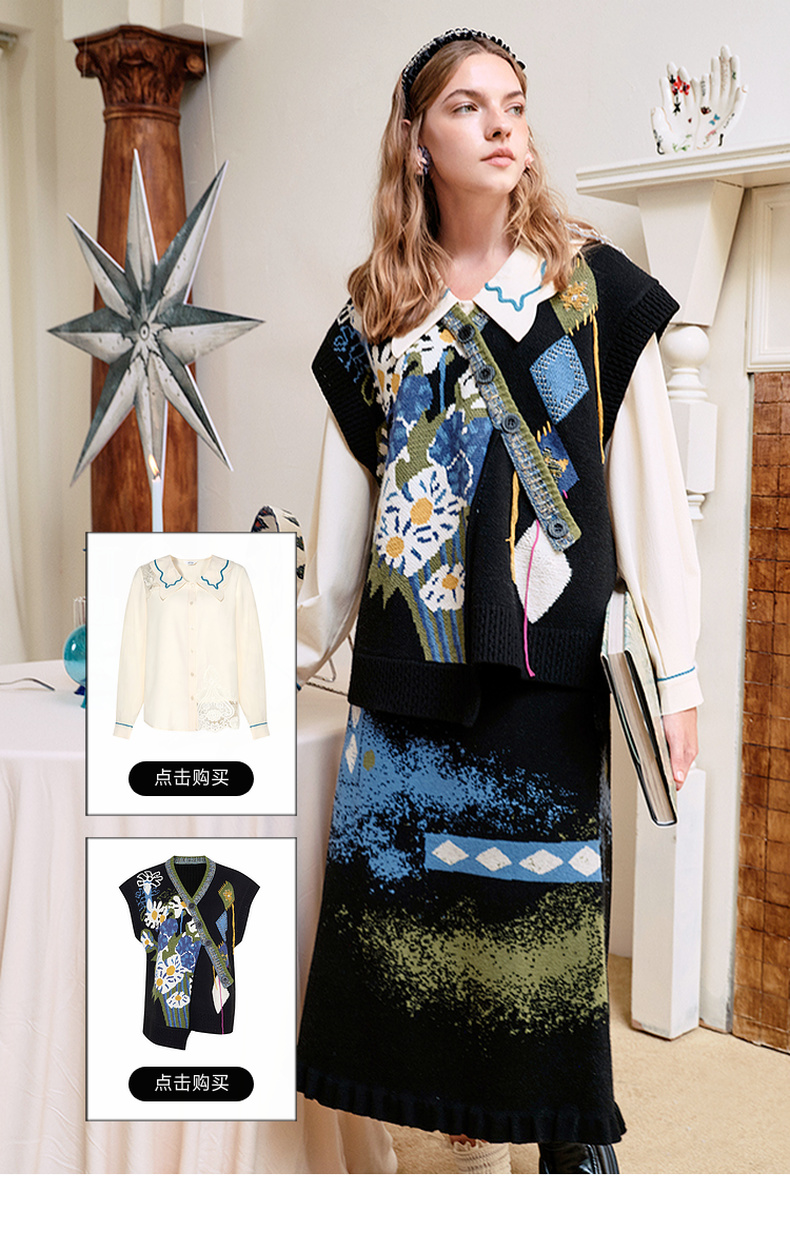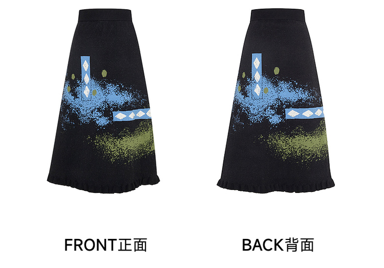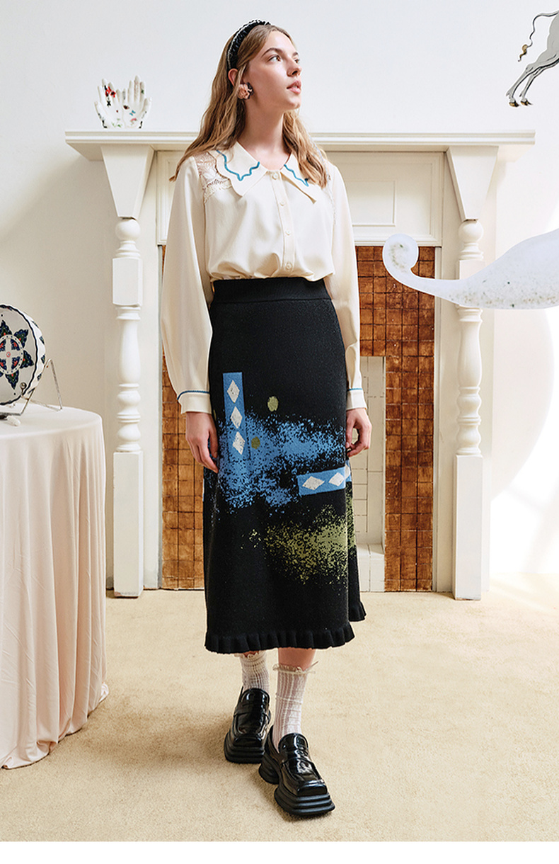 两三事失序派对2024秋季新款复古荷叶边裙摆花色亮点毛织半身裙