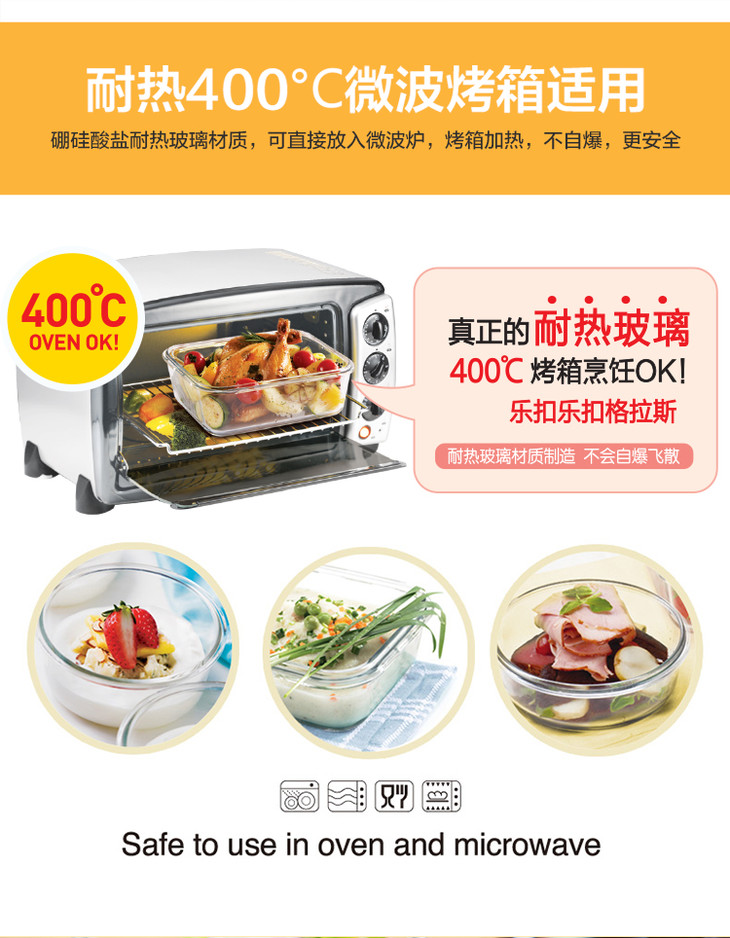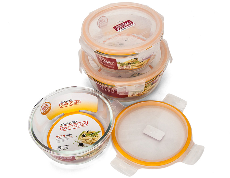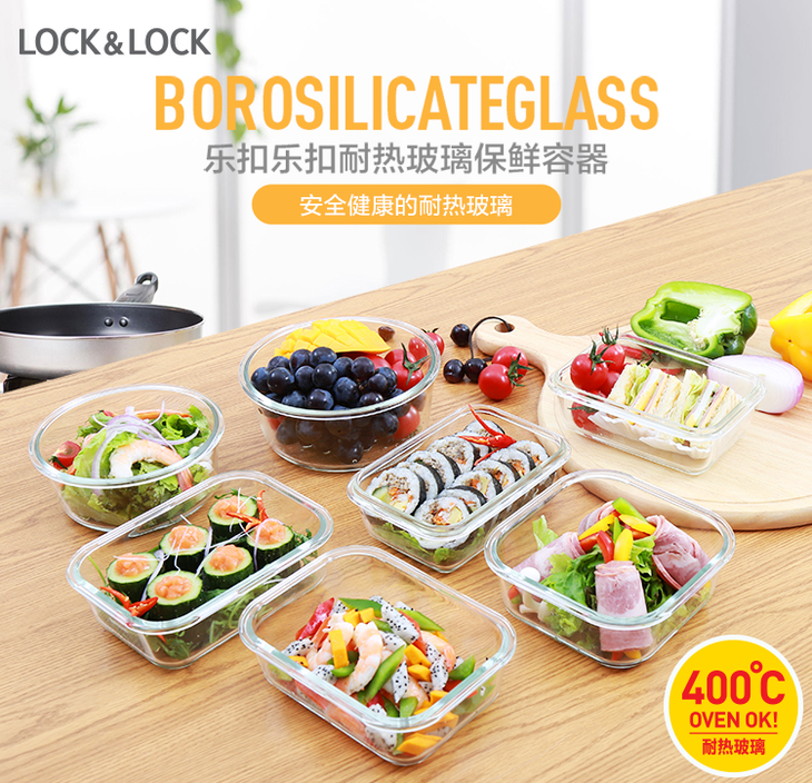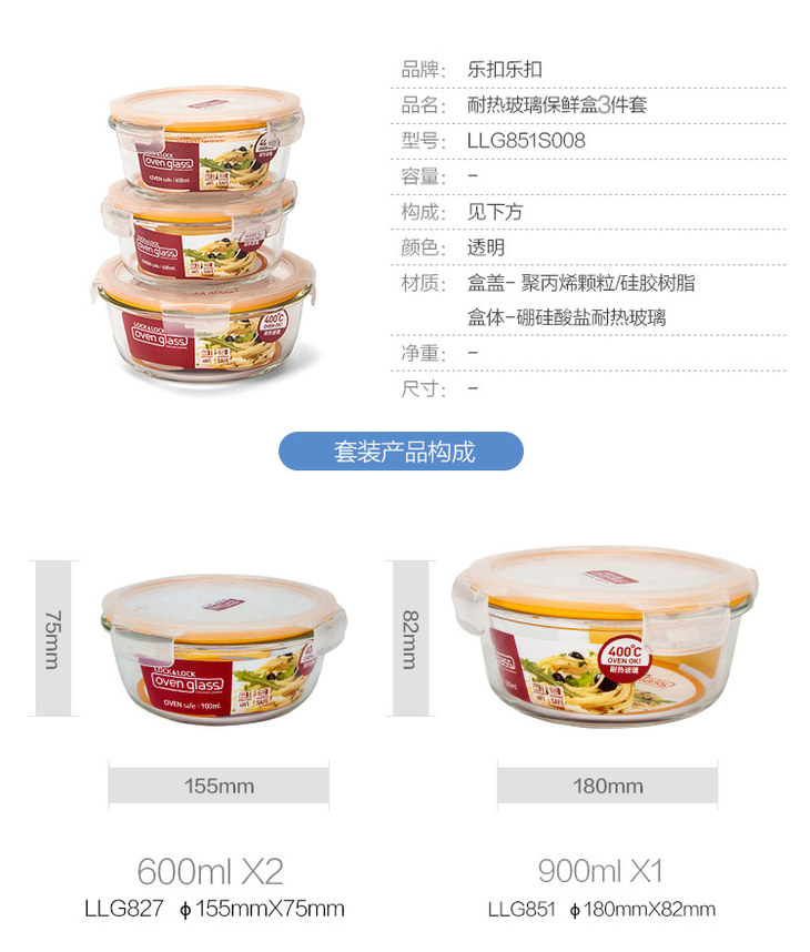 乐扣乐扣(LOCK&LOCK) 耐热玻璃保鲜盒 钣盒密封碗3件套 LLG851S008