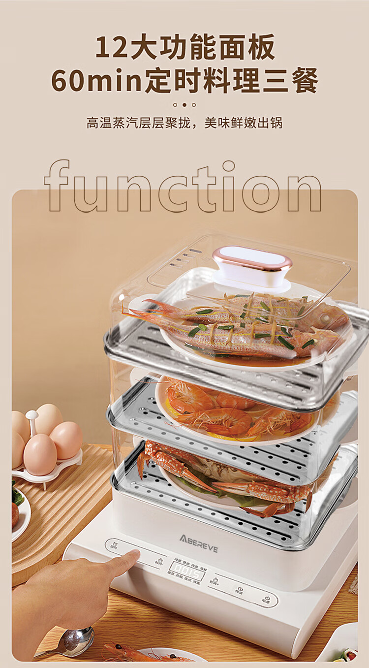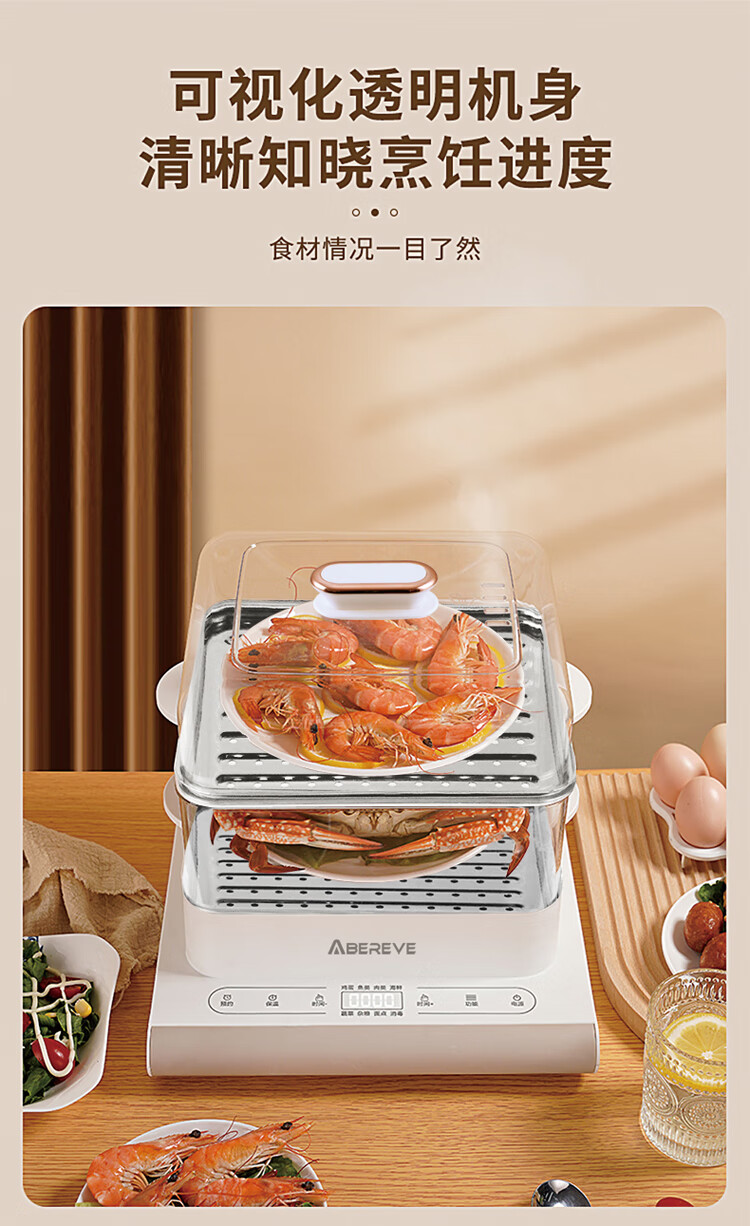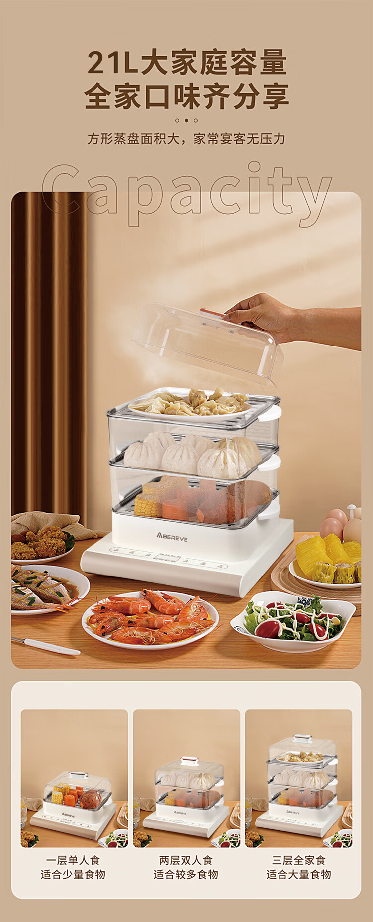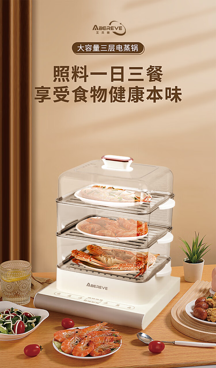 【小家电】Abereve艾贝丽21升大容量三层大空间电蒸锅ABL-ZG165 HF