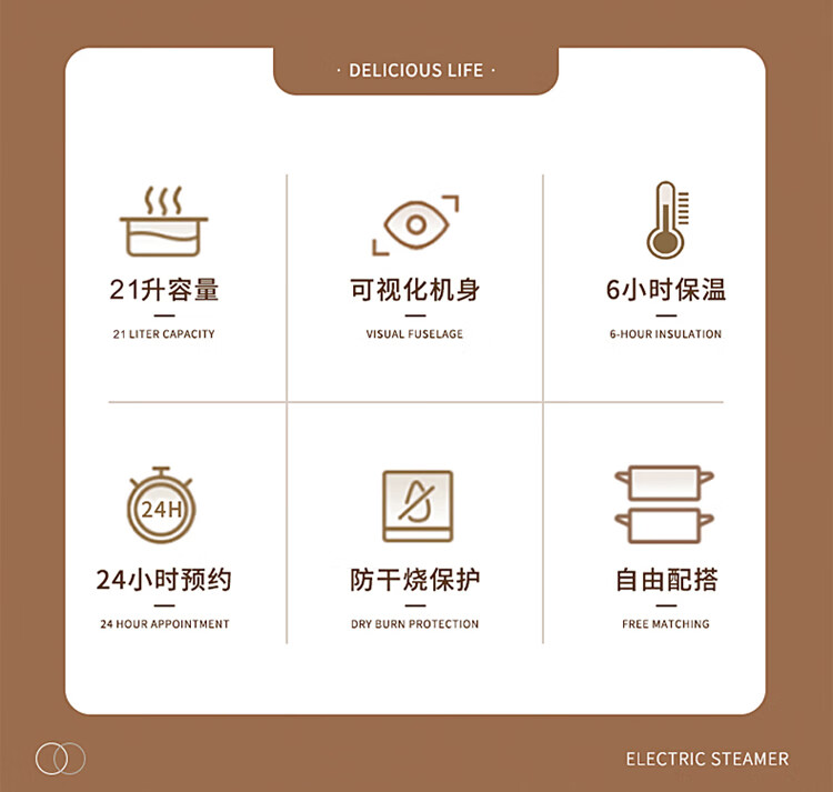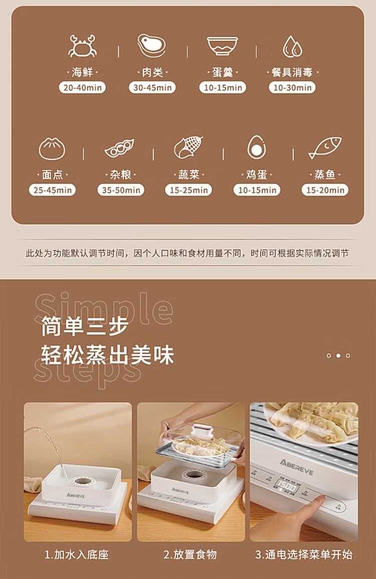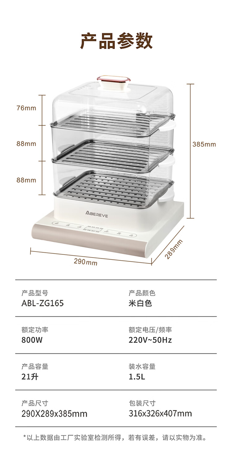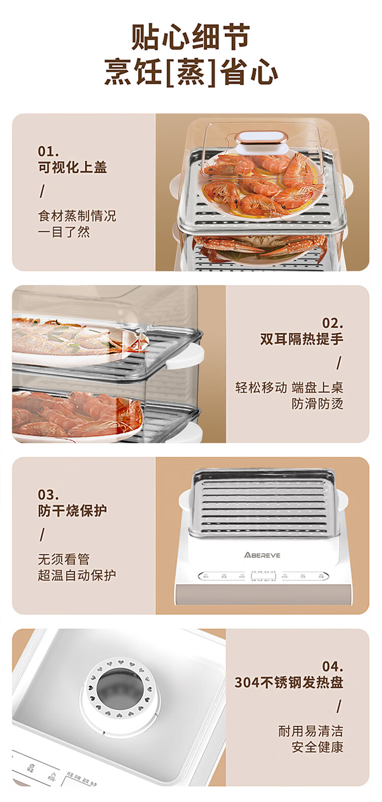 【小家电】Abereve艾贝丽21升大容量三层大空间电蒸锅ABL-ZG165 HF