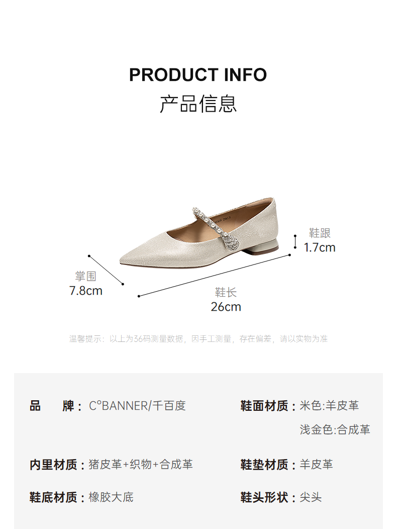 【静音系列】千百度低跟玛丽珍鞋2026春季新款羊皮通勤浅口单鞋A26179387