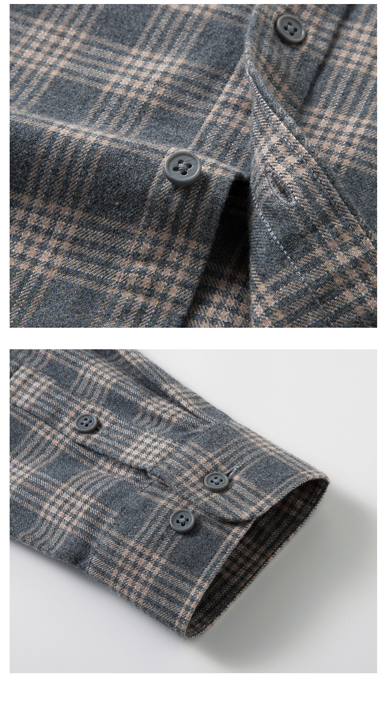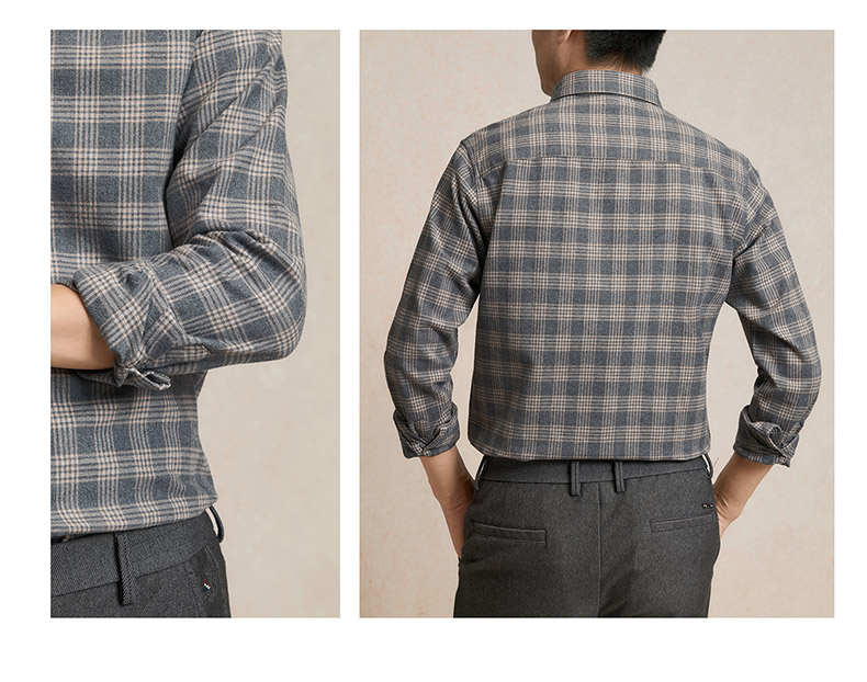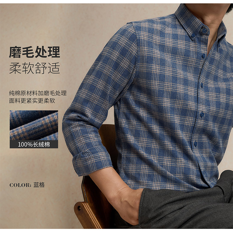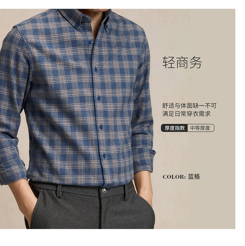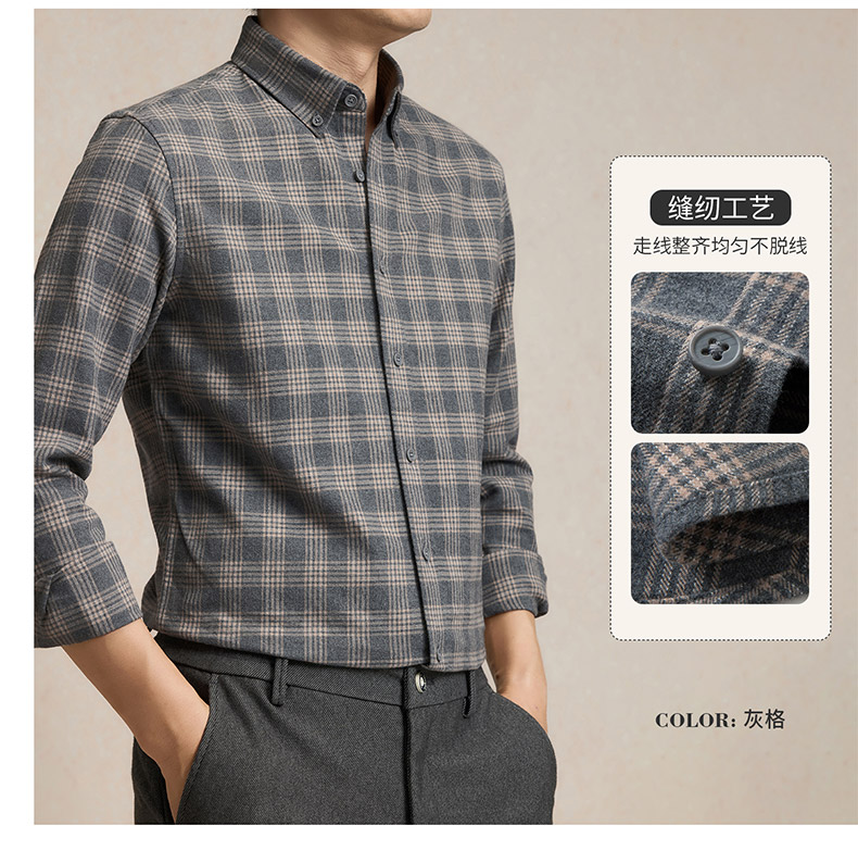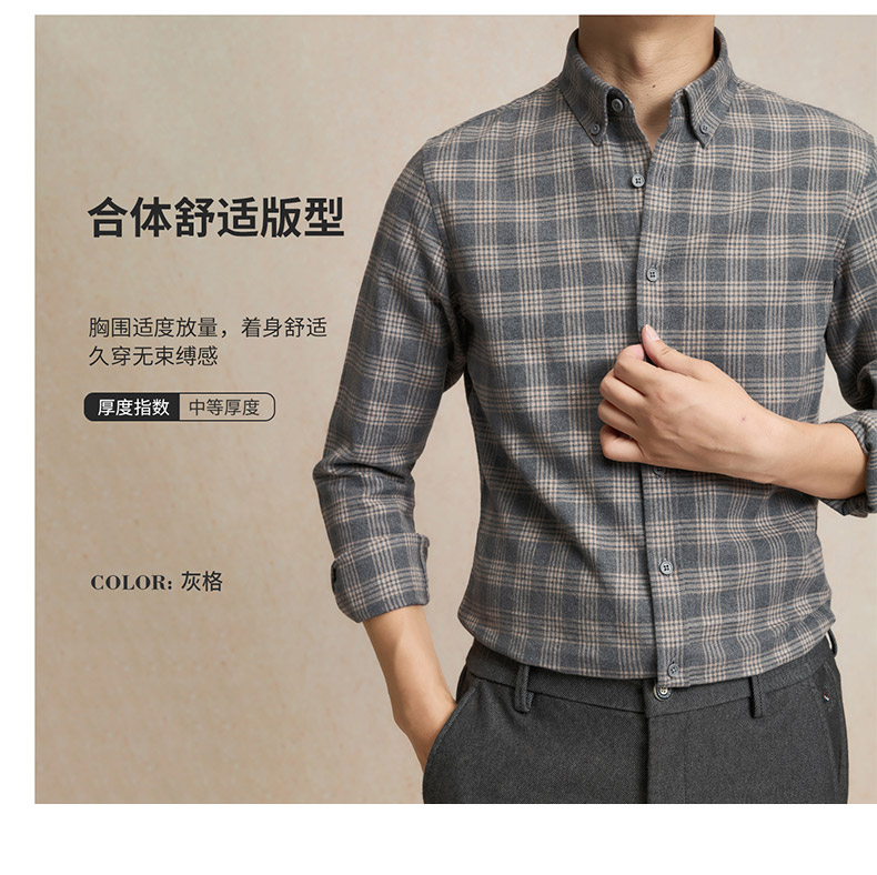 【全棉】罗蒙秋冬格纹长袖衬衫男士厚款亲肤舒适简约时尚男士长袖衬衣