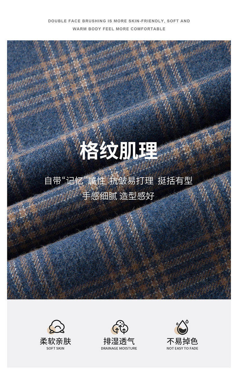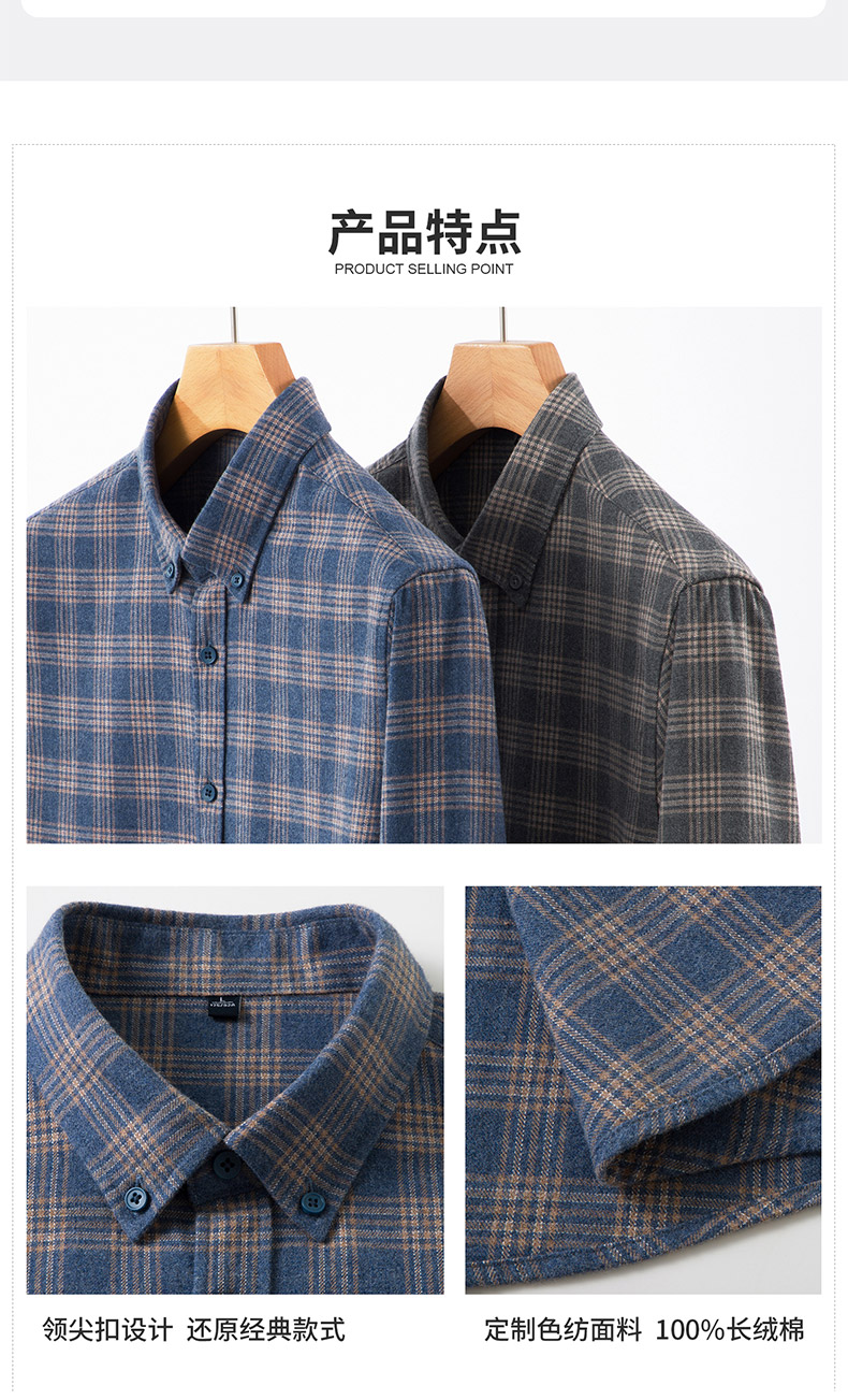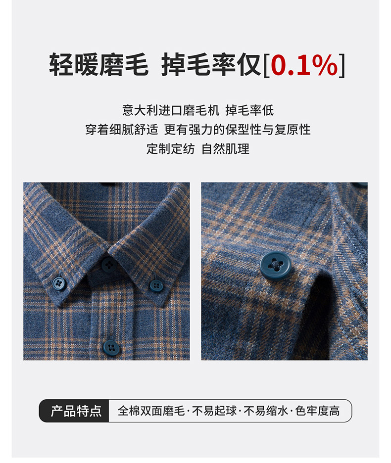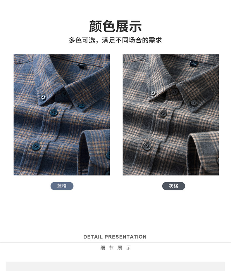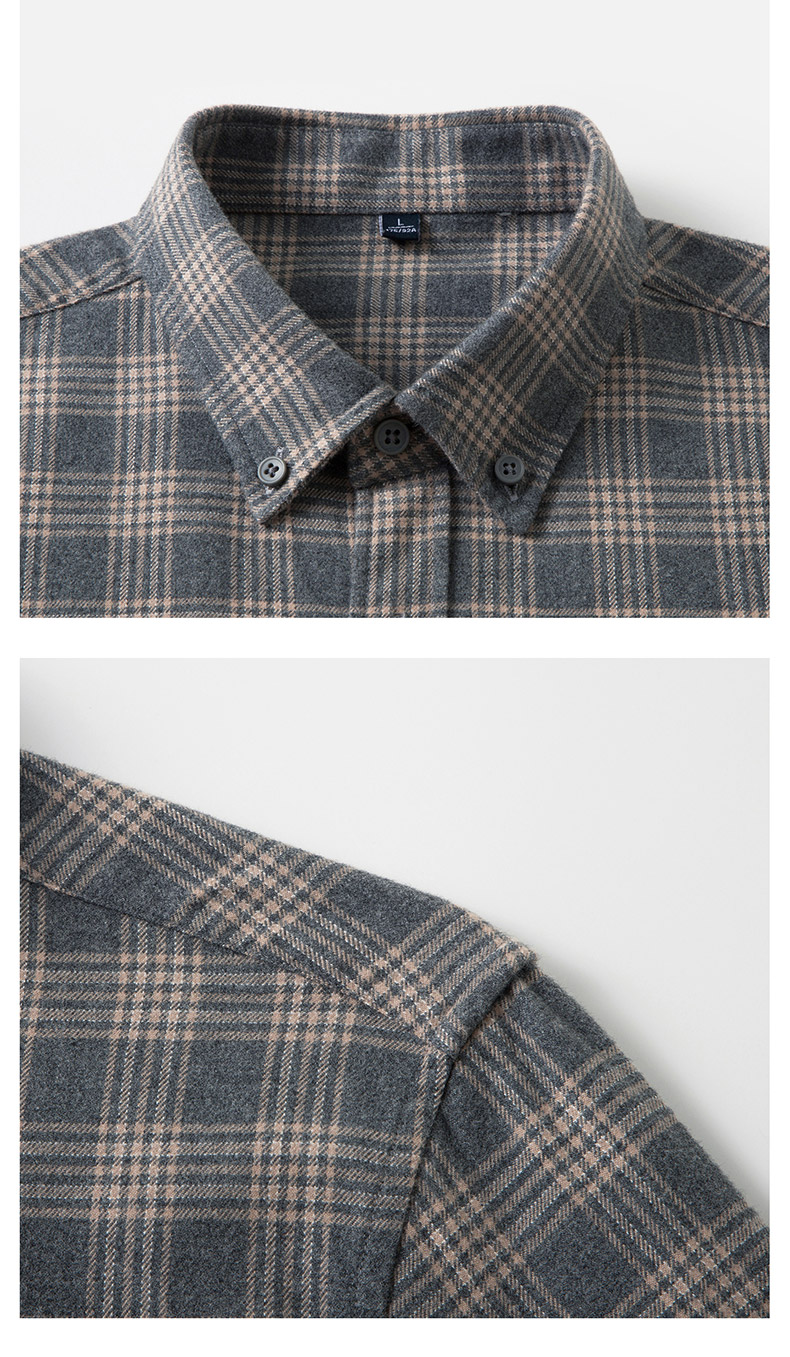 【全棉】罗蒙秋冬格纹长袖衬衫男士厚款亲肤舒适简约时尚男士长袖衬衣