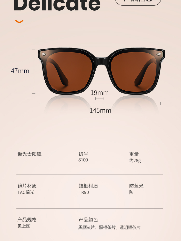 【品名】FolliFollie 云影猫眼太阳镜 高清镜片 8102 【规格】黑框灰片、白框灰片、茶框茶片、玳瑁框茶片 【品名】FolliFollie 高清偏光太阳镜 8100 【规格】黑框灰片、黑框茶片、白框灰片 【产地】国内 【发货包装】独立包装 【发货地】浙江 【发货快递】圆通 【补邮费地区】新疆、西藏+10元 【发货时效】48-72小时,周末节假日顺延 |