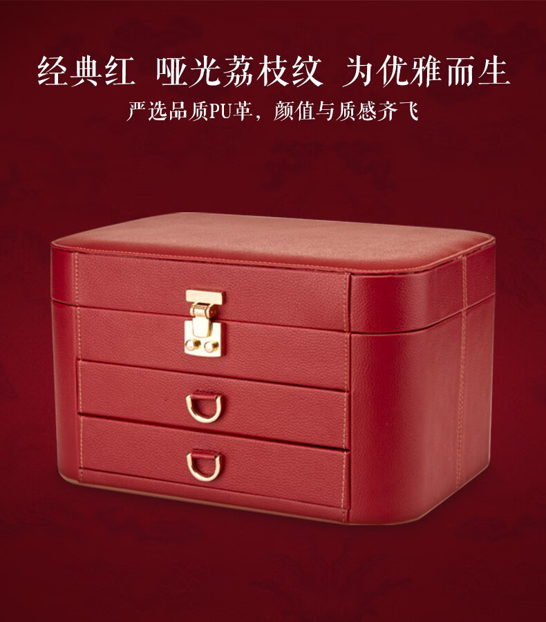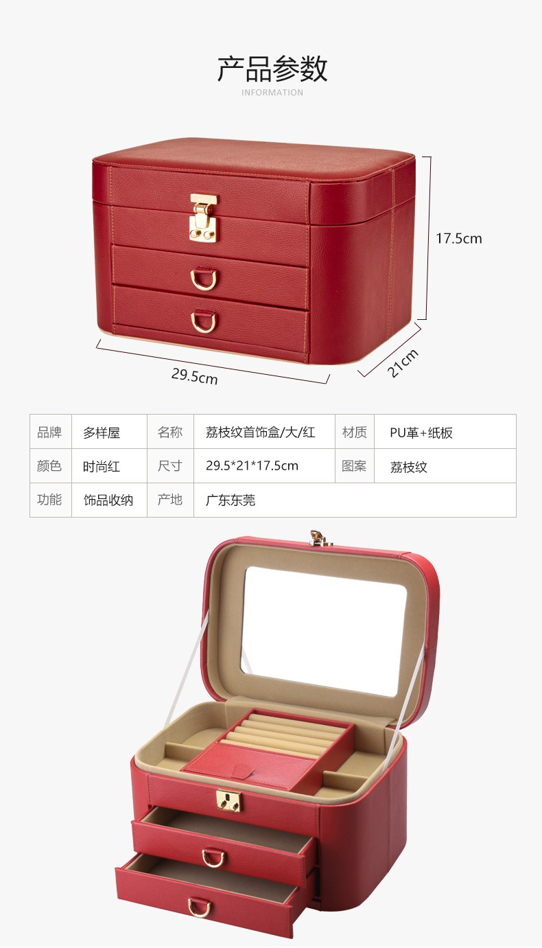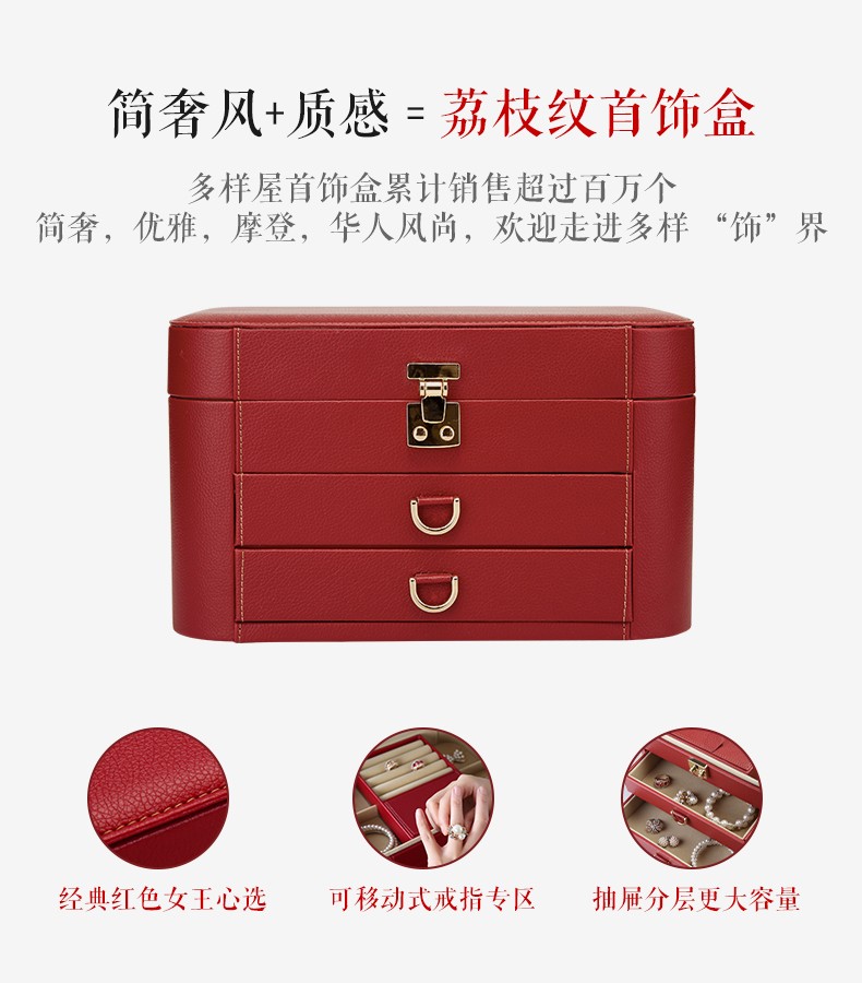 【多样屋专柜】荔枝纹首饰盒/中/红
