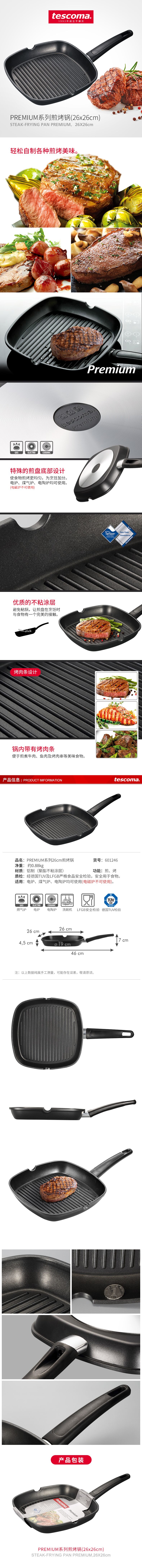 进口进口/ tescoma 不粘锅煎烤锅 煎牛排方形 煤气电陶炉通用少油烟平底锅煎锅