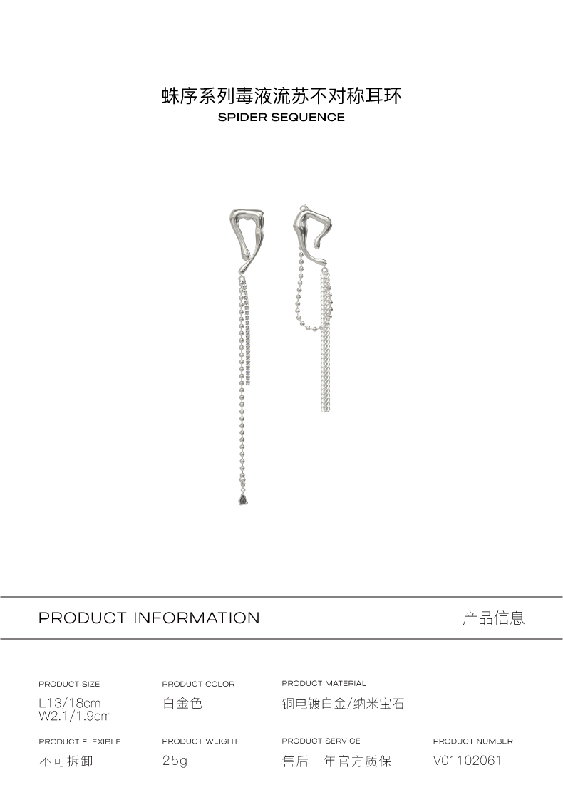 kvk2021新款毒液流苏不对称耳环小众设计长款高级大气流苏耳环