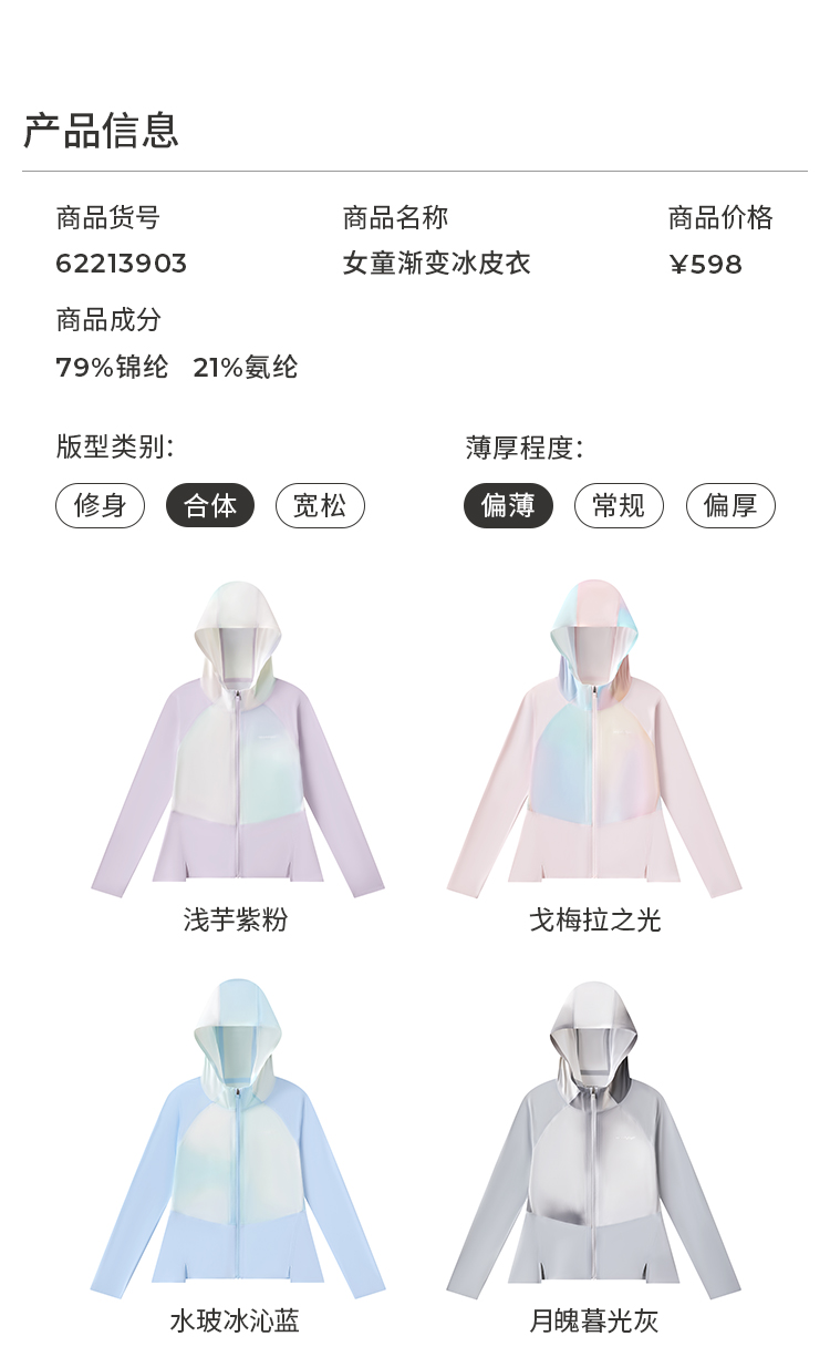 moodytiger女童防晒外套凉感26夏透气轻薄撞色冰皮衣62213903