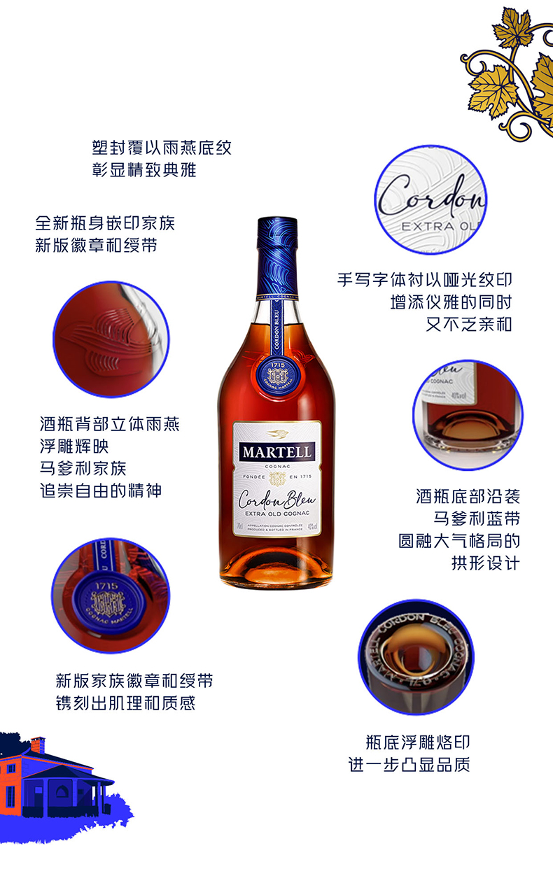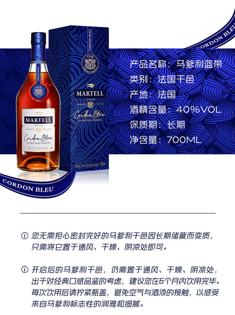 马爹利蓝带干邑白兰地 700ml 法国进口 XO级