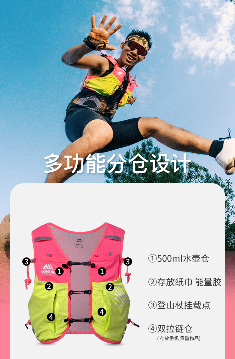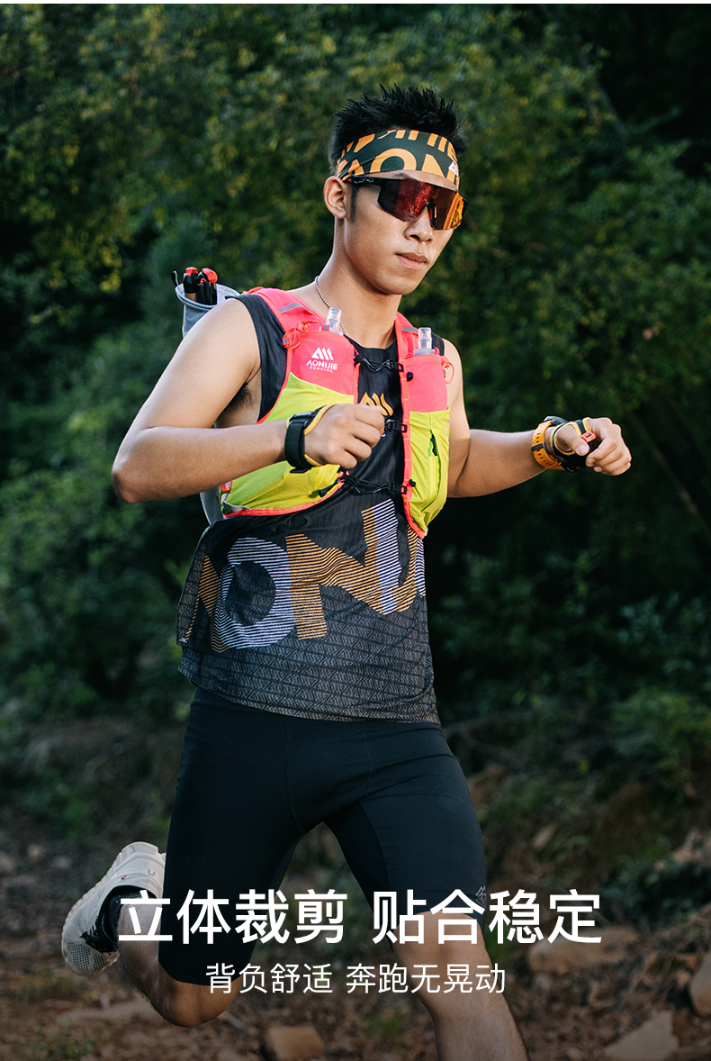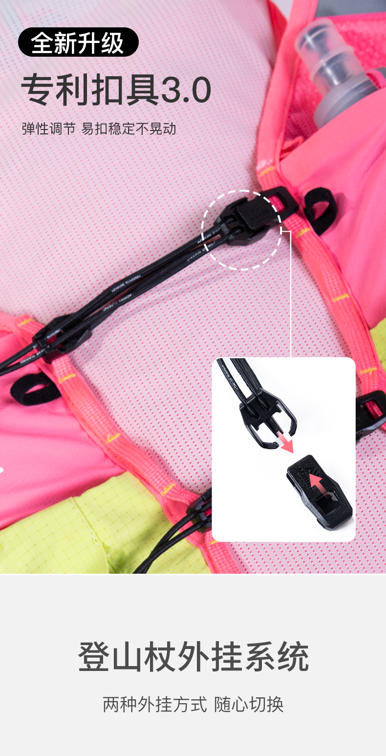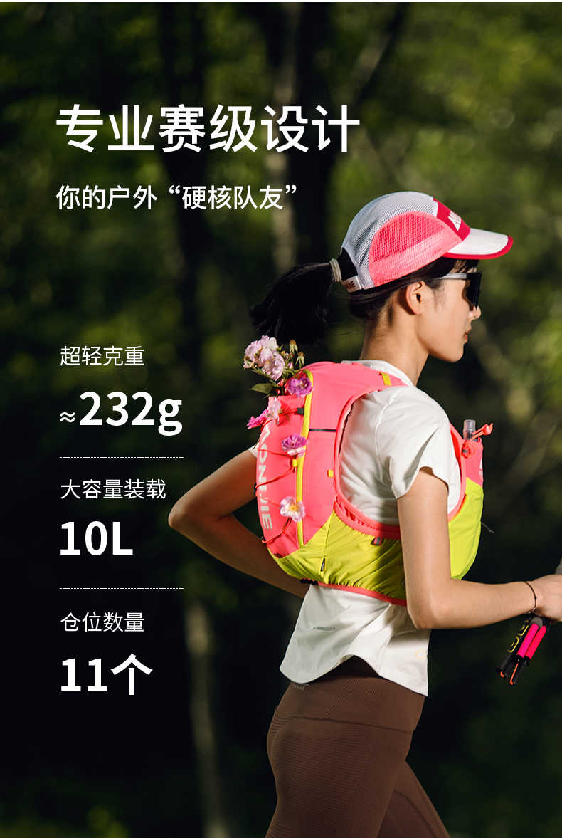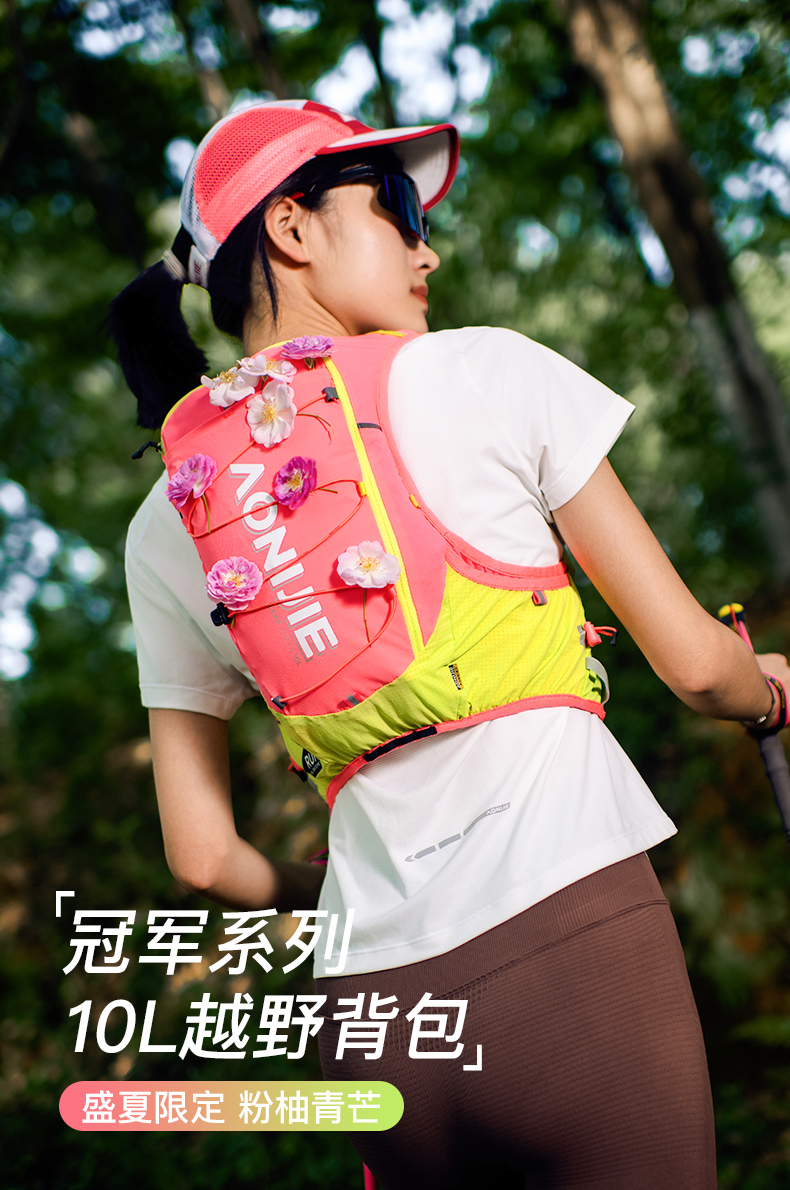 奥尼捷越野包粉柚青芒时尚拼色轻量跑步登山徒步背包水袋背包10L (搭配杖包免费送,颜色随机)