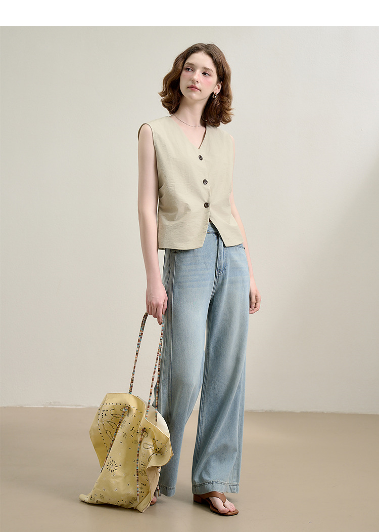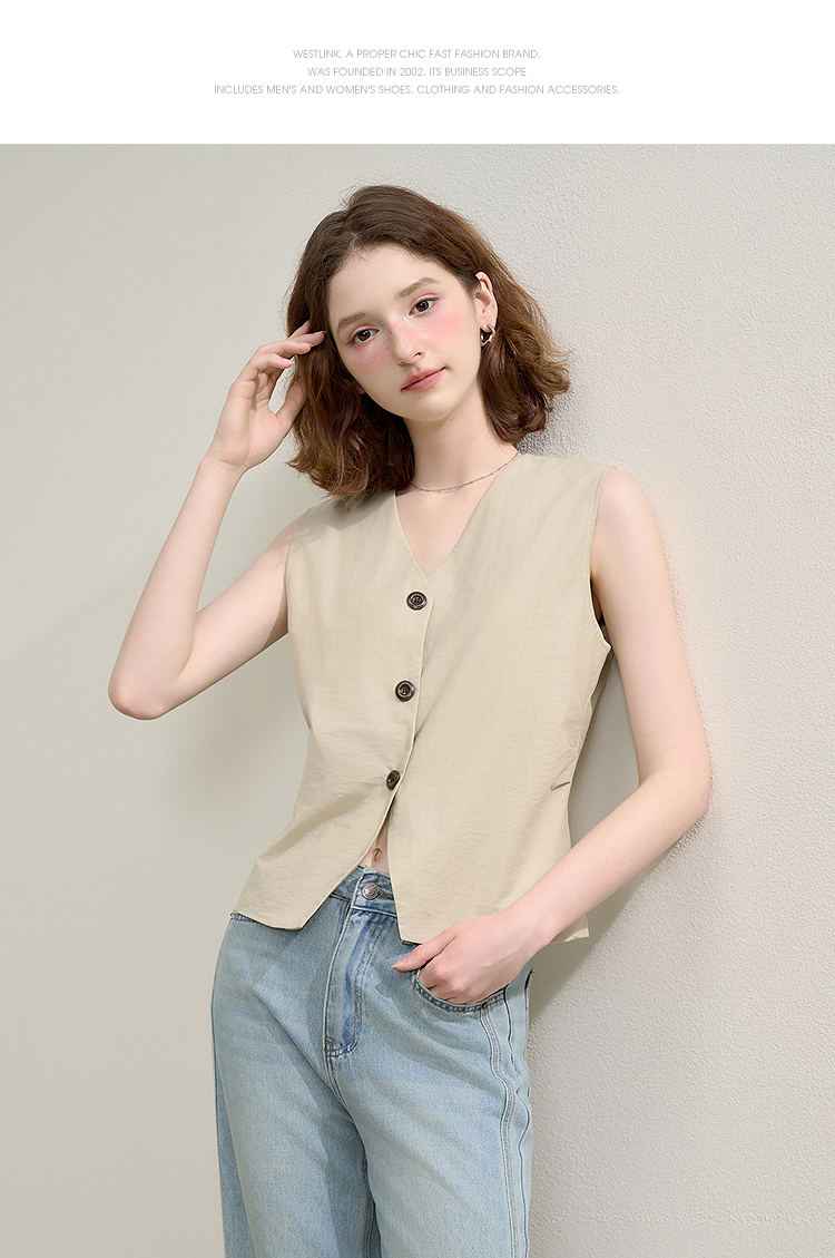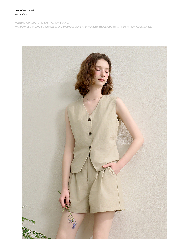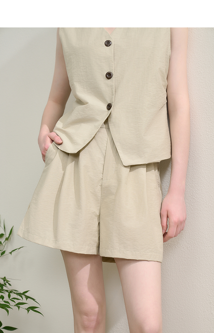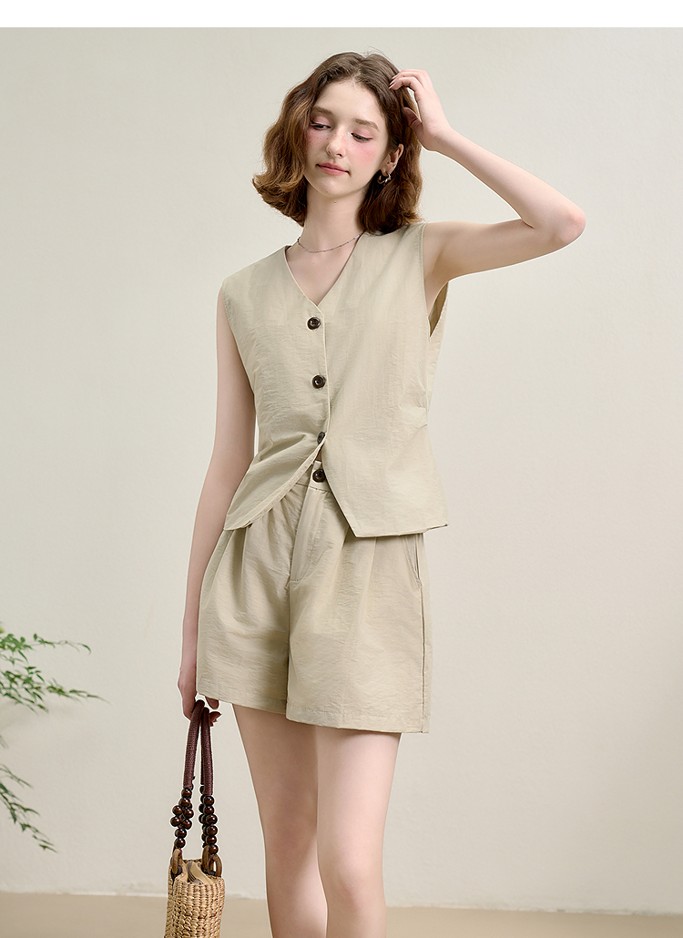 西遇宽松五分裤套装女夏季新款浅绿色无袖马甲上衣两件套K0050948
