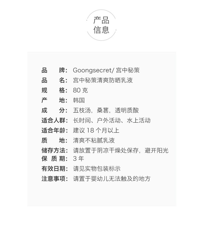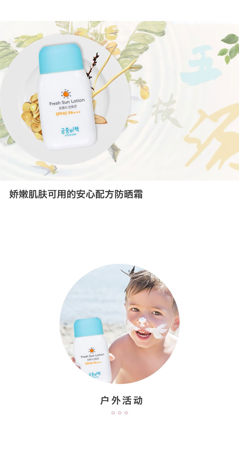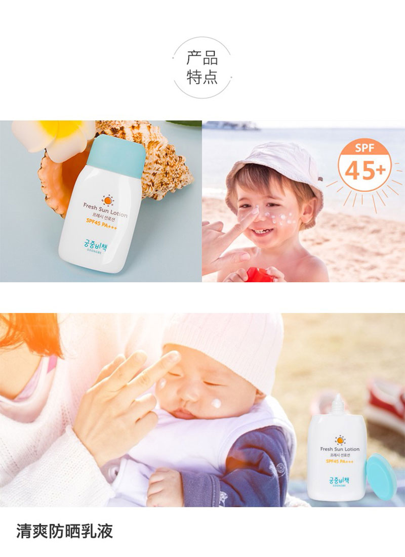 宫中秘策儿童防晒spf45保湿不油腻防晒乳液儿童防晒霜80g