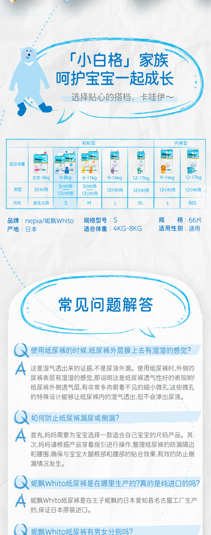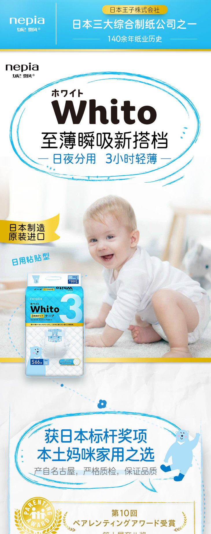 妮飘whito纸尿片S码日用