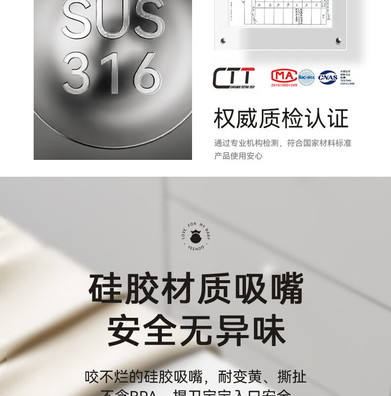英氏(YEEHOO)婴幼儿保温杯宝宝水杯保温奶瓶儿童吸管杯学饮一岁小月龄外出 小月龄保温学饮杯【6月+】