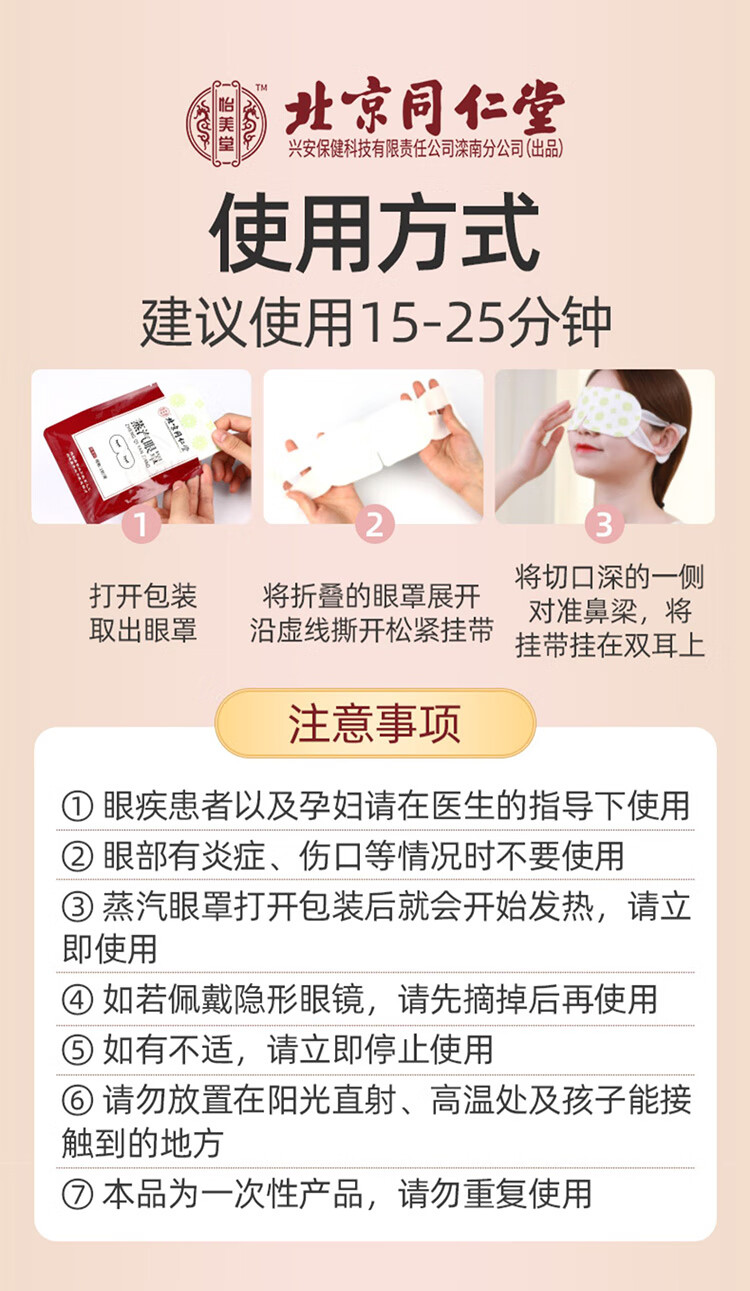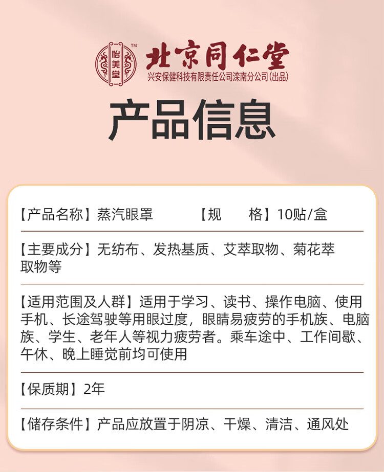 同仁堂蒸汽眼罩眼疲劳热敷发热眼睛罩护眼贴遮光透气睡眠男女士通用10贴 100022291699