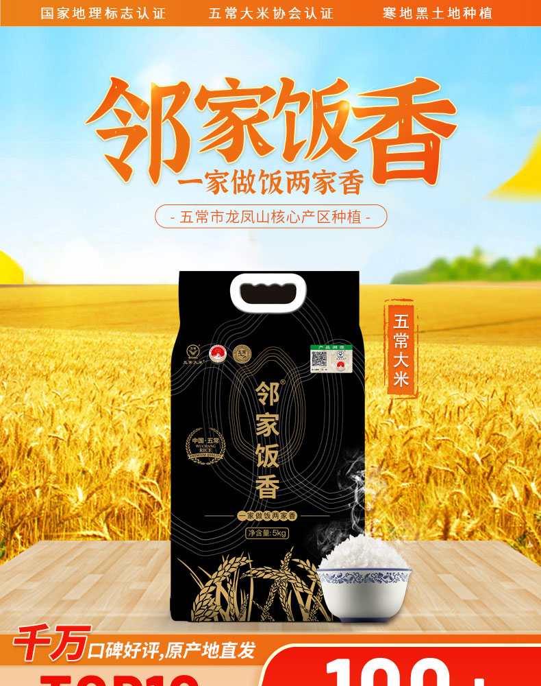邻家饭香 核心产区五常大米 5kg每袋 真空双层包装 LJFX149