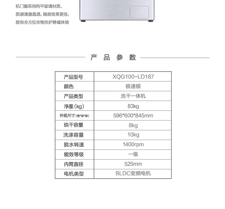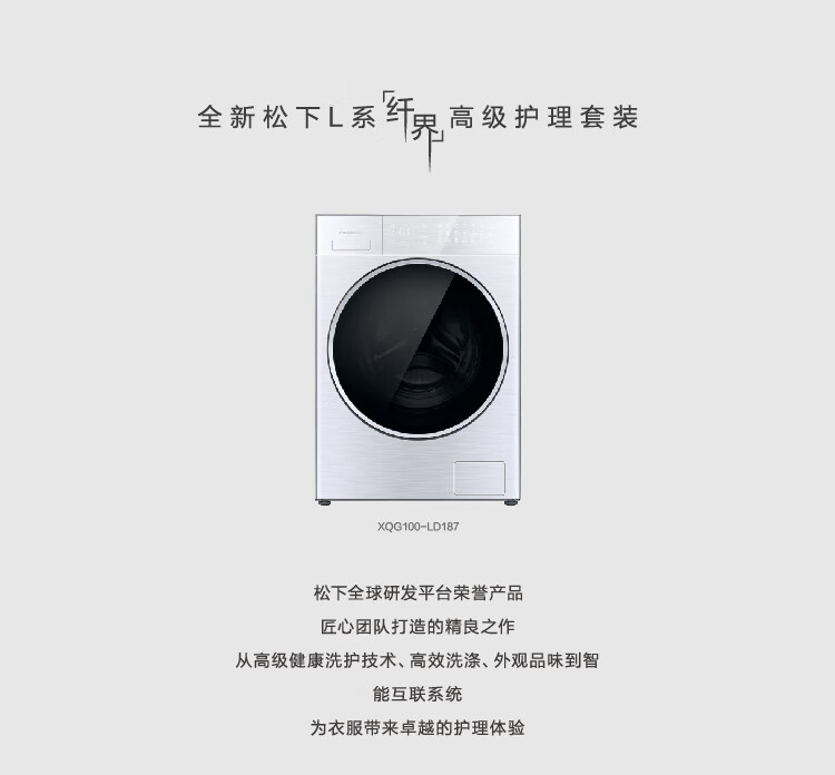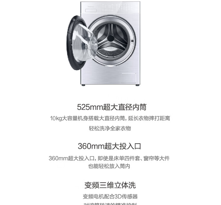松下XQG100-LD187 10公斤洗烘一体全自动滚筒洗衣机 高温除菌3D立体洗