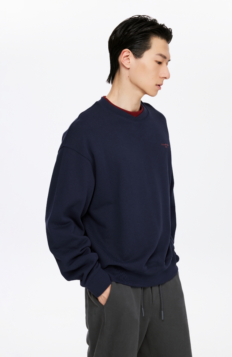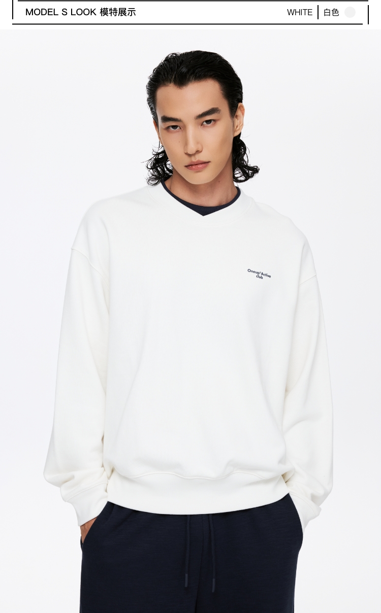 oneup撞色双层领套头卫衣