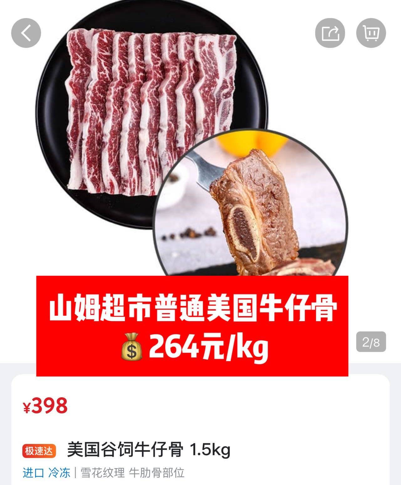 💰山姆超市的【普通】牛仔骨,合¥264/kg