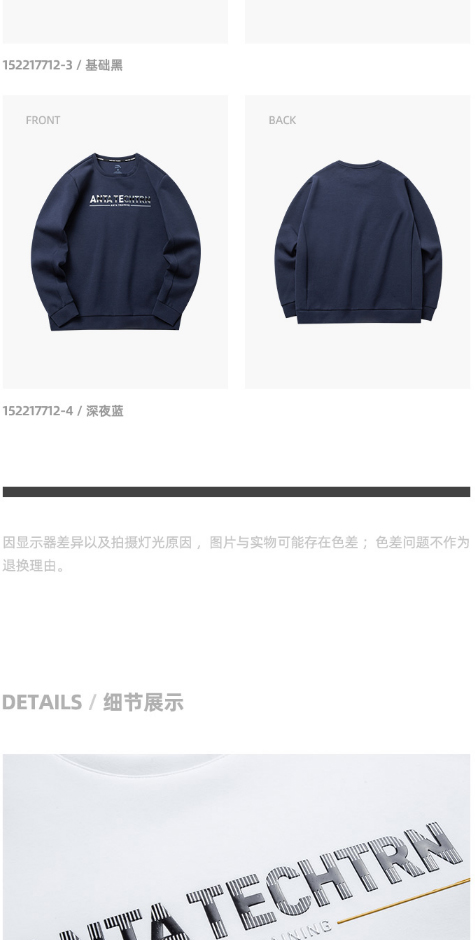 安踏男士圆领套头运动服休闲卫衣152217712-2
