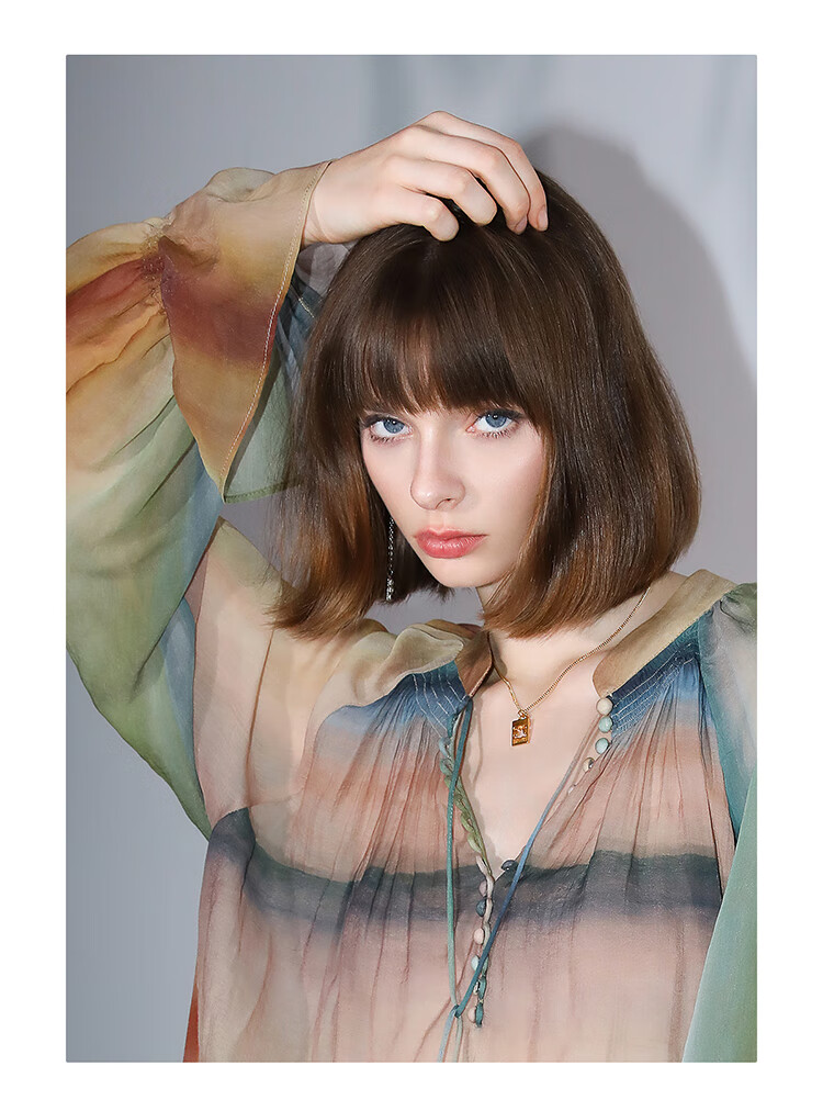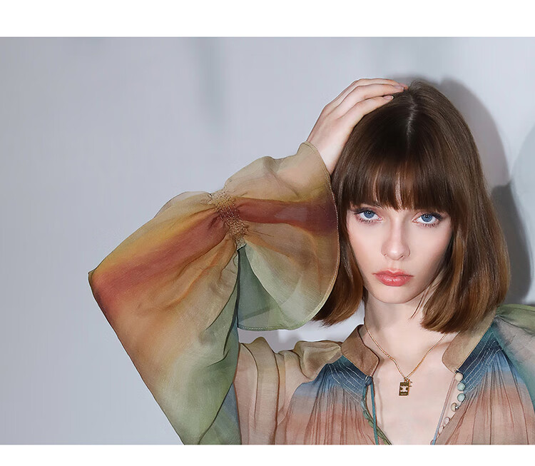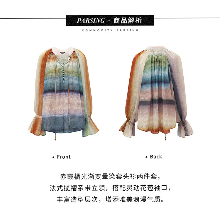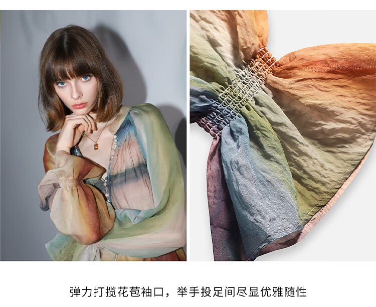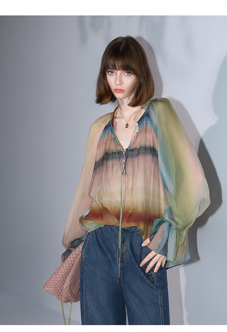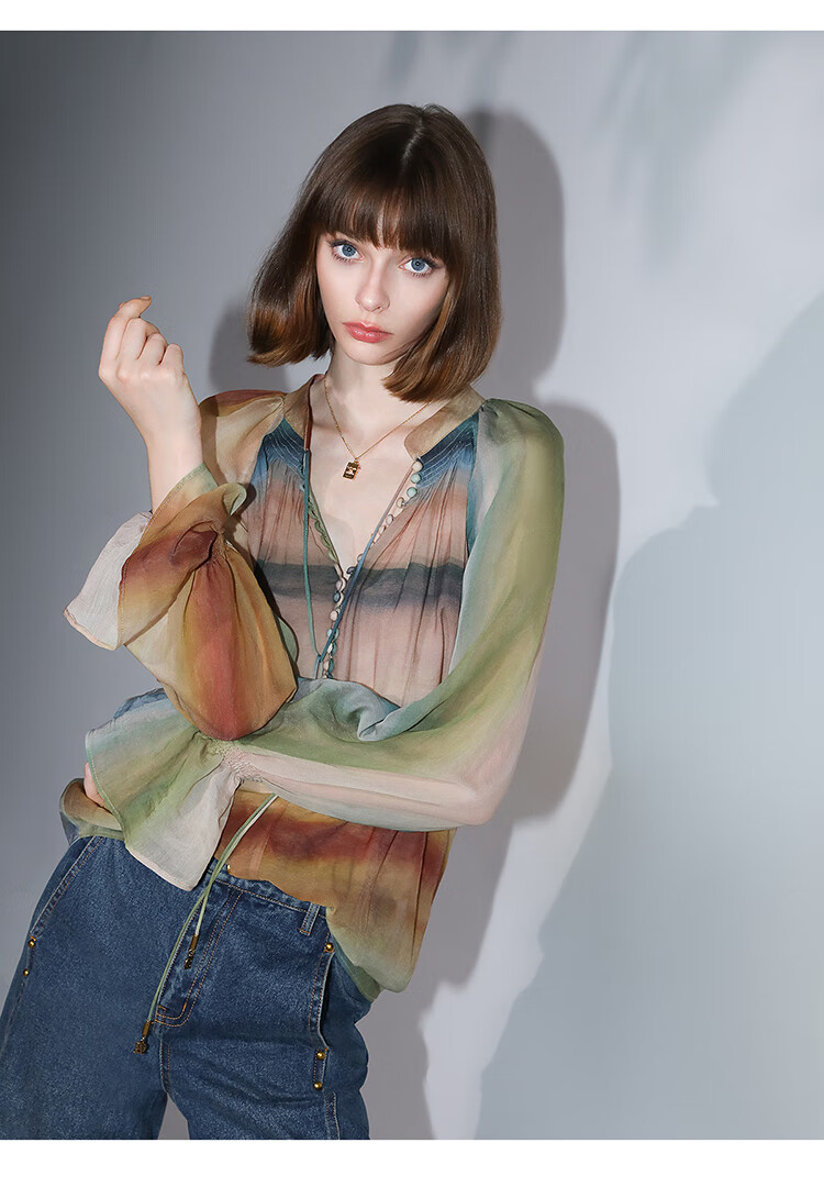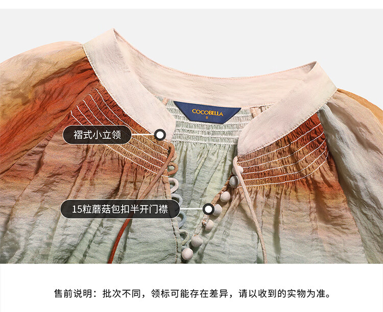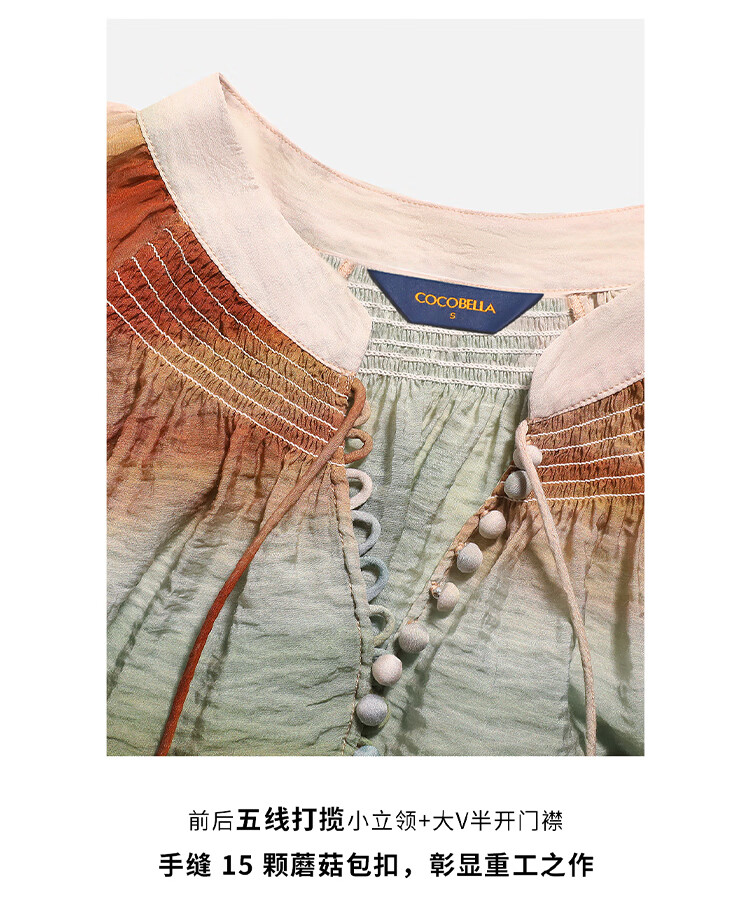 【限时秒杀】COCOBELLA[赤霞橘光]重工打揽手绘彩虹条纹通勤衬衫SR7032
