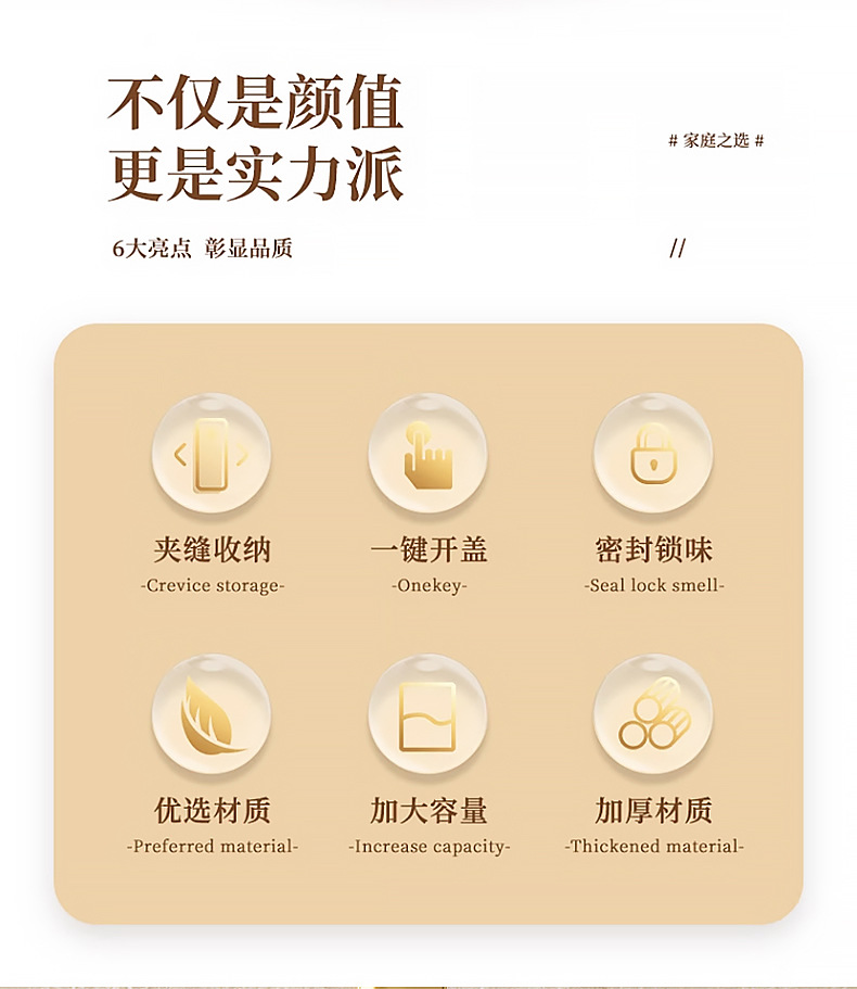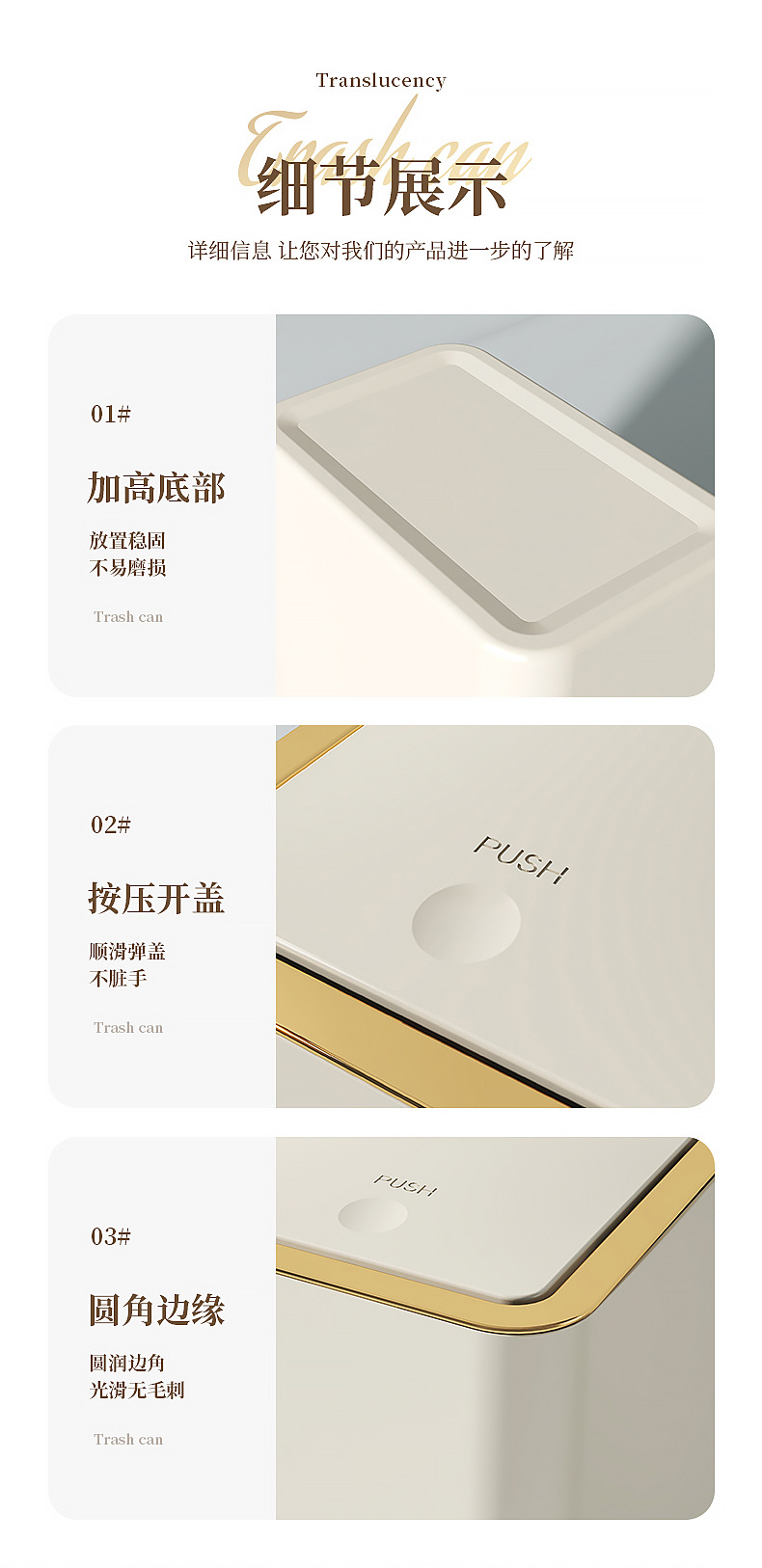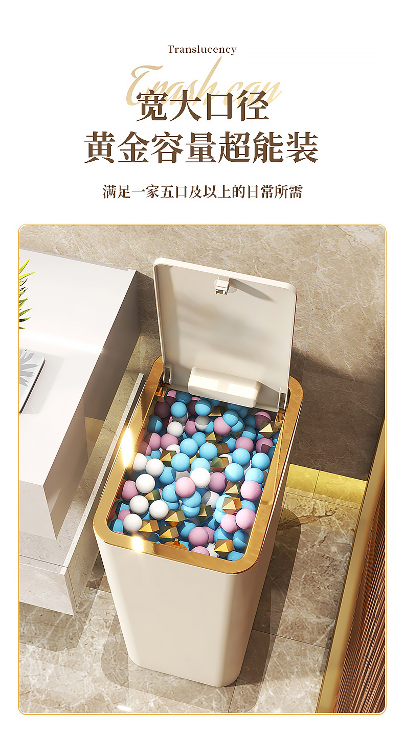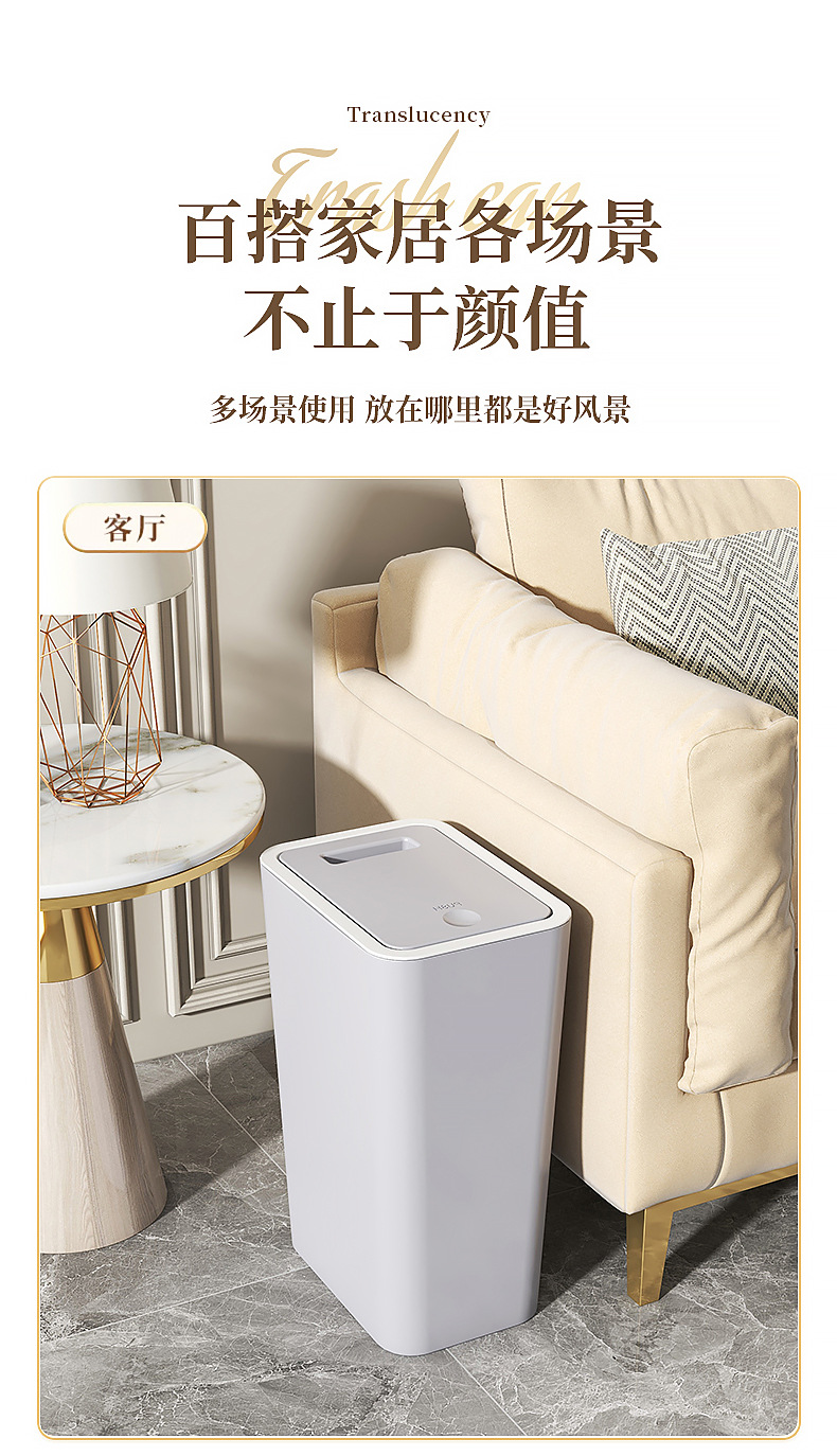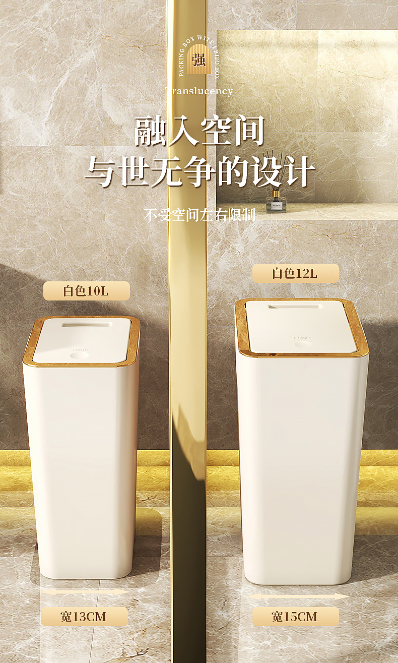 「释放双手,开启清新生活。」高颜值大号盖密封垃圾桶,90°顺畅开盖,静音为你排忧解难,不只是卫生间的好帮手,更是生活中的精致小物!