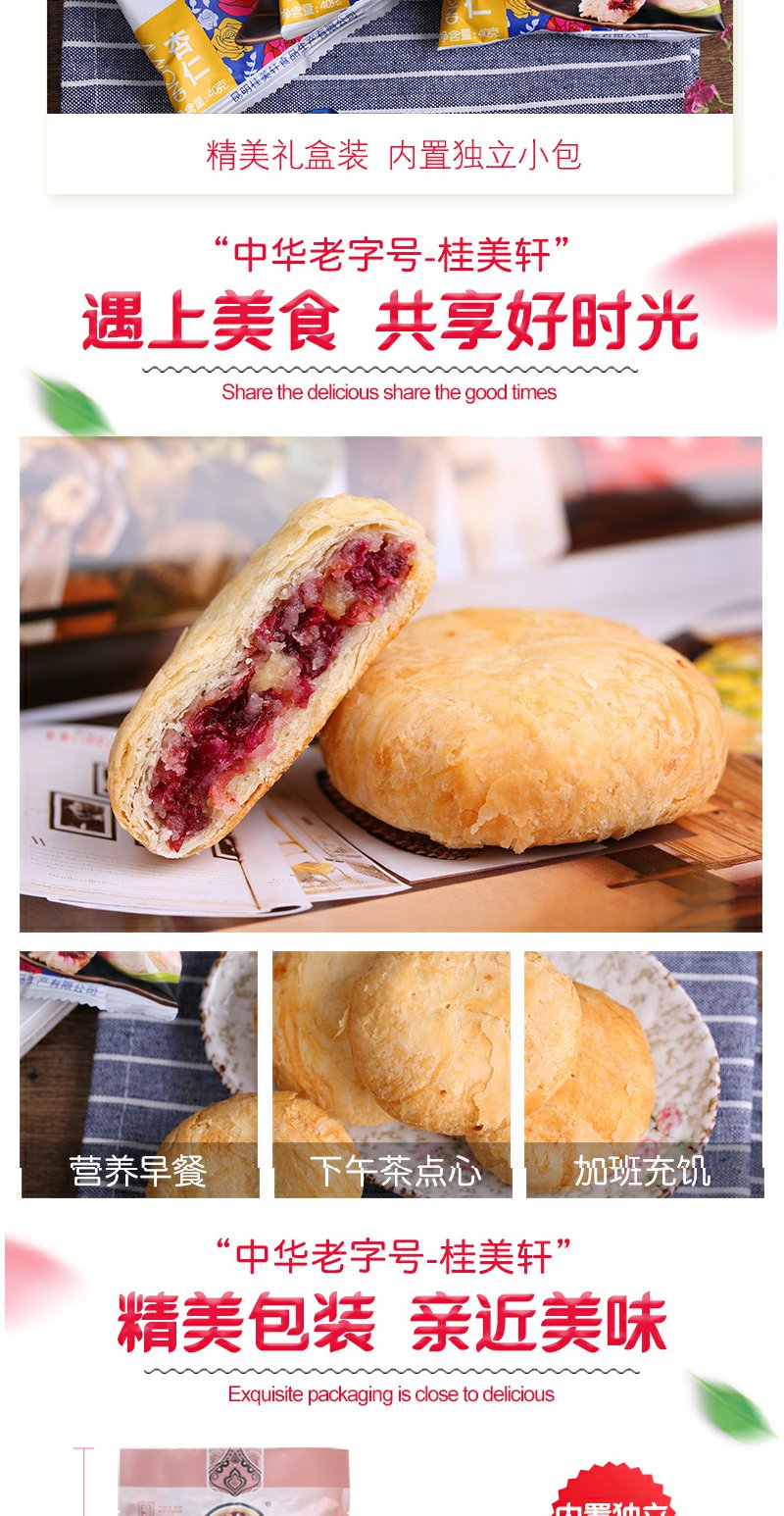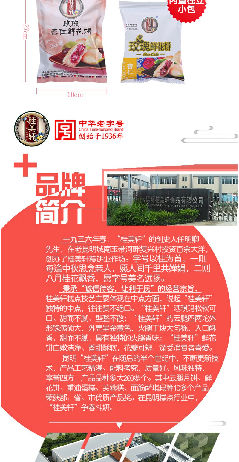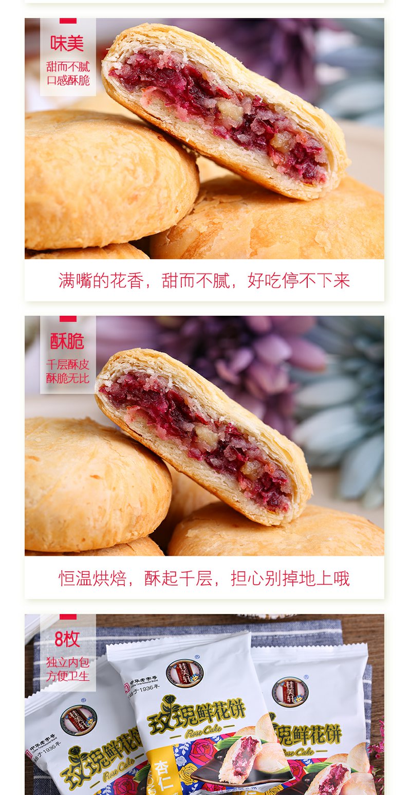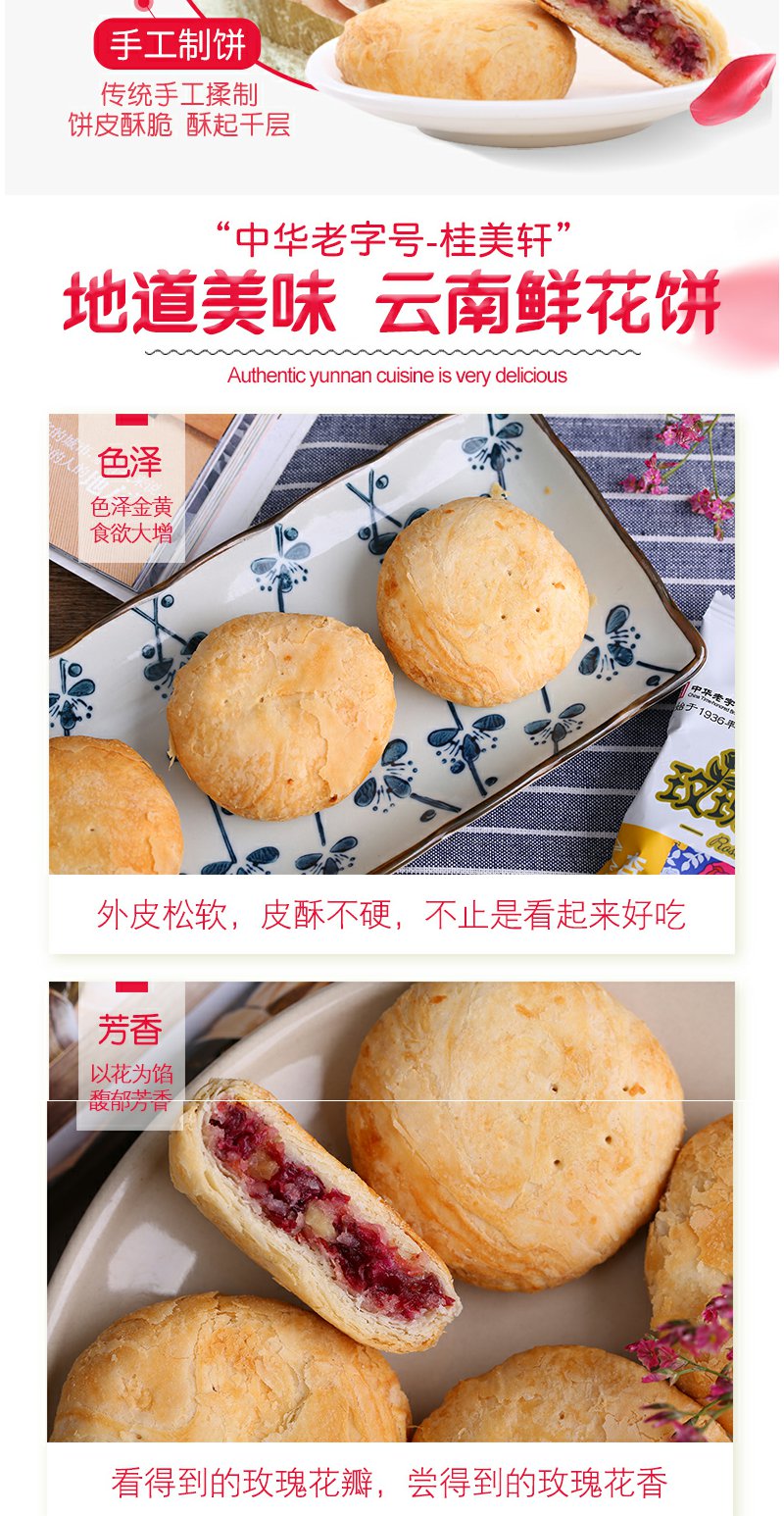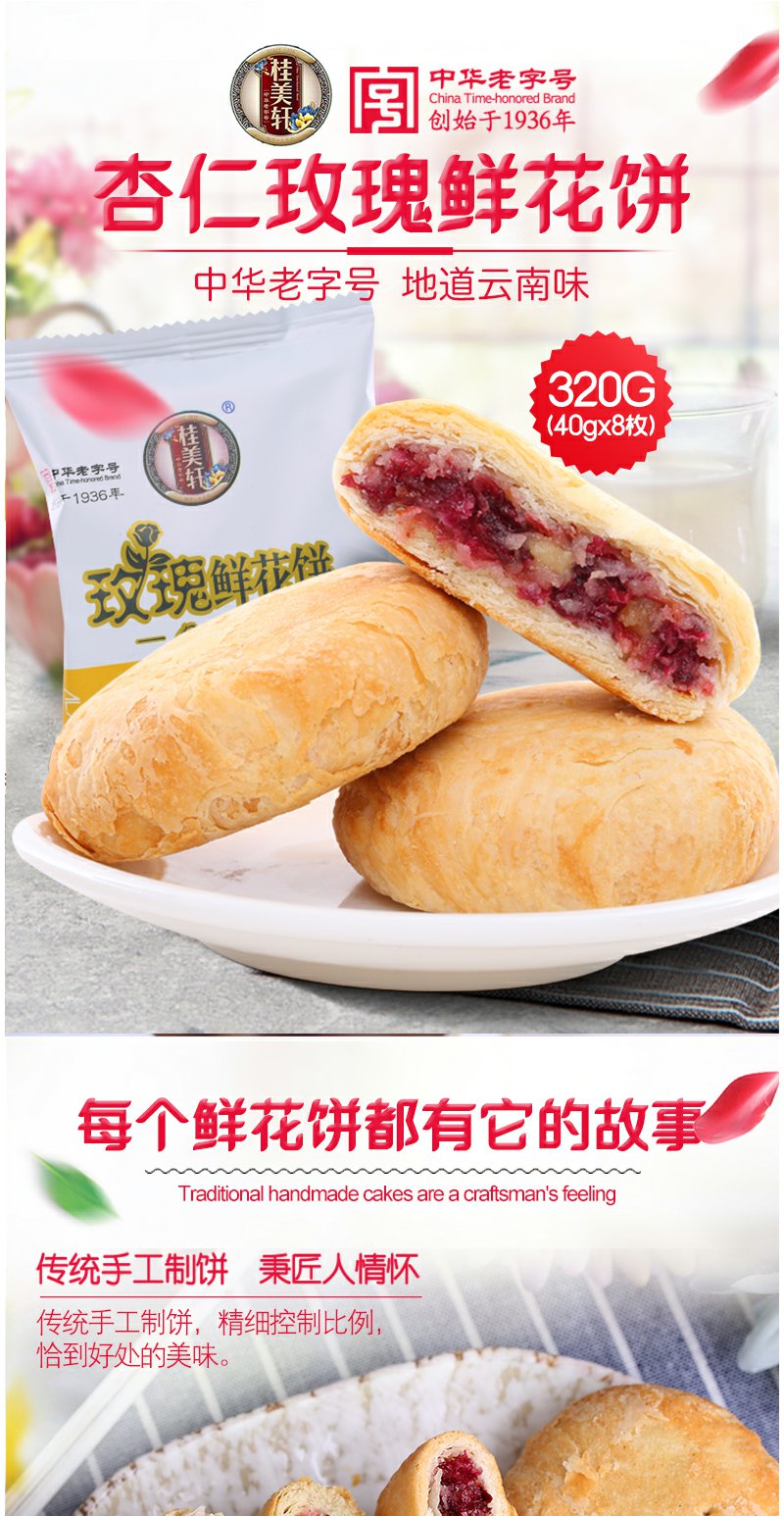 中华老字号桂美轩云南特产杏仁玫瑰鲜花饼320g/袋休闲零食