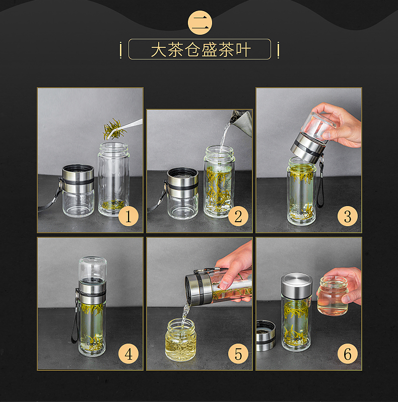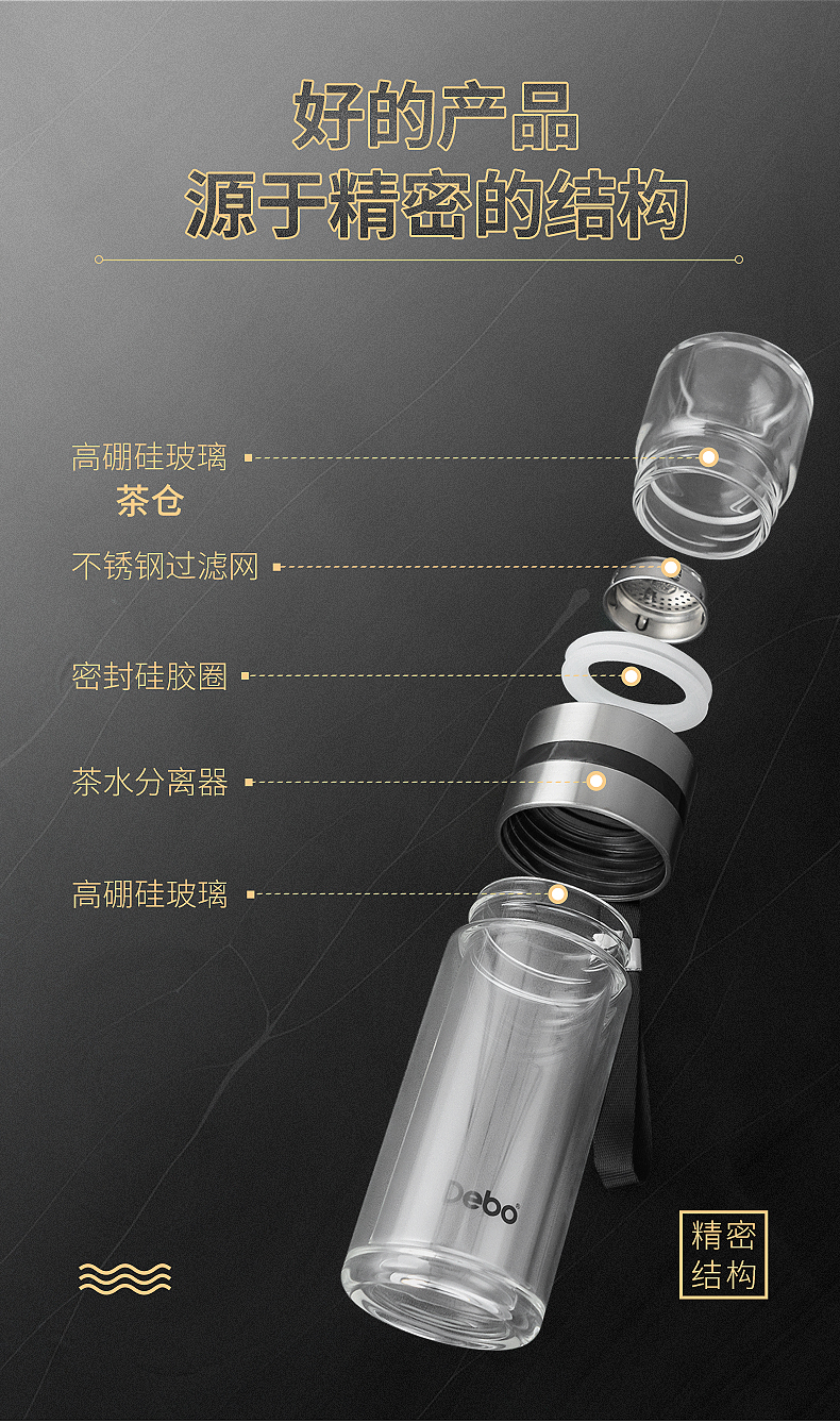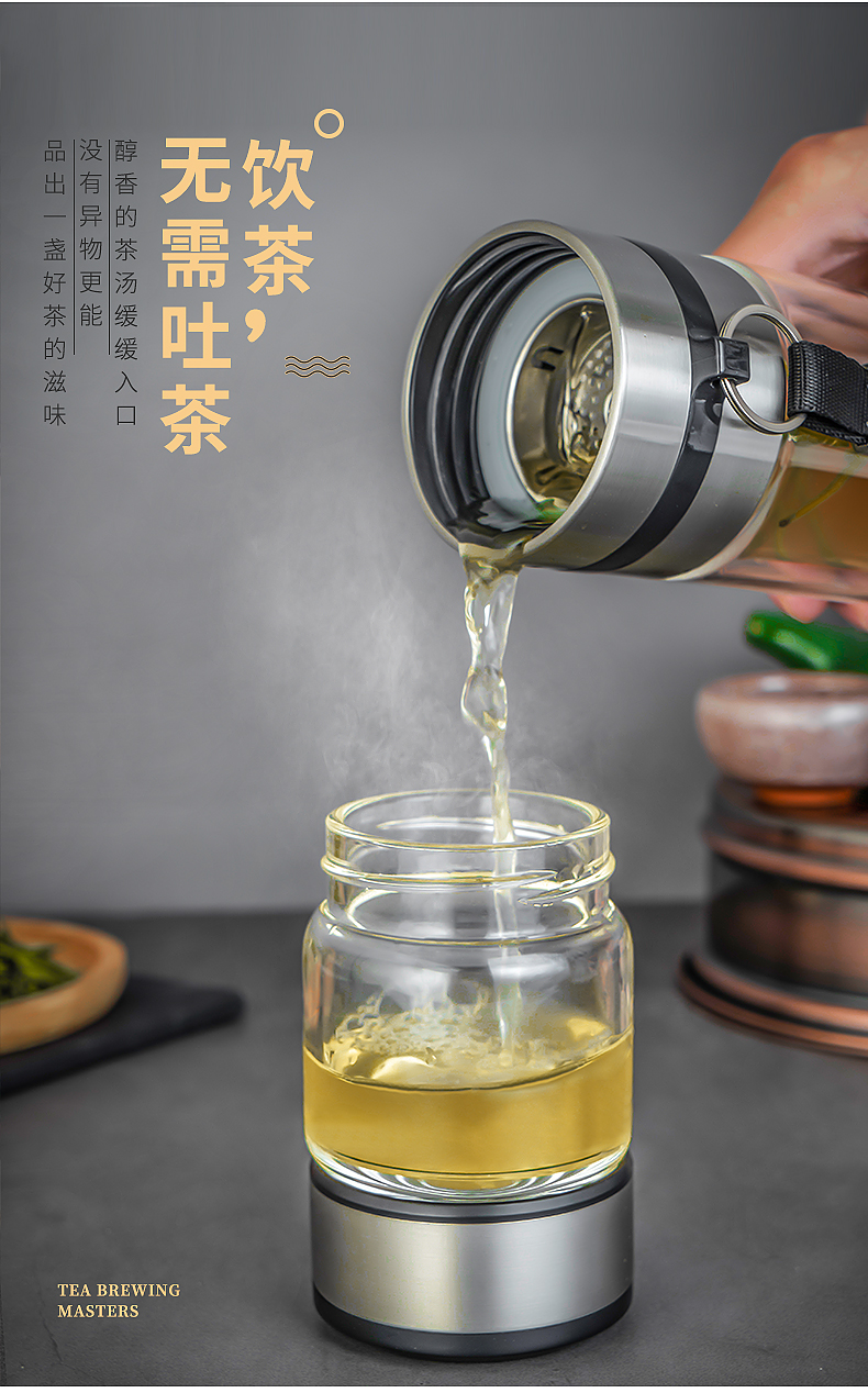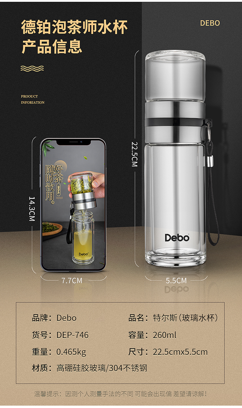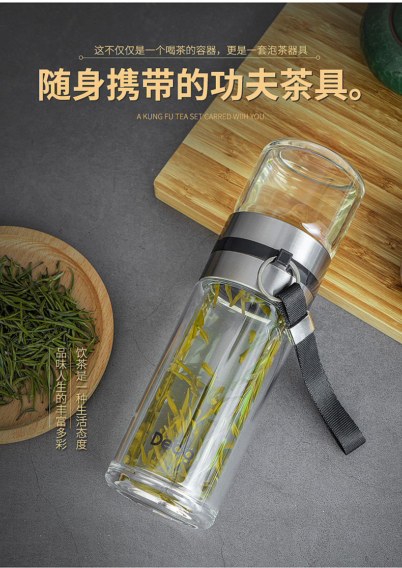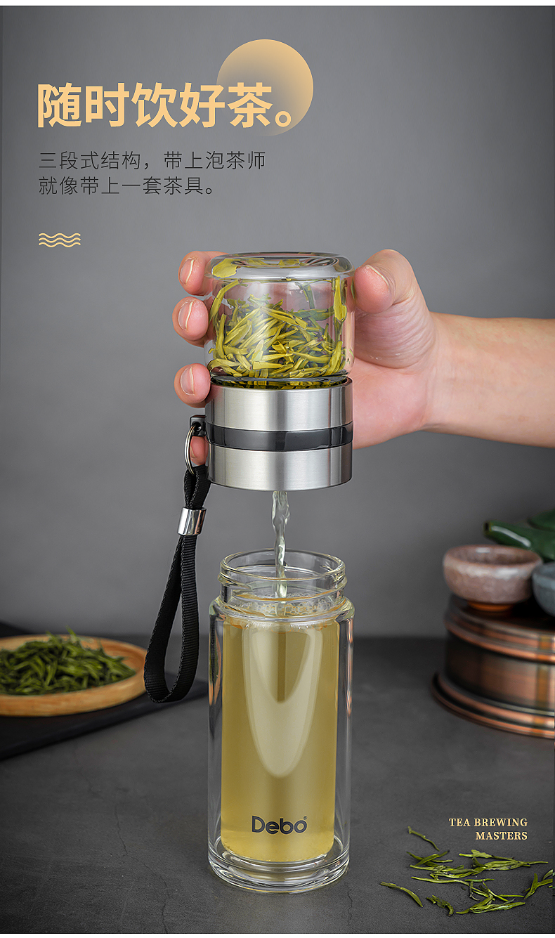 Debo德铂特尔斯高硼硅玻璃杯便携式茶杯泡茶水杯分离中式乐扣水壶260ml