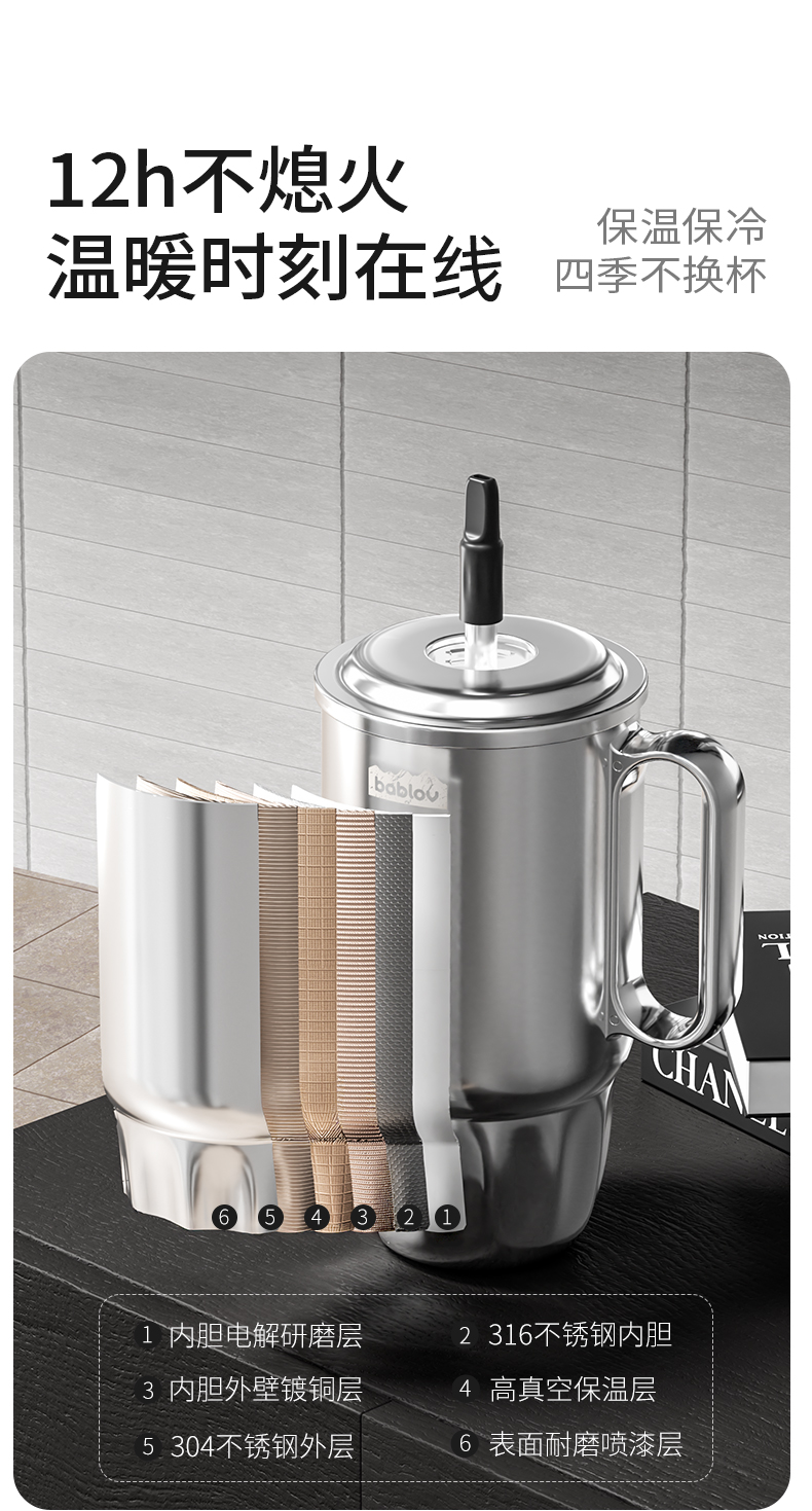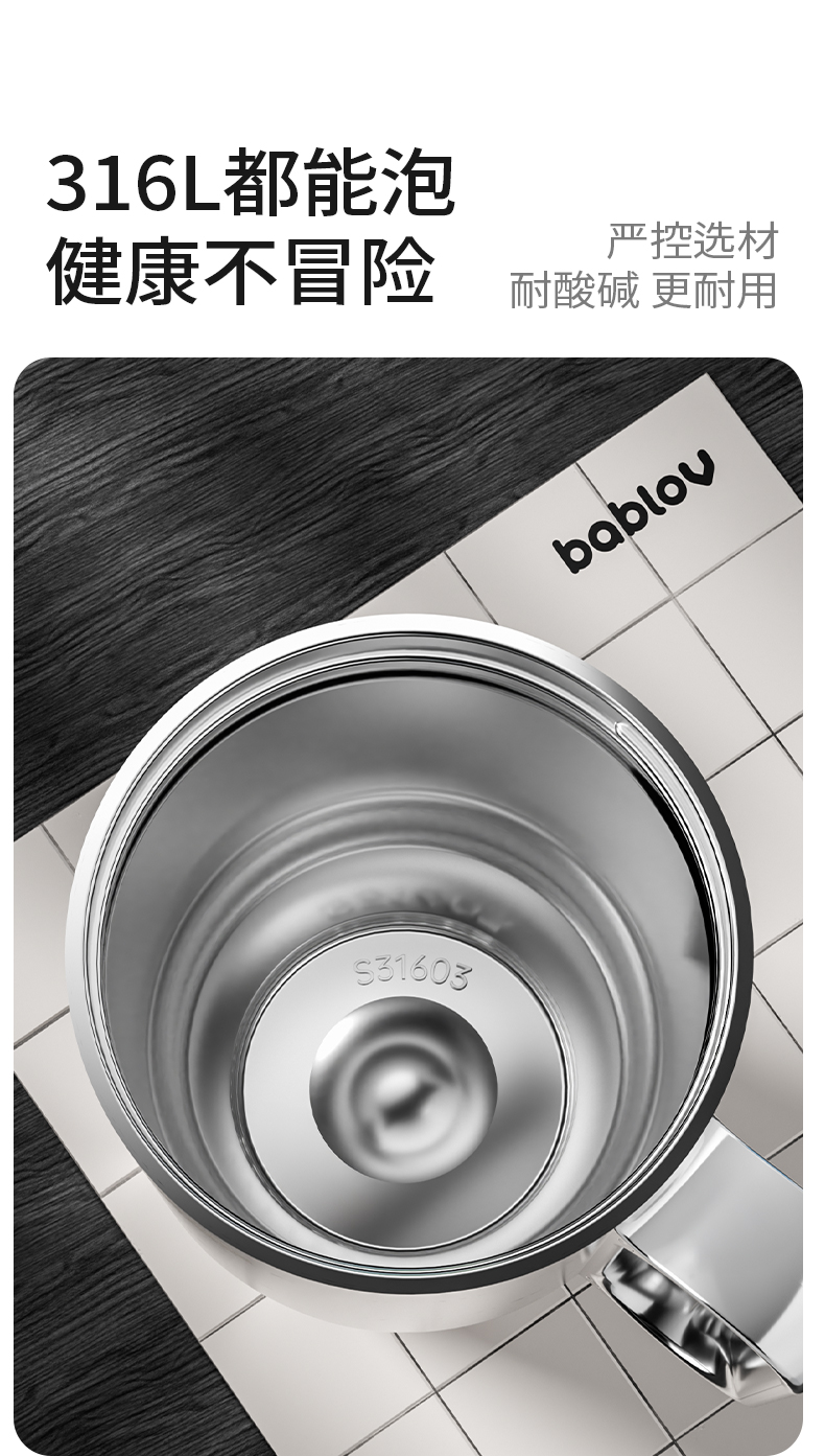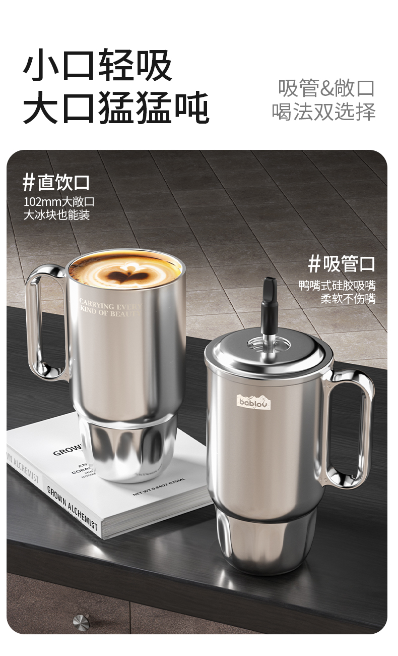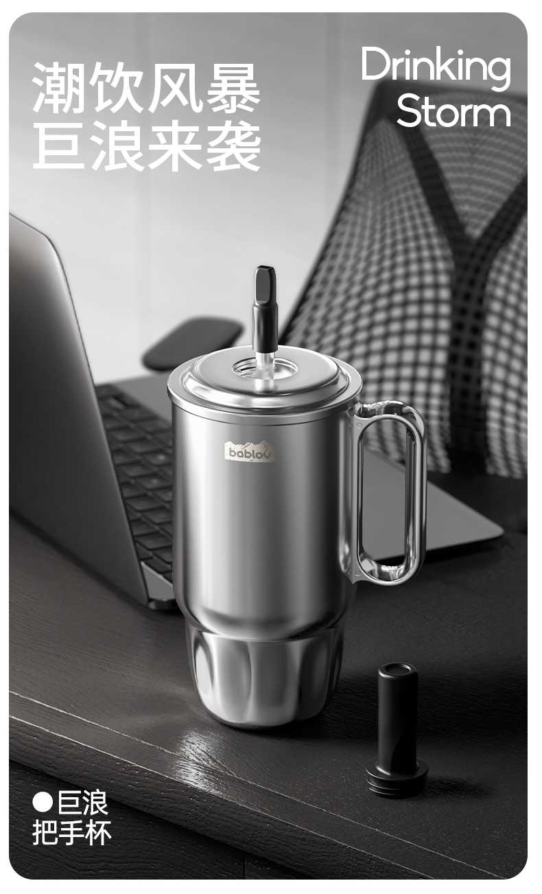 bablov巨浪把手杯男生大容量车载水杯316不锈钢男女生外出专用便携