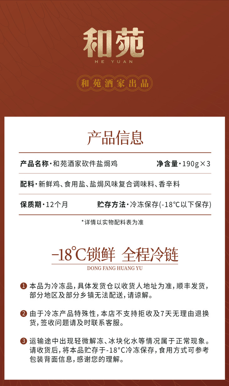 【地道美食丨和苑酒家黄羽盐焗鸡豉油鸡系列570g/袋(共3份,每份190g)】连续8年蝉联米其林榜单,挑优质食材,17种原料不同火候下研制,皮亮肉嫩,解冻后,倒入容器加热即食~