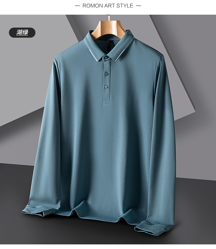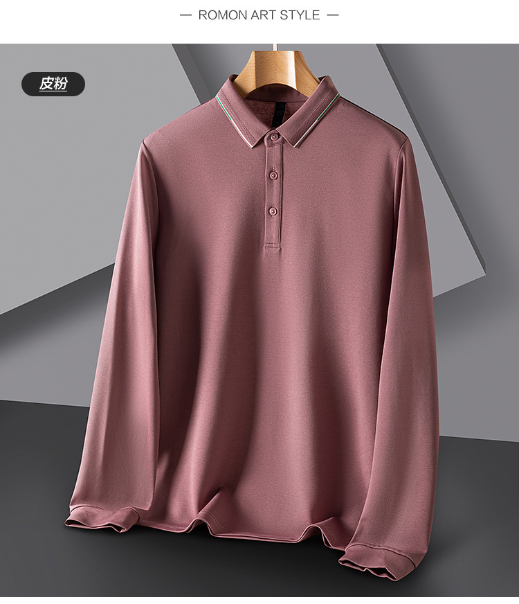 【含桑蚕丝】罗蒙春秋男士商务polo衫男长袖时尚舒适翻领百搭休闲长袖t恤男