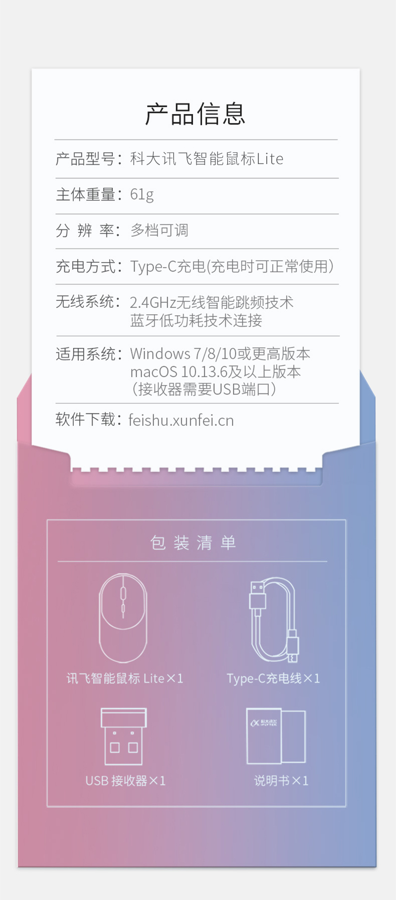 【已下架】科大讯飞智能语音鼠标 Lite讯飞M320 无线蓝牙语音输入[福利品]