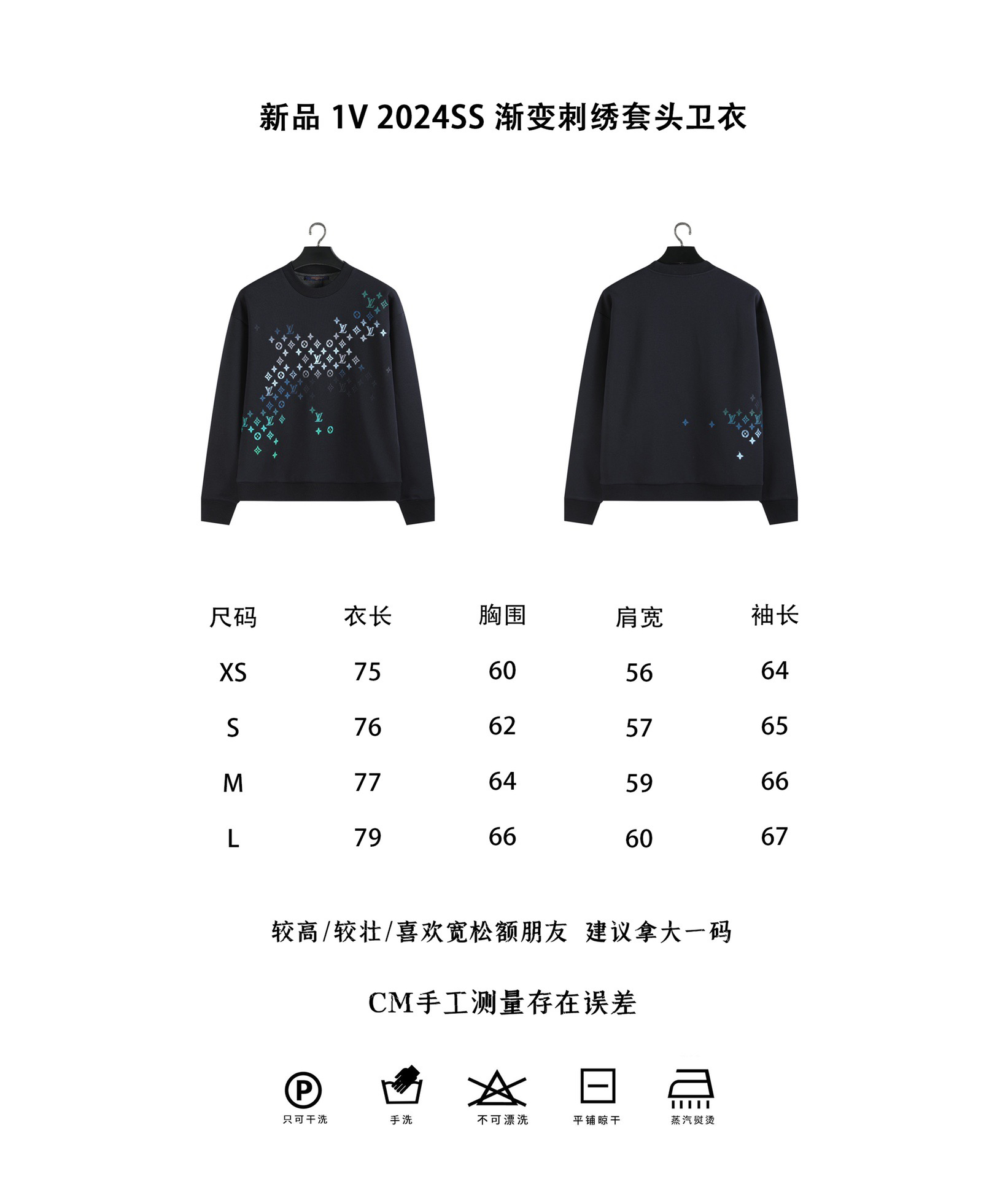 新品 1V 2024SS 渐变刺绣套头卫衣