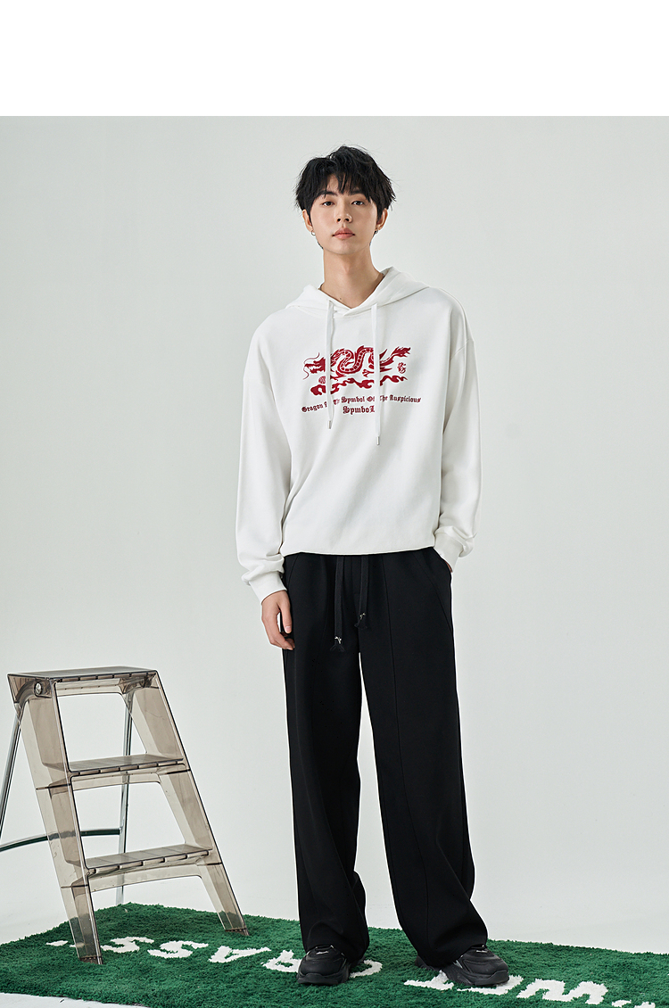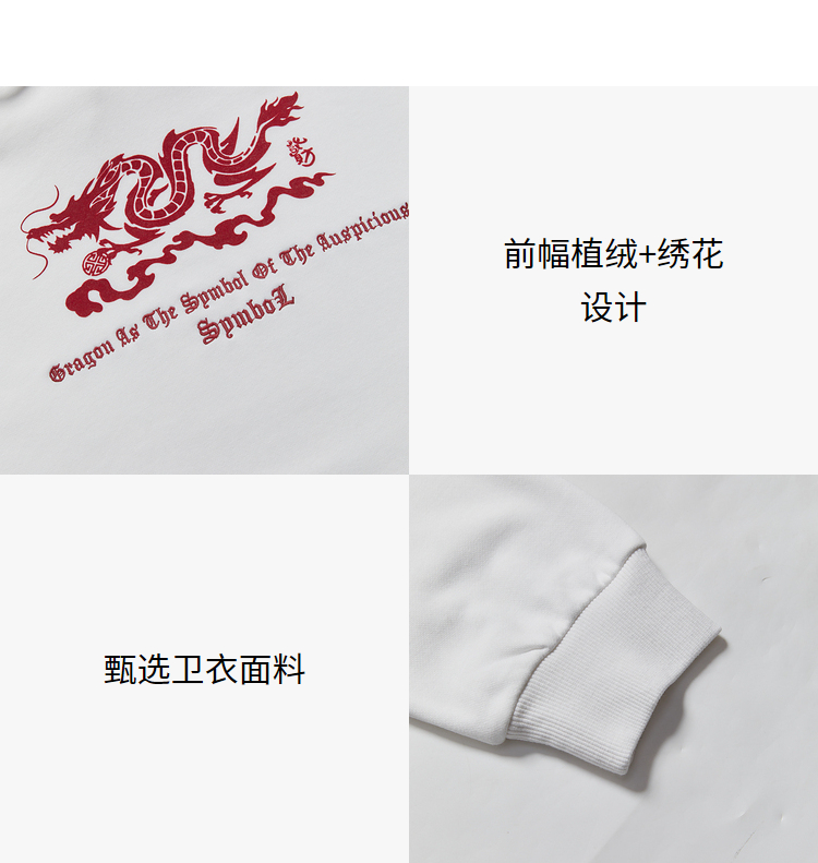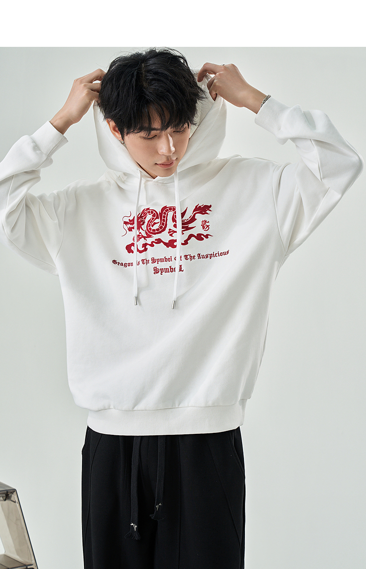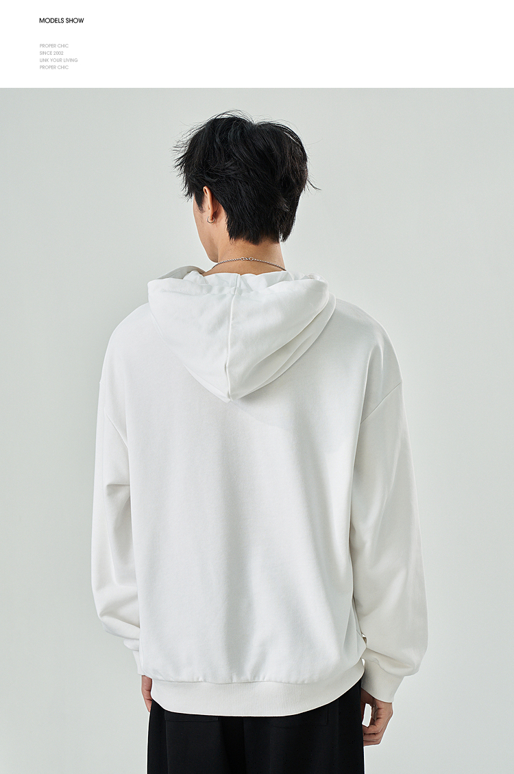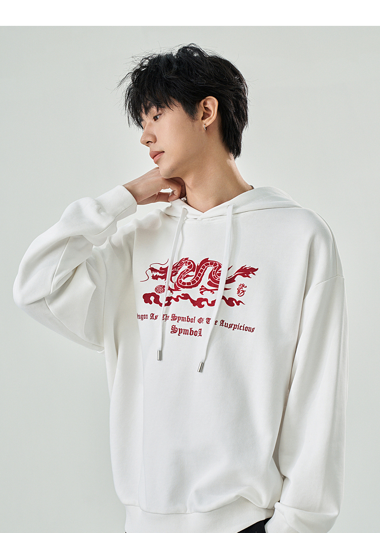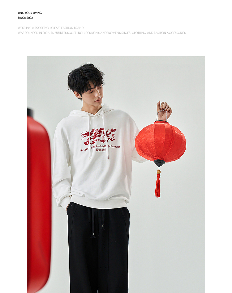 西遇白色连帽国潮宽松卫衣男新款绣花图案长袖基础款上衣10345704