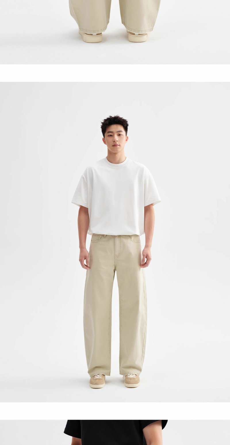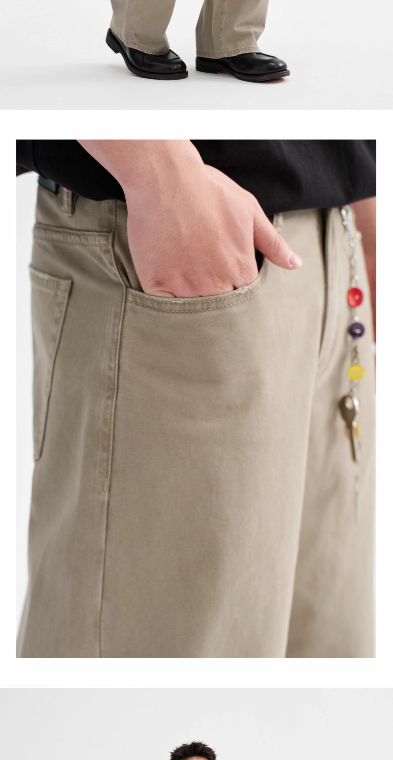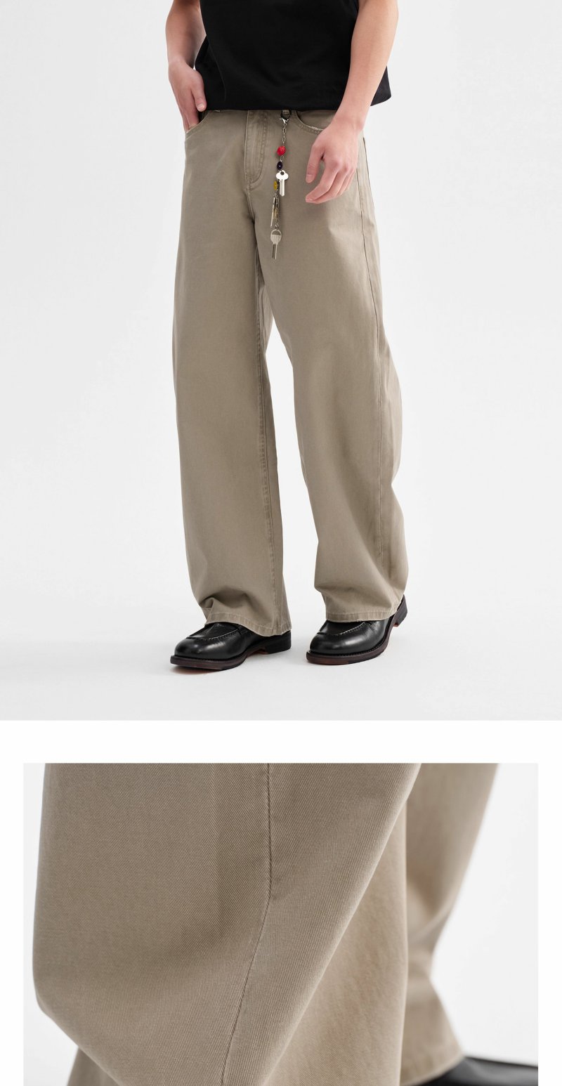 CHINISM赤尘 卡其色水洗做旧弯刀裤男2025夏季纯棉纱卡复古休闲裤