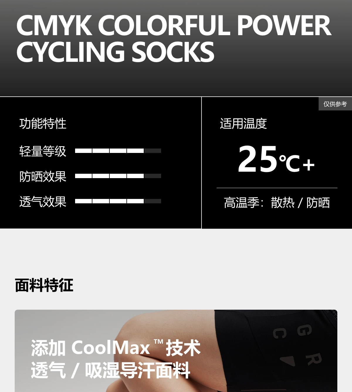 GRC桀骜无尽春夏CMYK多彩力量透气吸湿反光户外休闲运动袜骑行袜