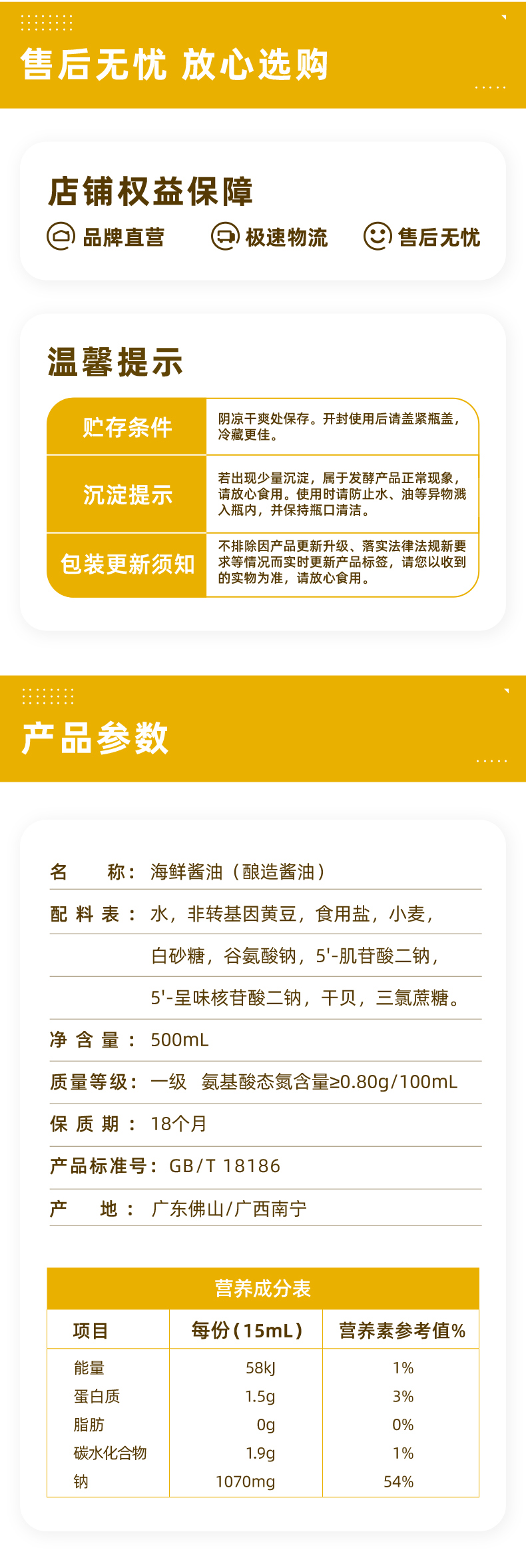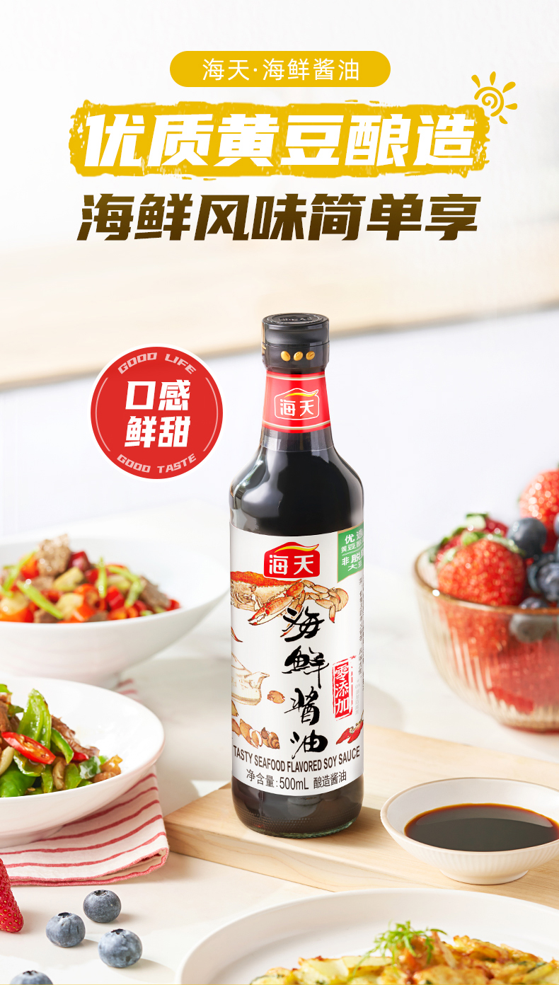 海天海鲜酱油添加干贝黄豆酿造生抽酱油500ml蒸鱼凉拌火锅点蘸